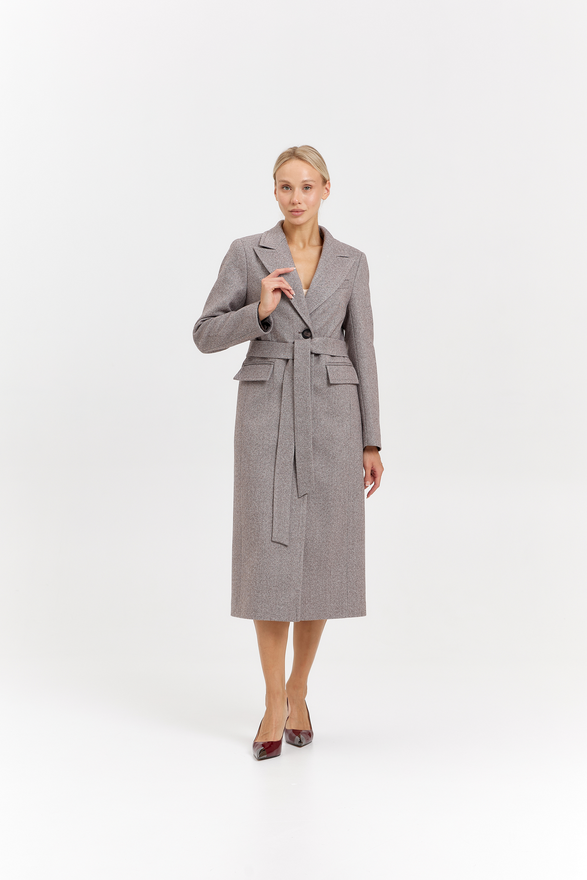 Пальто женское демисезонное 27210 (коричневый/ёлочка)