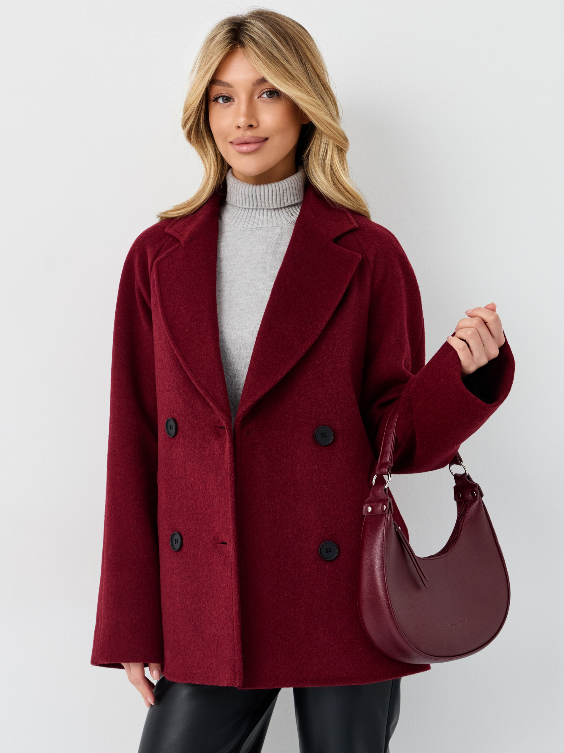 Пальто женское демисезонное 27220 (вино ворсовый)