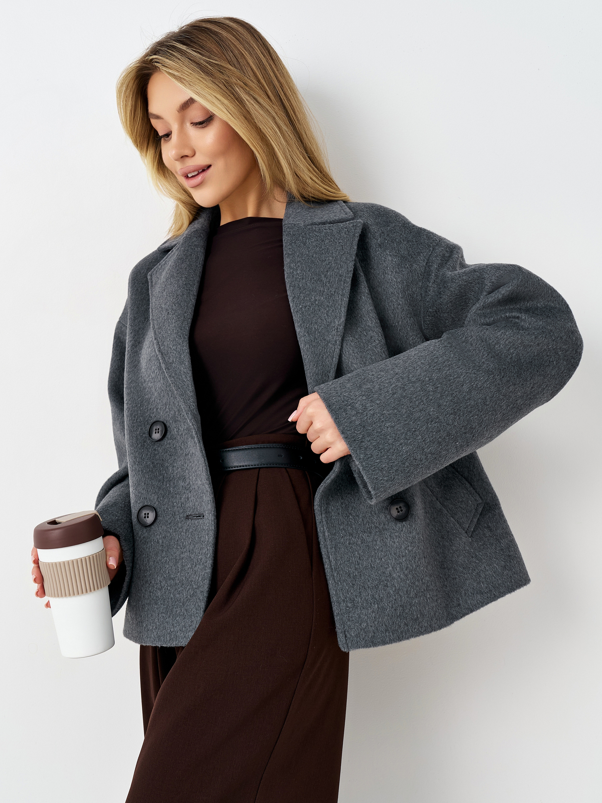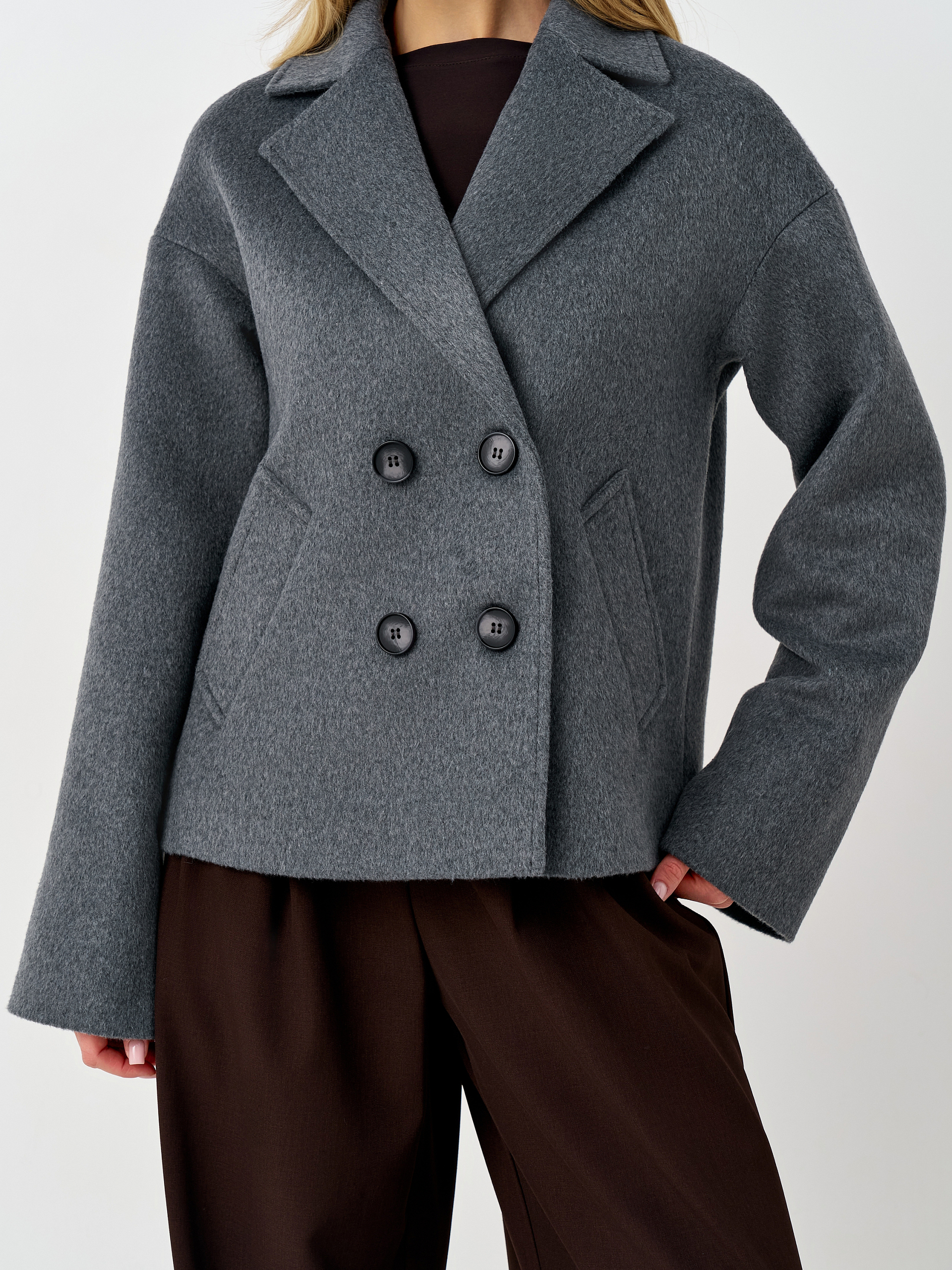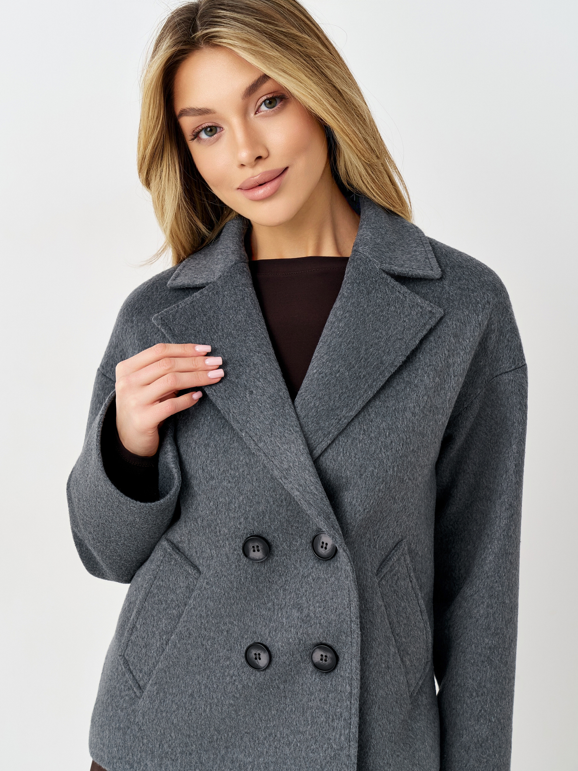 Пальто женское демисезонное 27332 (серый ворсовый)