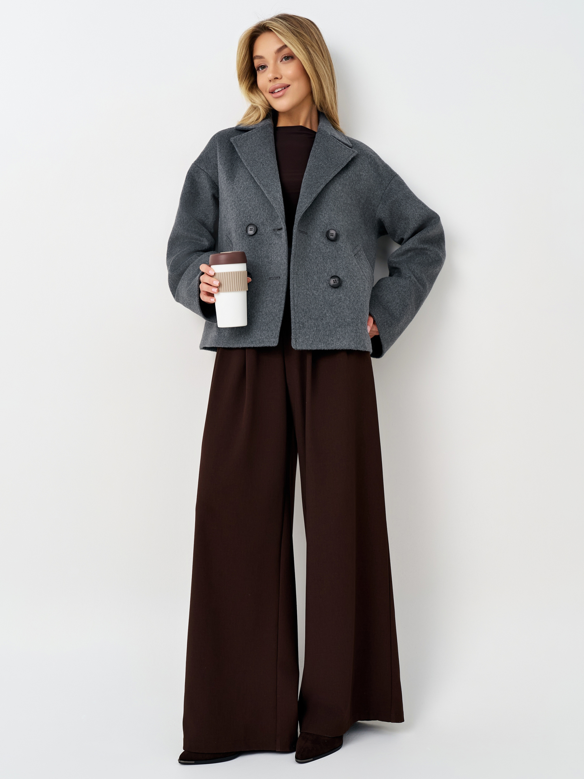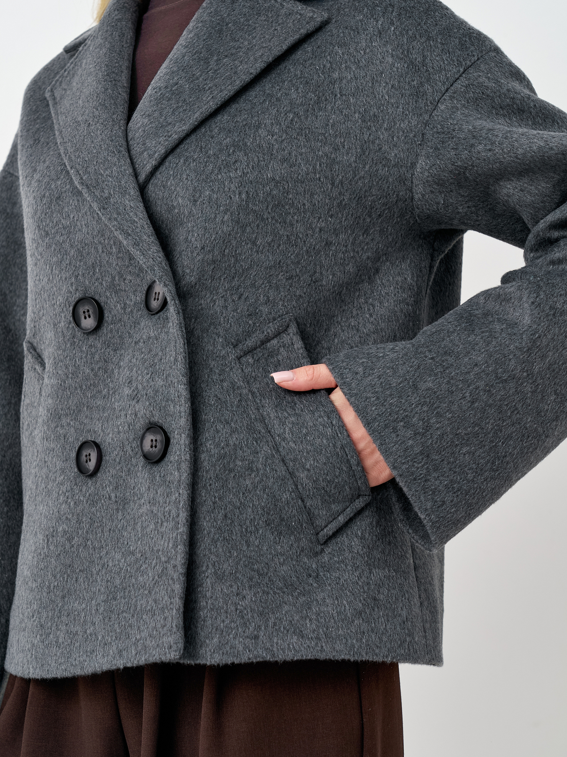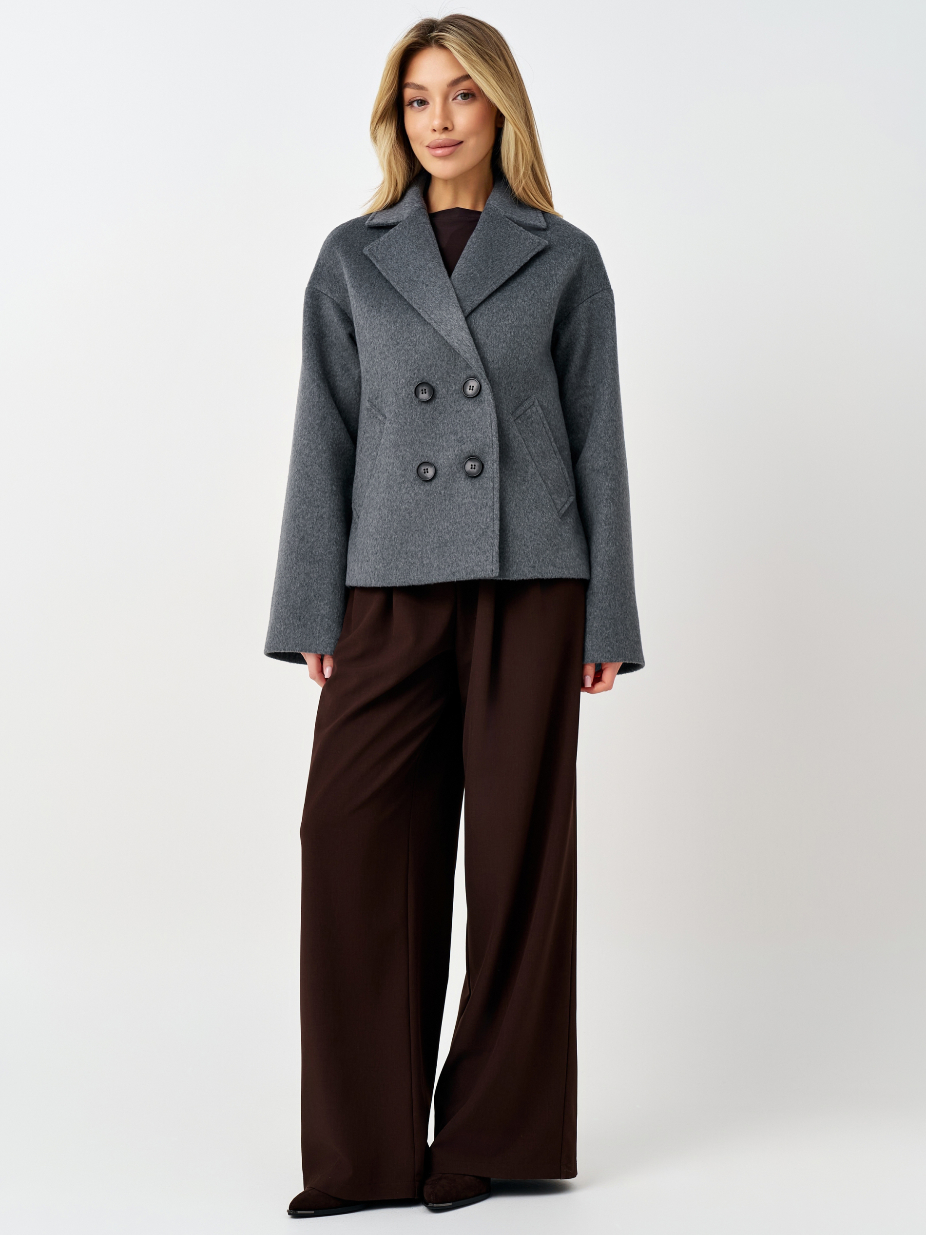 Пальто женское демисезонное 27332 (серый ворсовый)