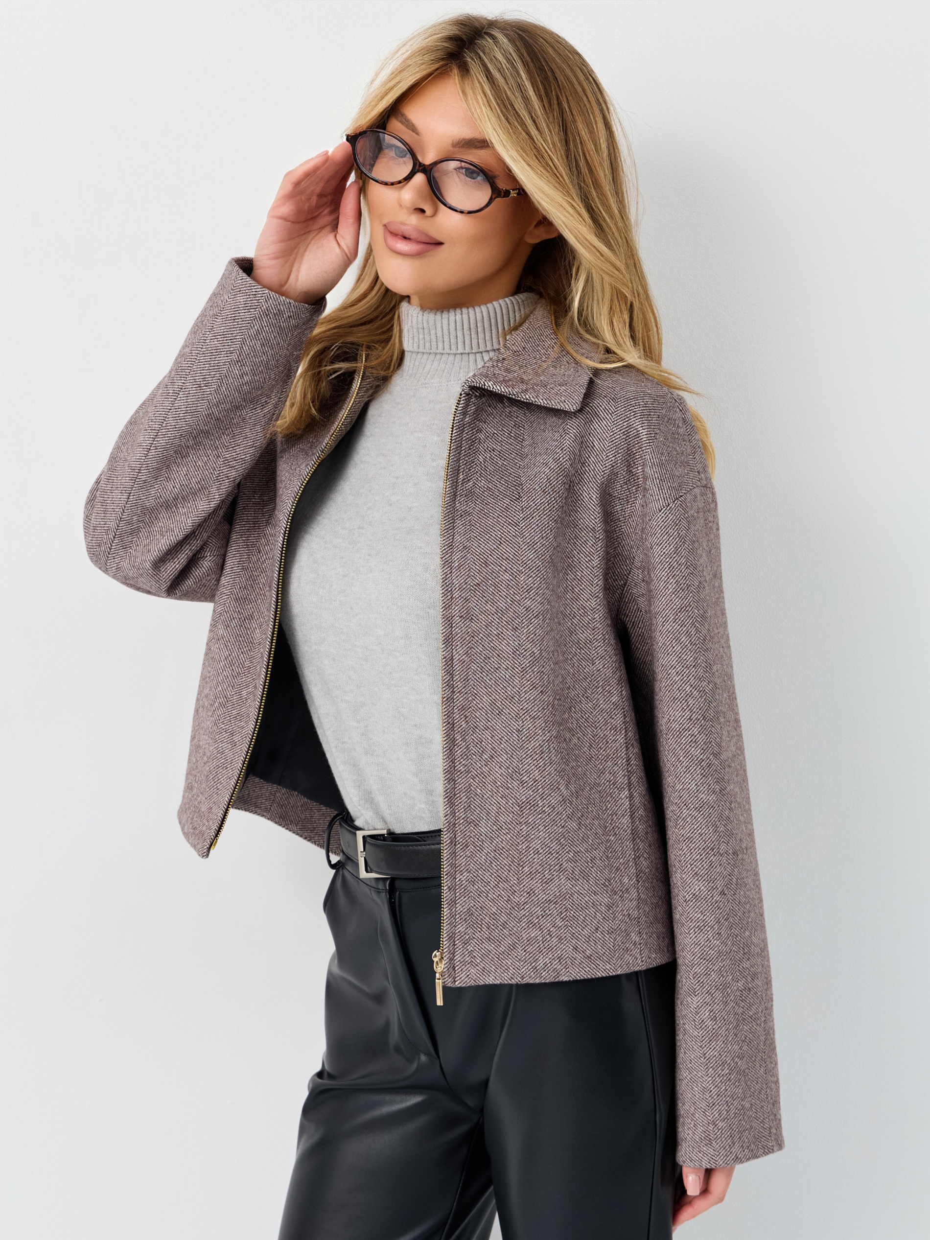 Пальто женское демисезонное 28000 (коричневый/ёлочка)