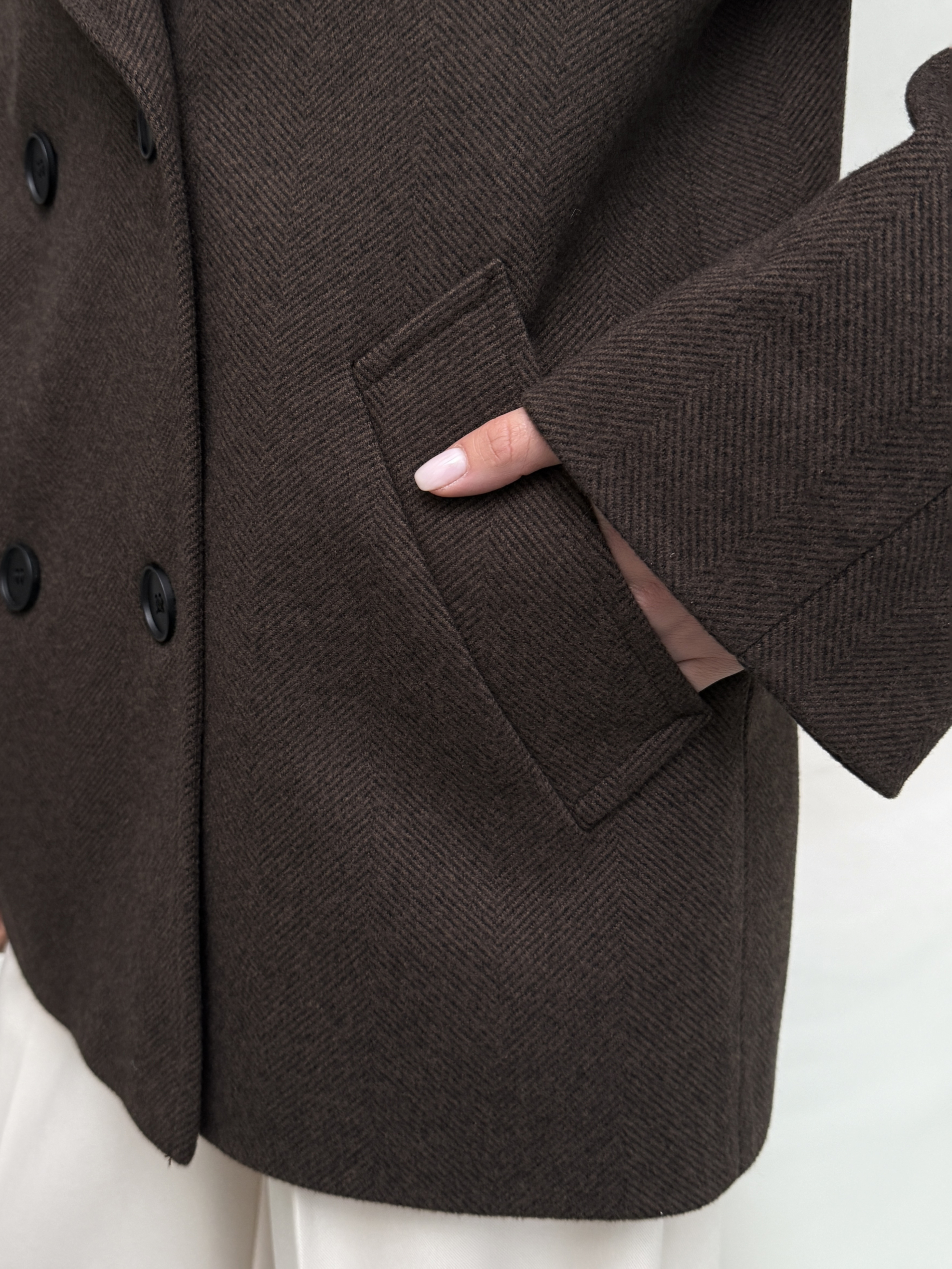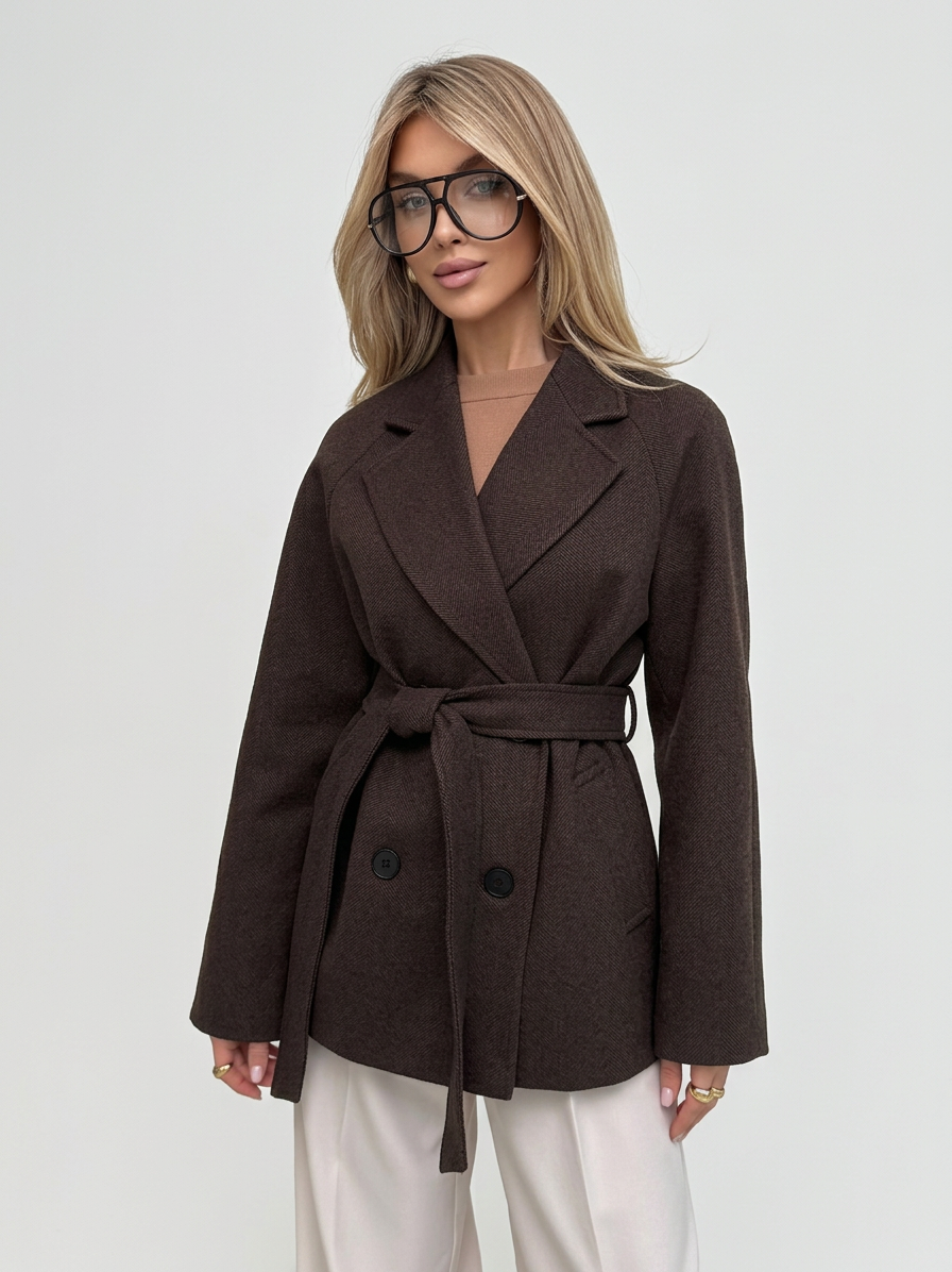 Пальто женское демисезонное 27220 (шоколад/ёлочка)