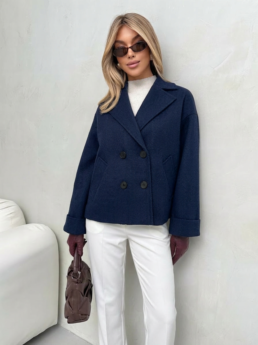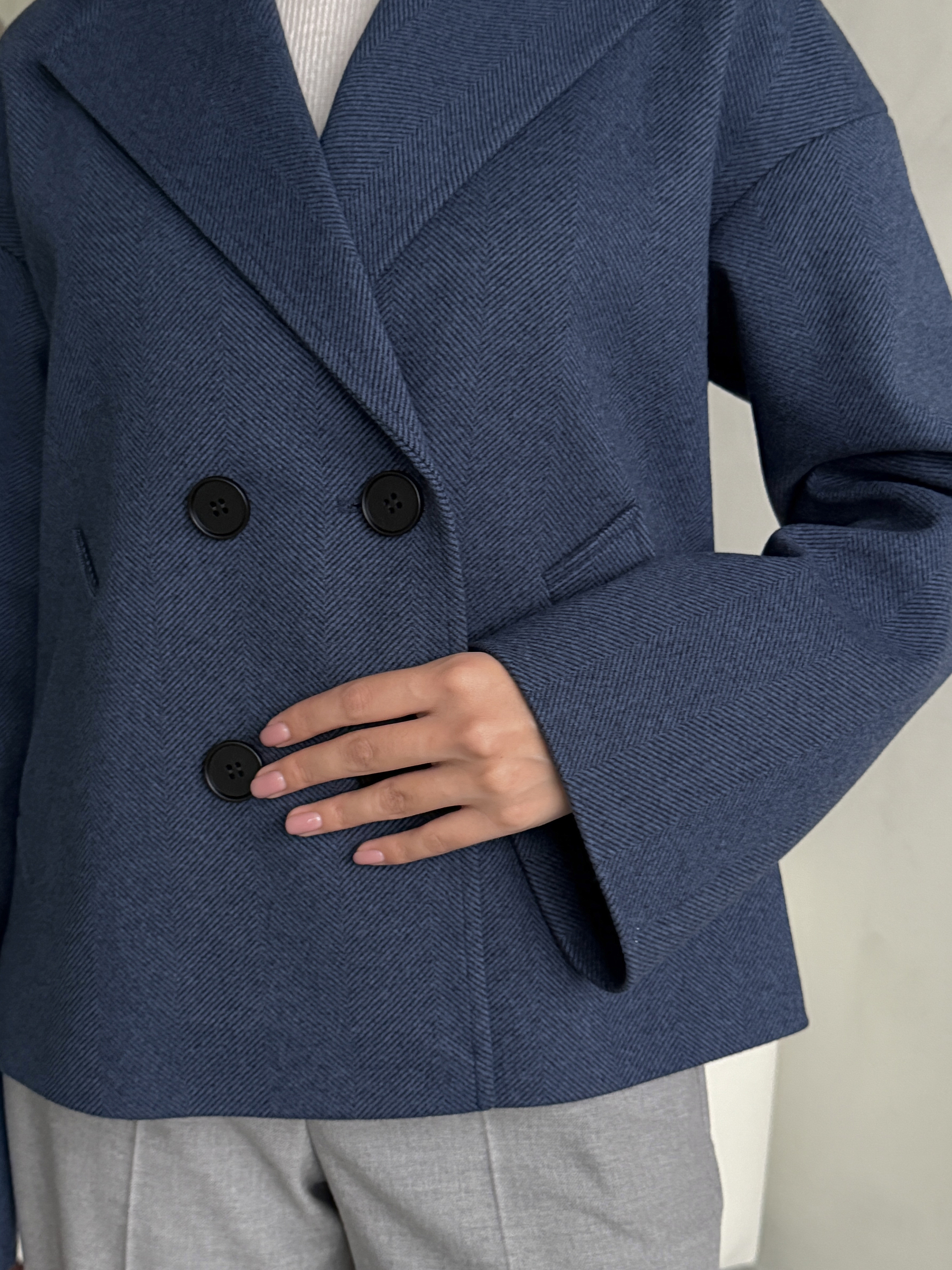 Пальто женское демисезонное 27332 (синий/ёлочка)