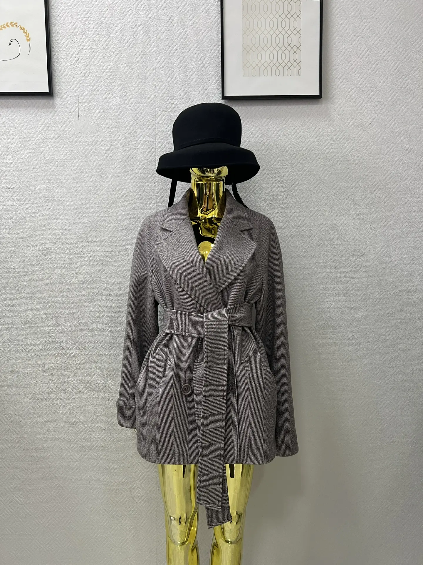 Пальто женское демисезонное 27220 (коричневый/ёлочка)