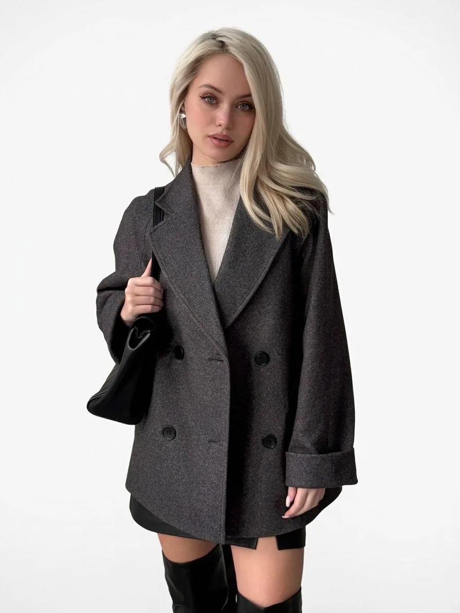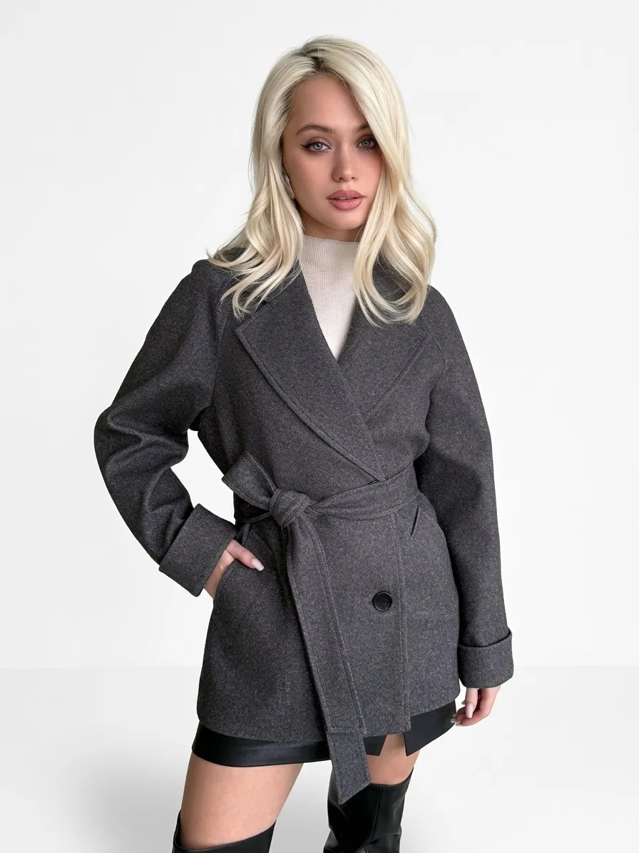 Пальто женское демисезонное 27220 (серый точка)