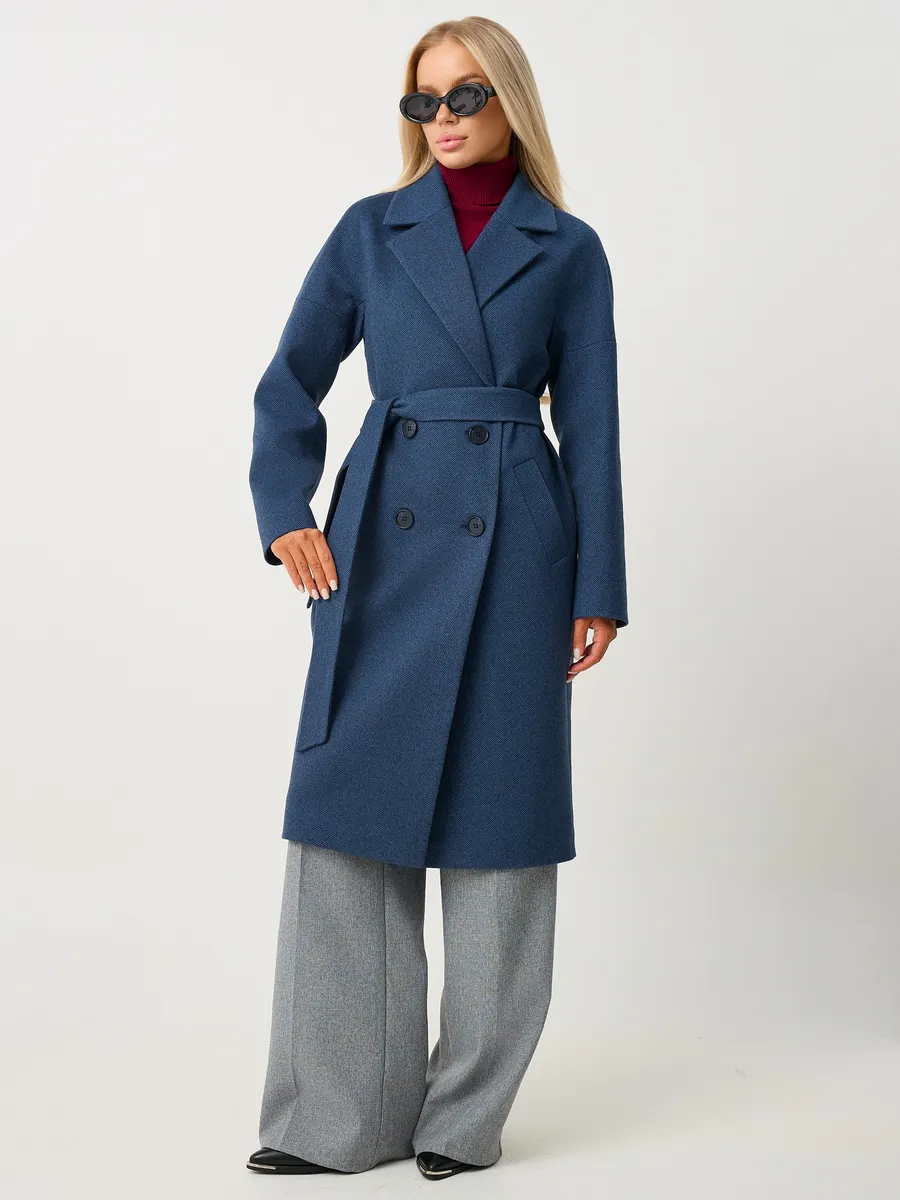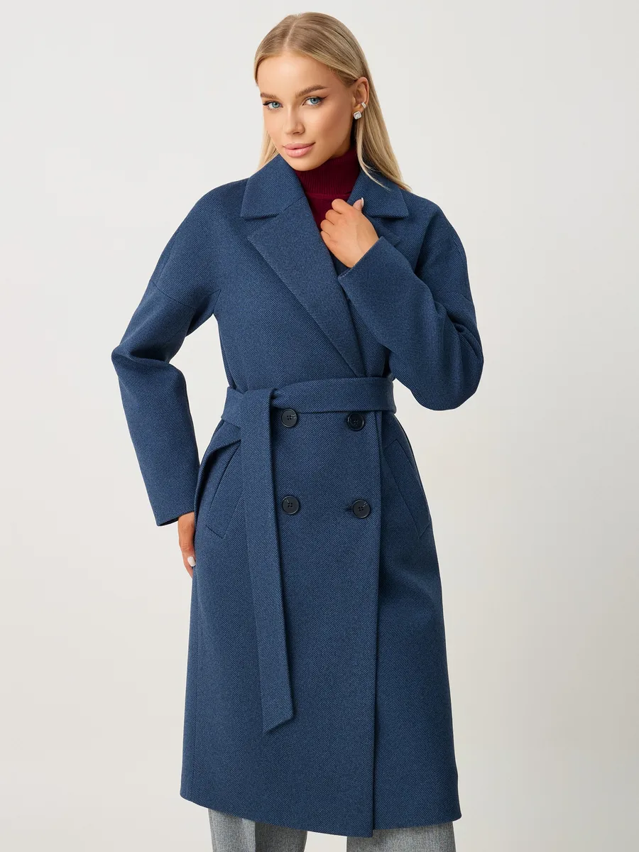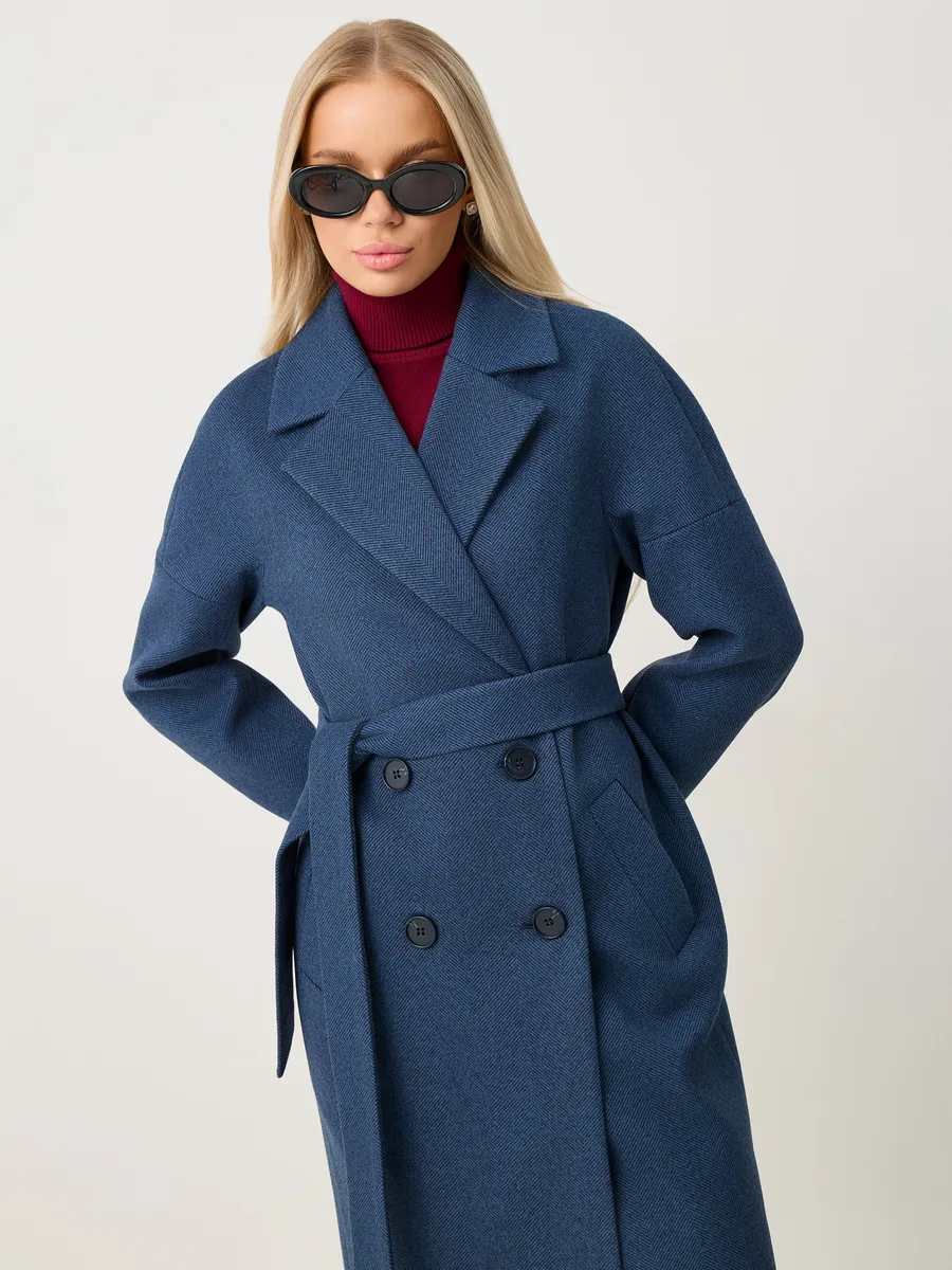 Пальто женское демисезонное 22971 (синий/ёлочка)