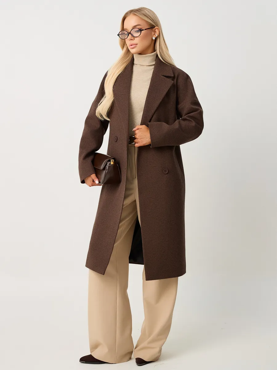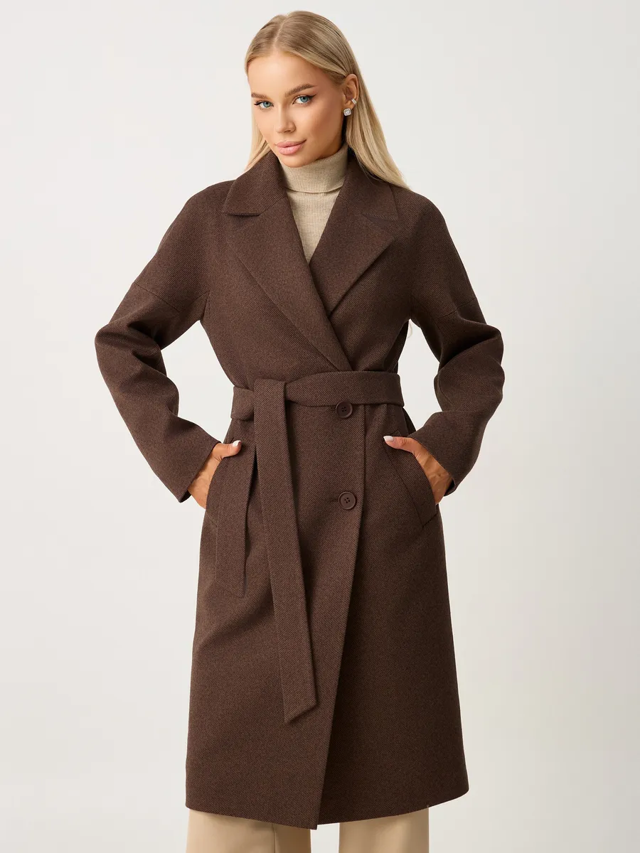 Пальто женское демисезонное 22971 (шоколад/ёлочка)