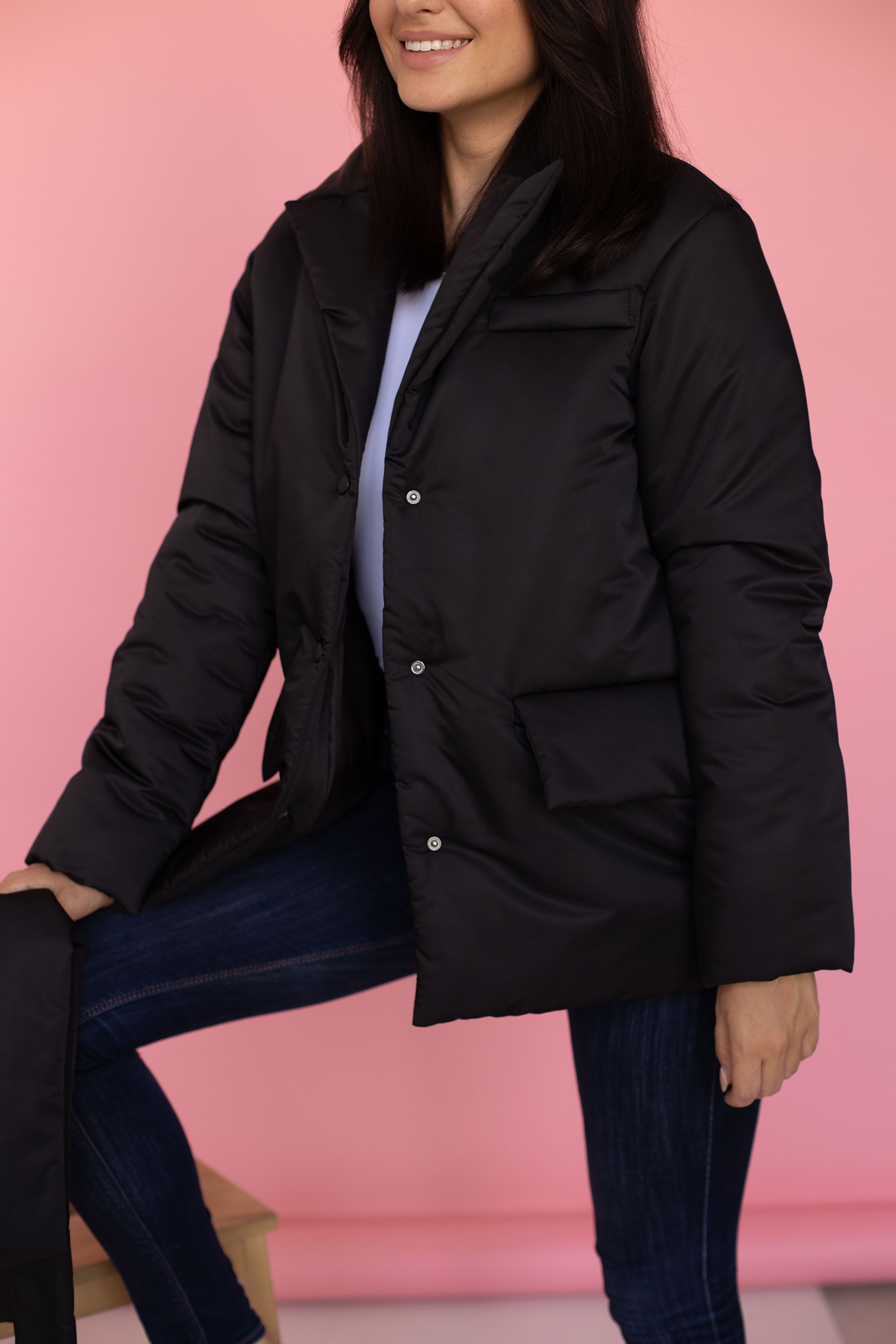 Куртка застегивается на 3 пробивные кнопки
