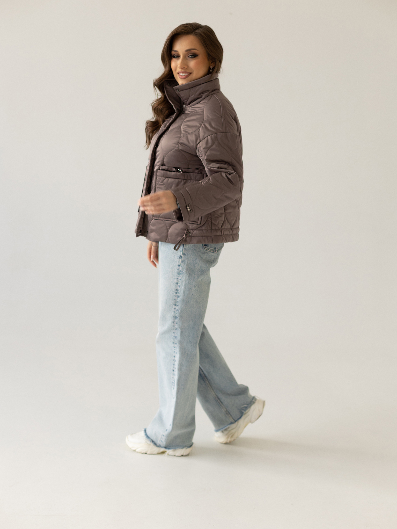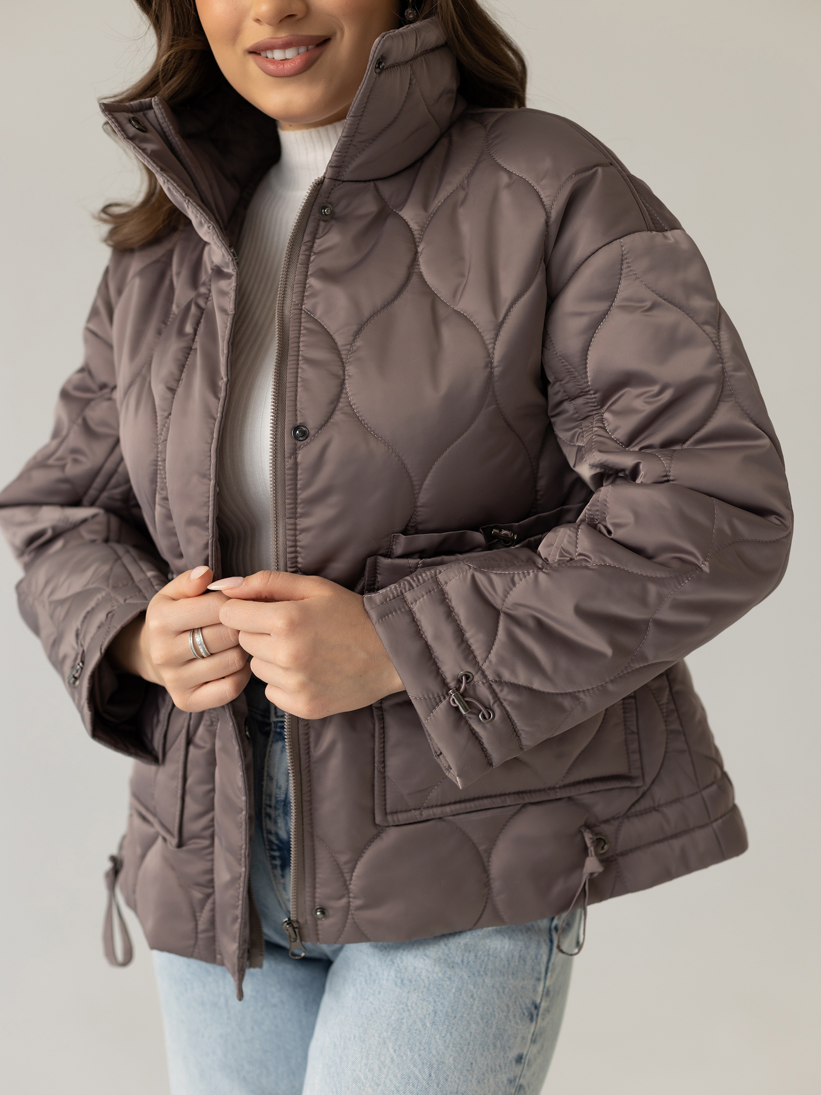 Куртка демисезонная –А-силуэта, со спущенным плечом.