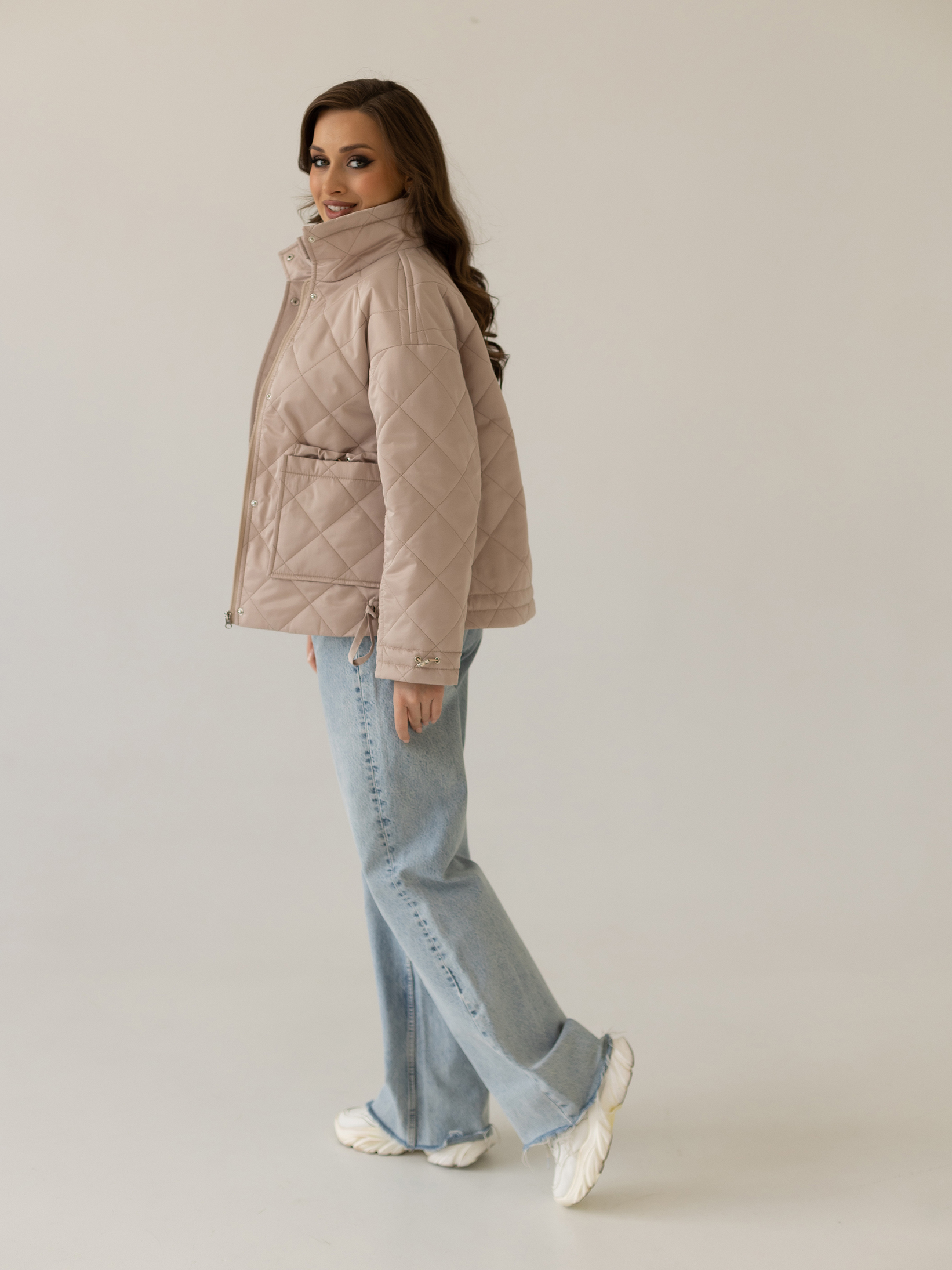 Куртка демисезонная –А-силуэта, со спущенным плечом.