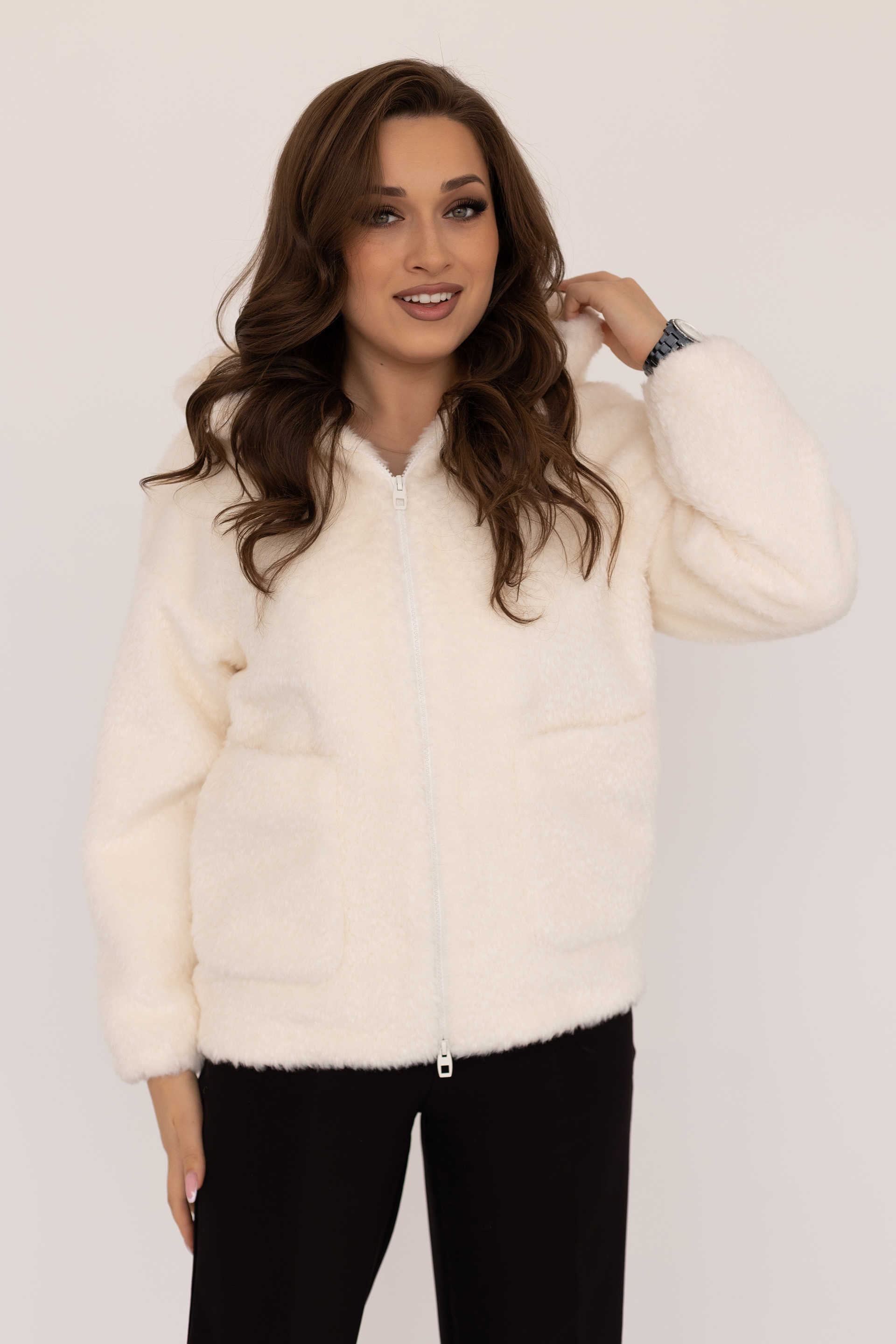 Шубка женская еврозима 24765 (белый/щипаная норка)