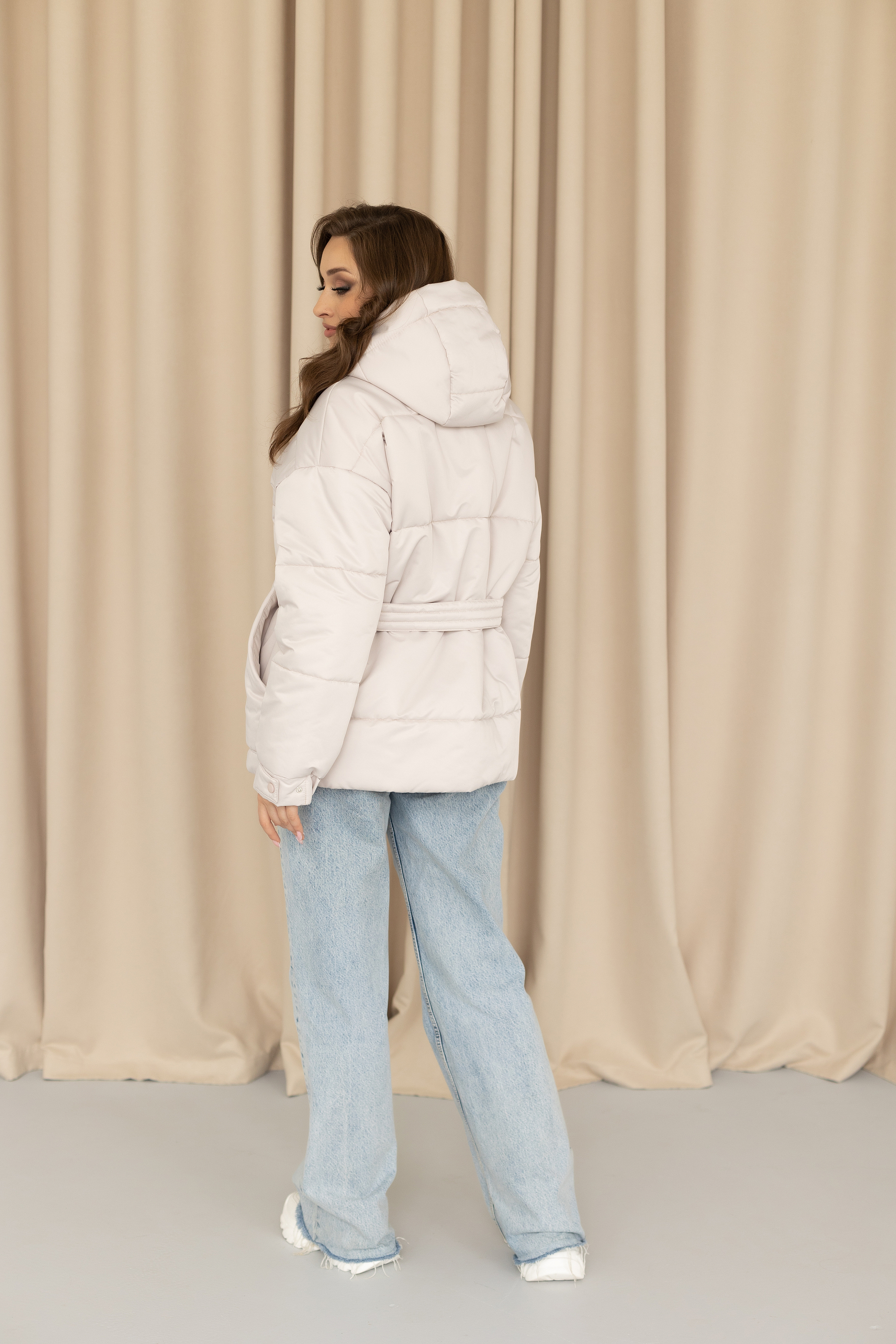 Пояс передний с пряжкой, выходит из-под кармана. Пояс спинки на кнопках регулирует объем талии.