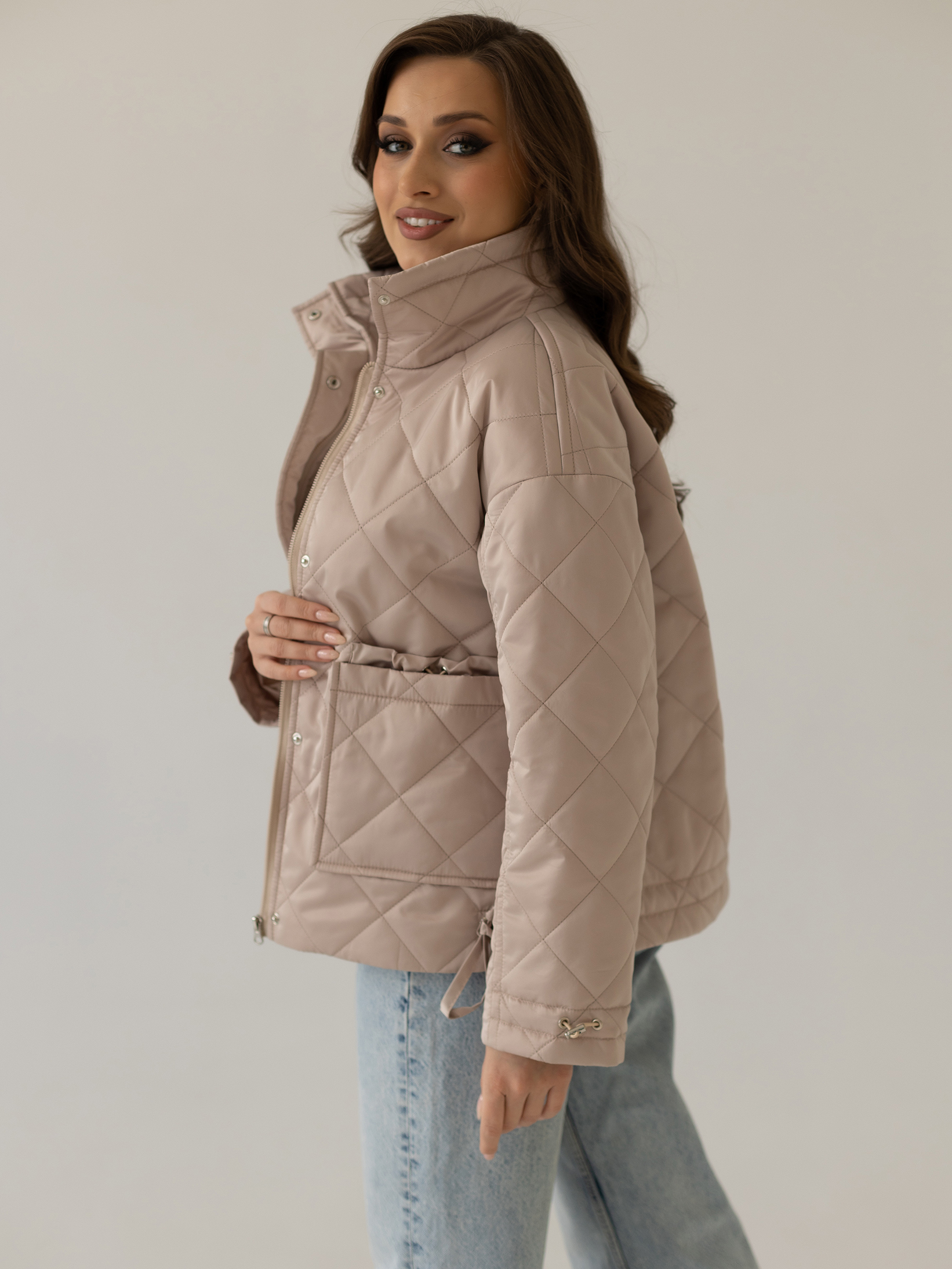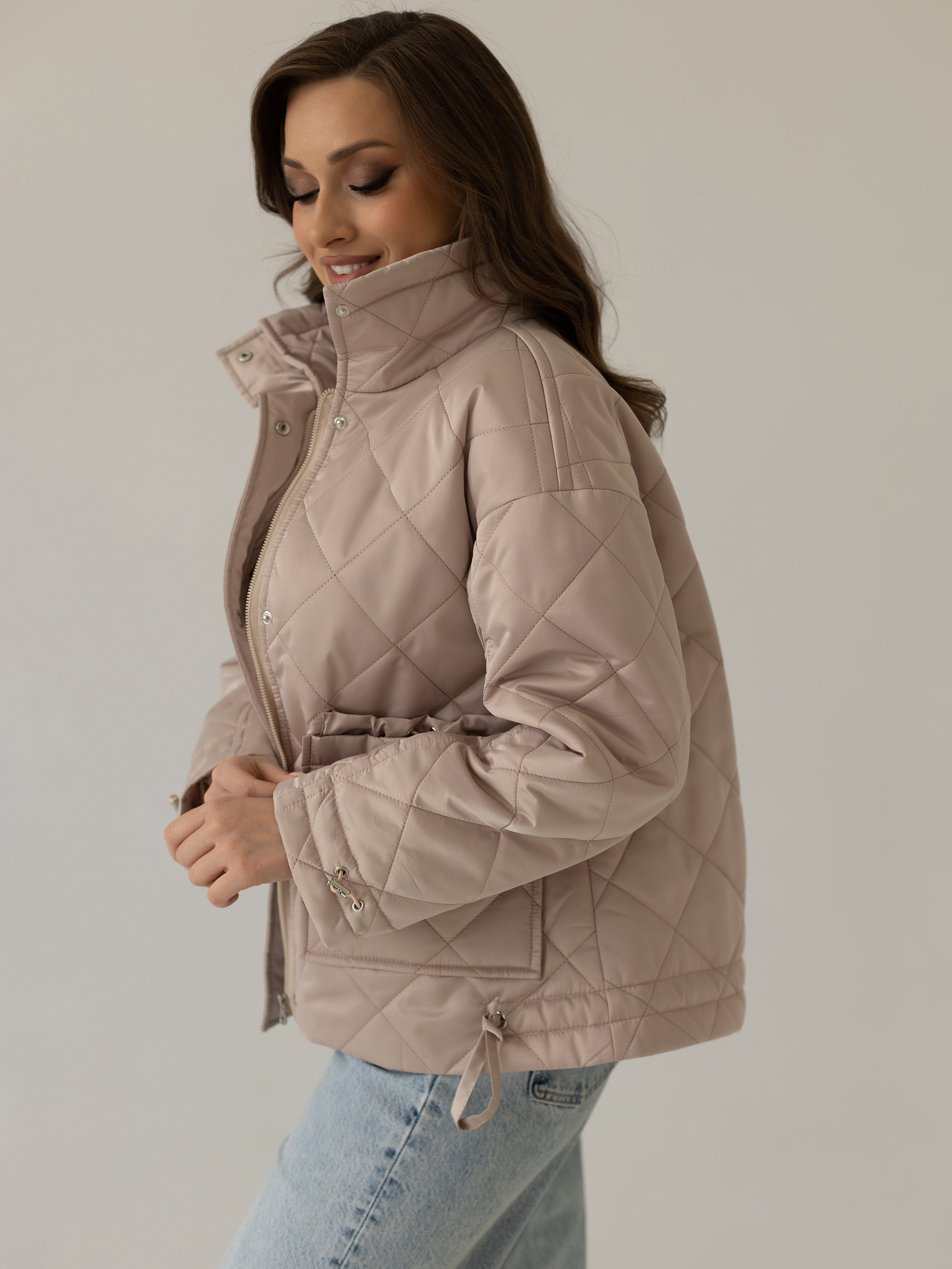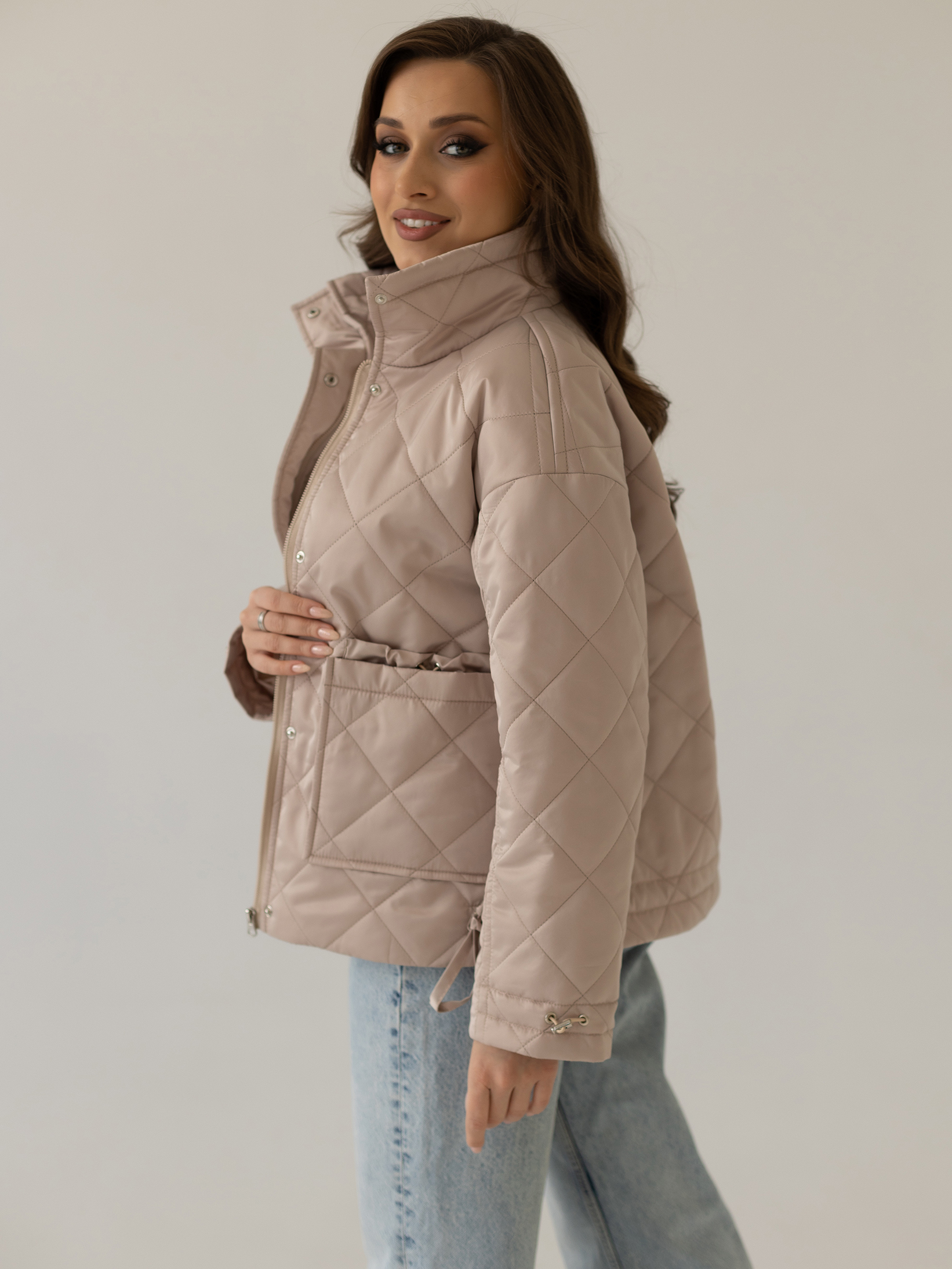 Куртка демисезонная –А-силуэта, со спущенным плечом.