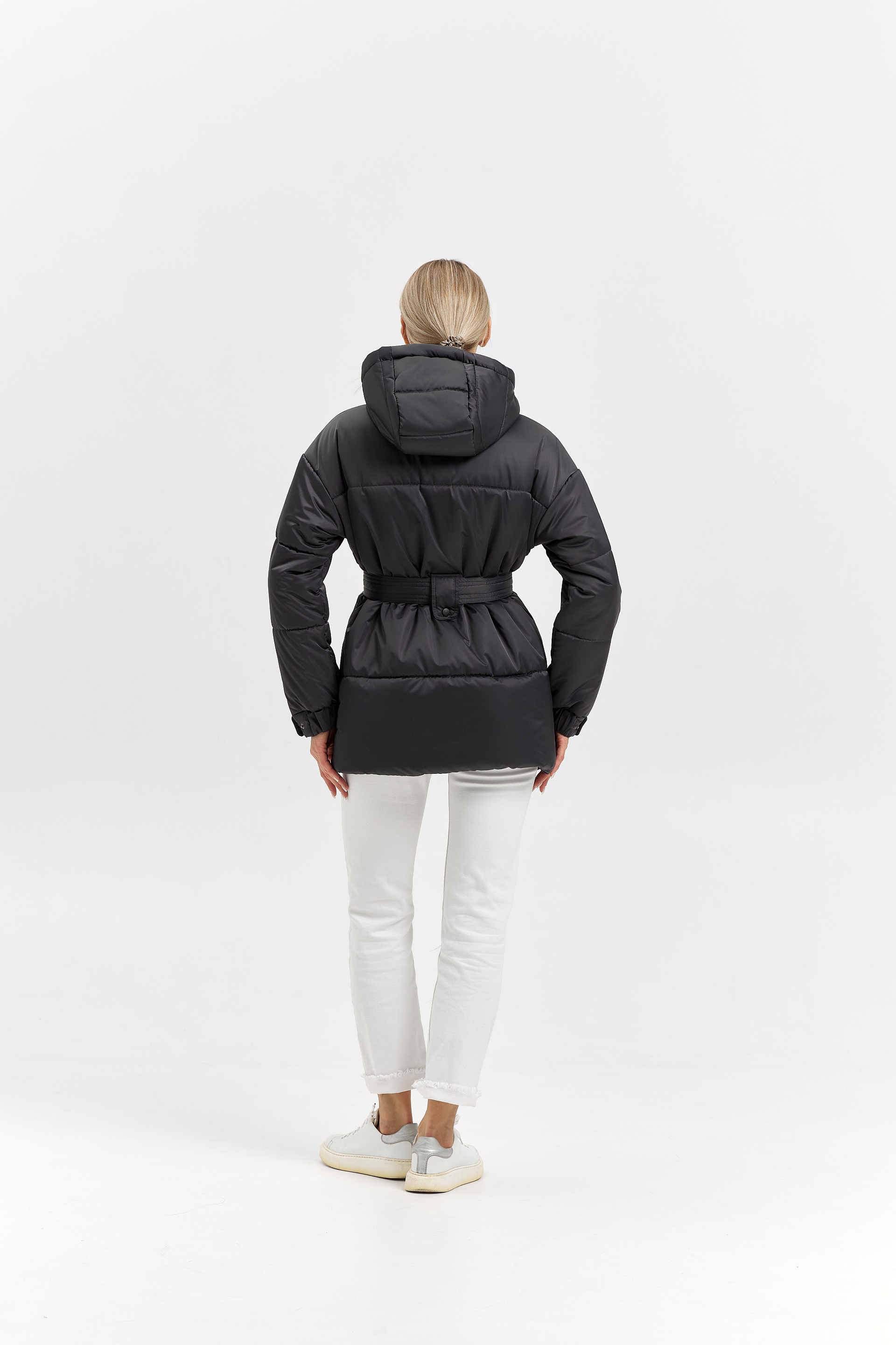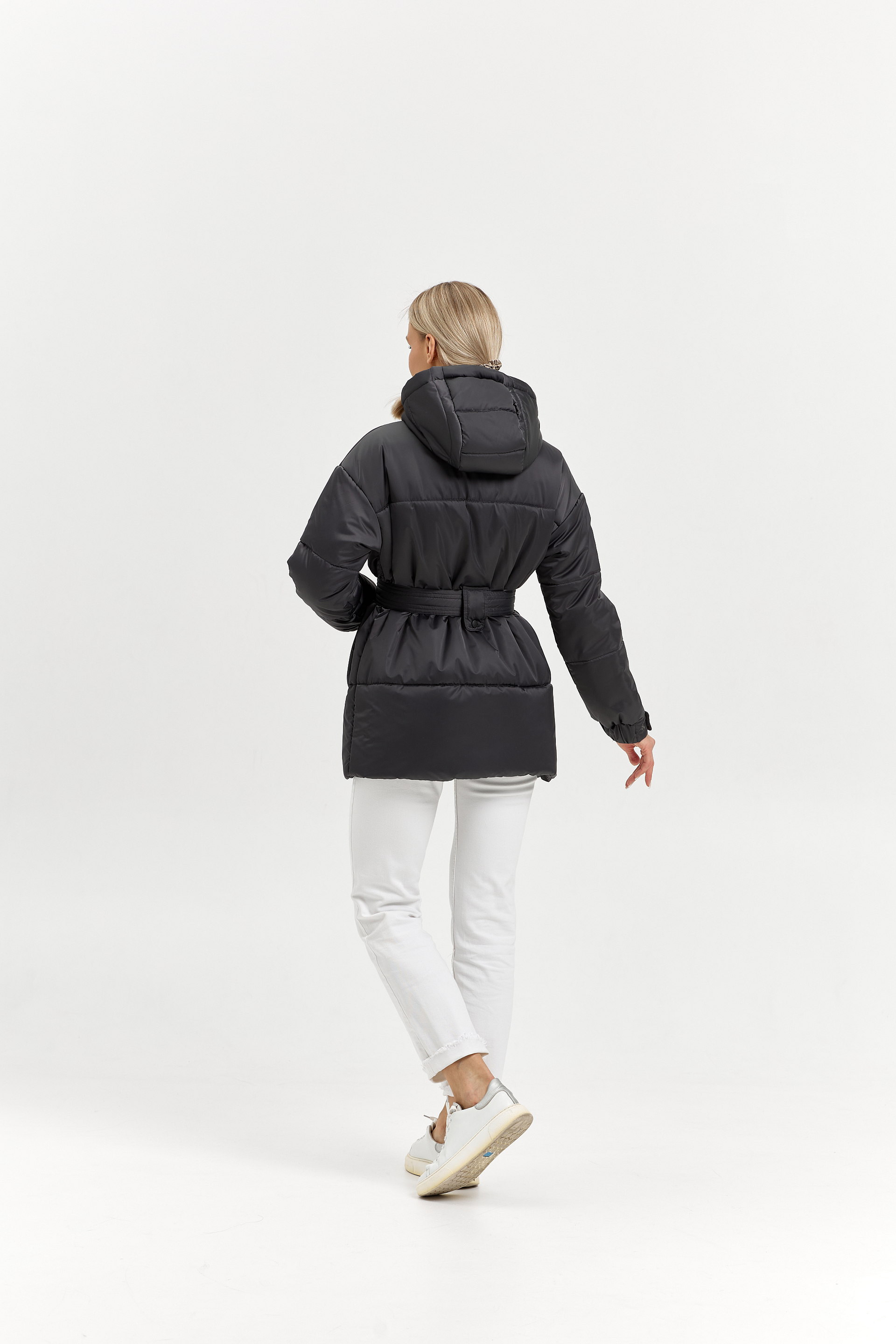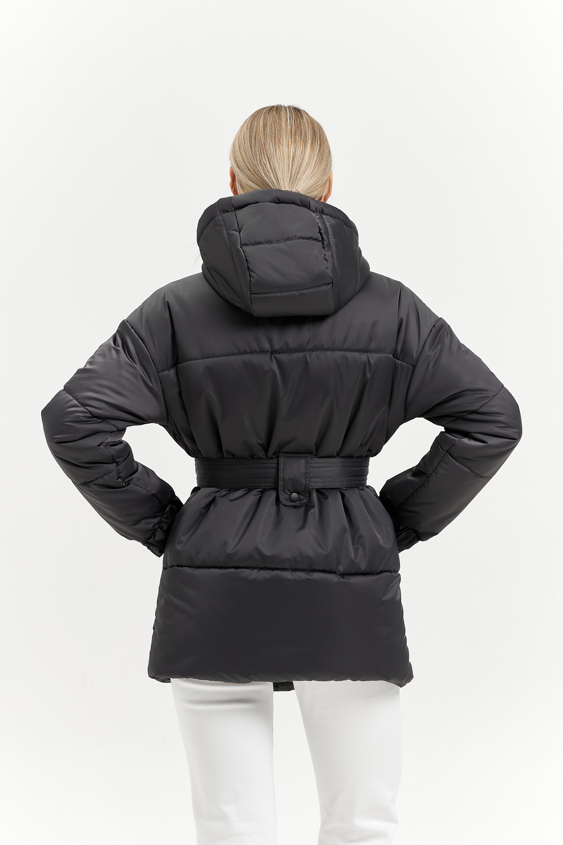 Капюшон - со средней вставкой, впереди со стойкой. Высоту капюшона можно регулировать резинкой с фиксатором.
