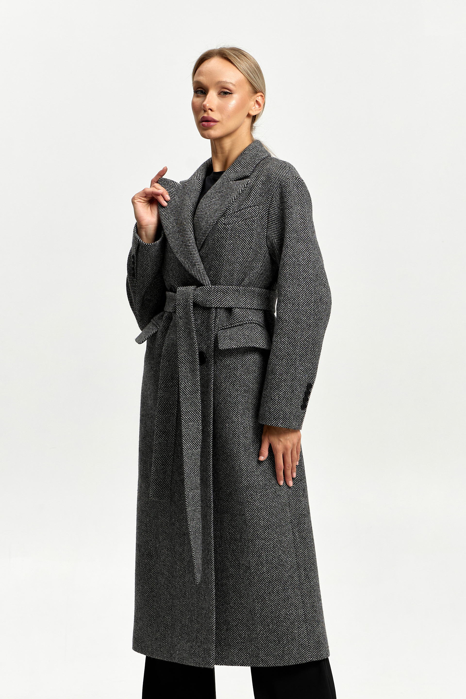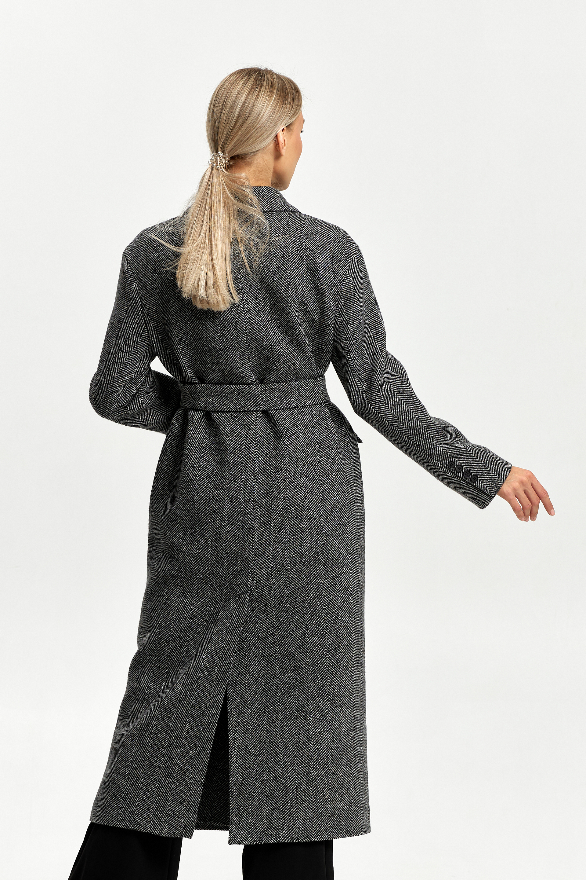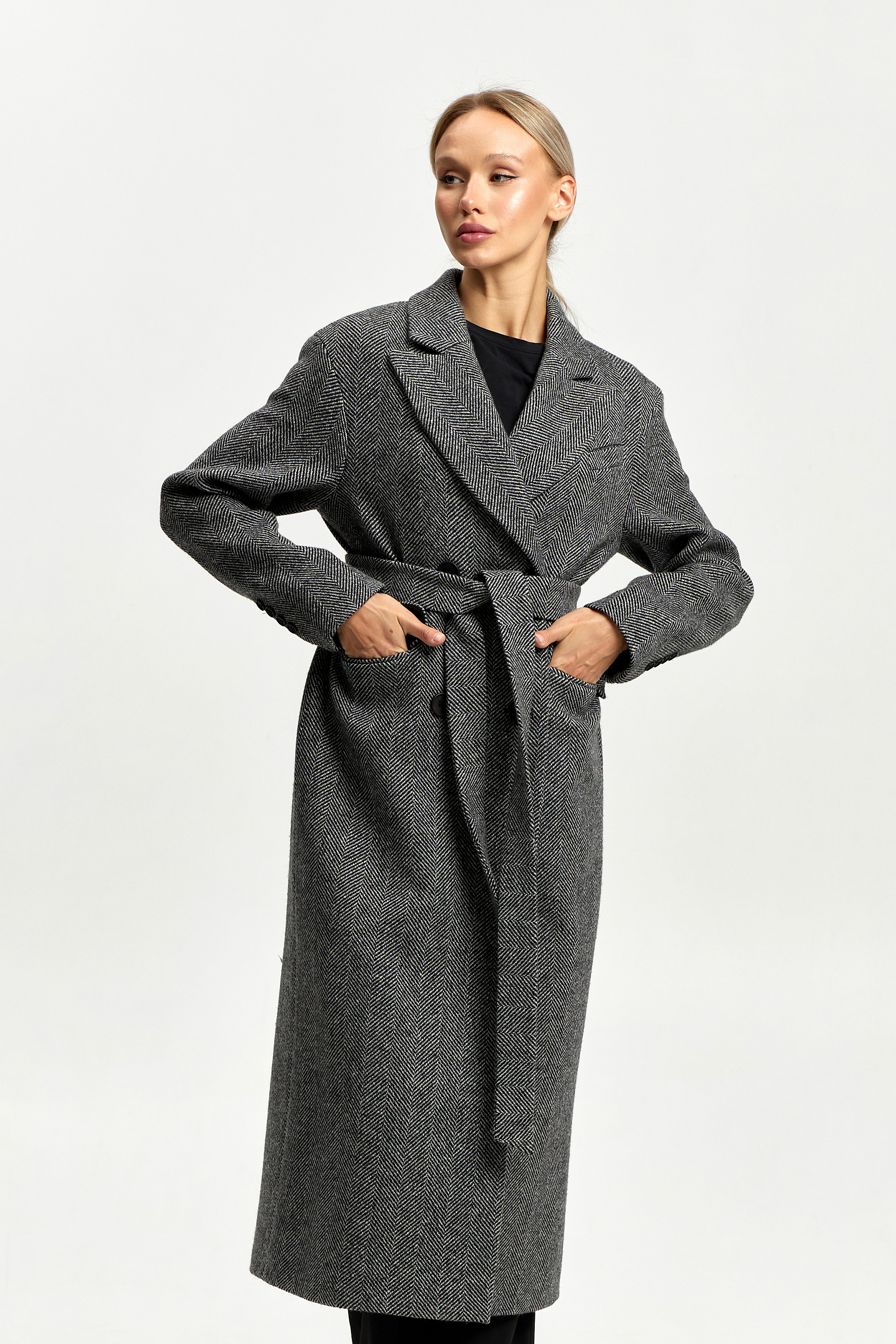 Пальто женское демисезонное 26102 (черно-белый/ёлочка)