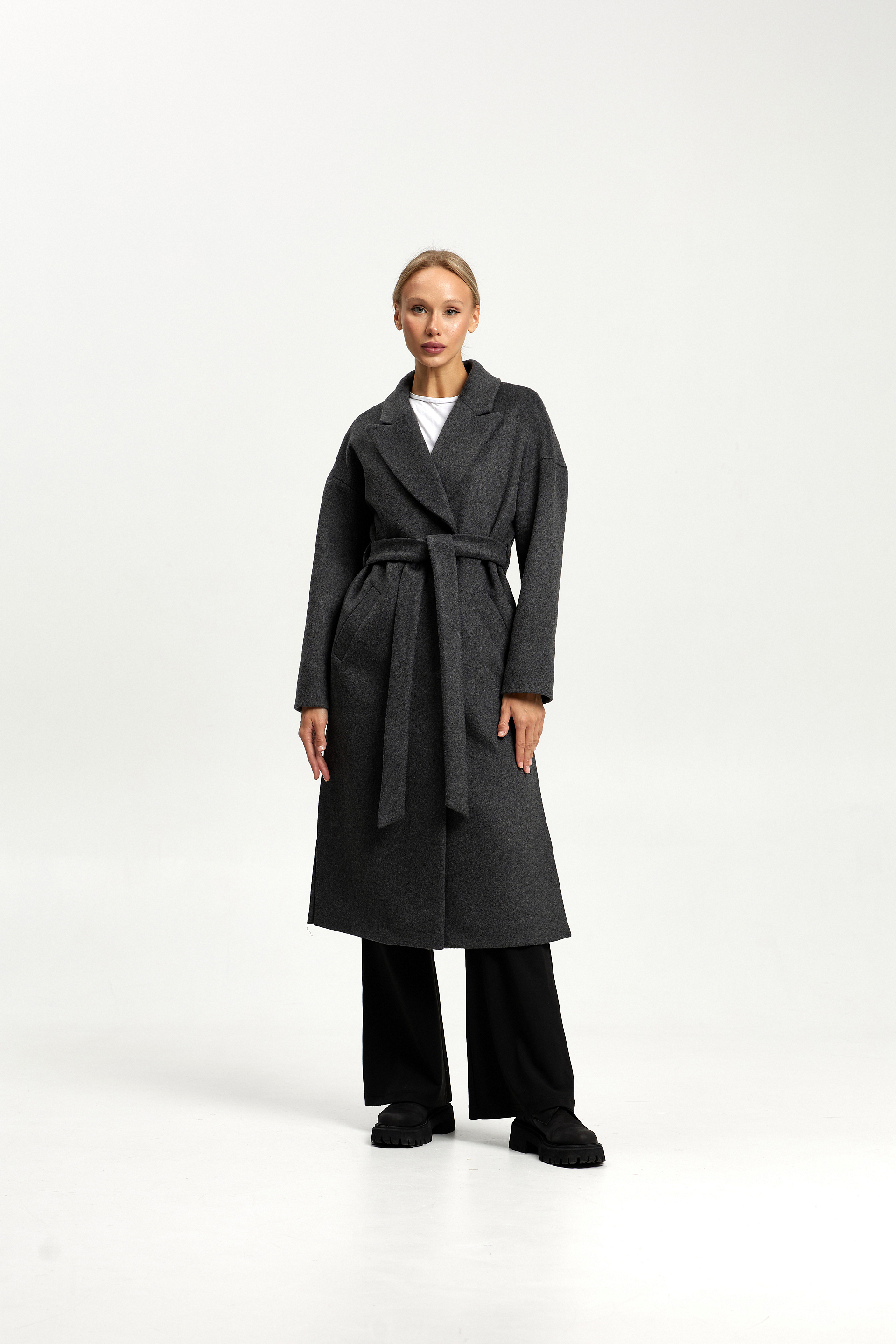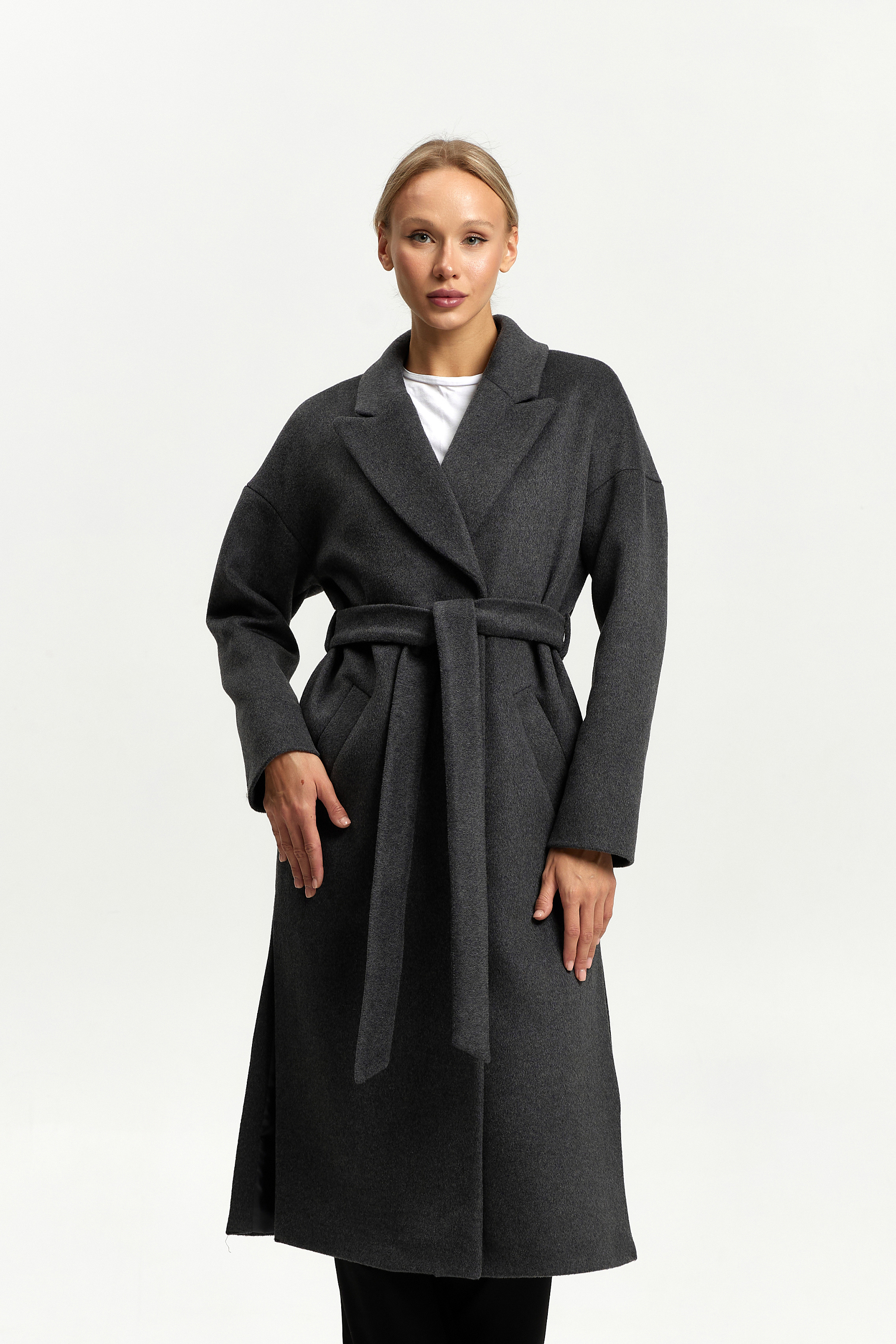 Пальто женское демисезонное 26820 (серый ворсовый)