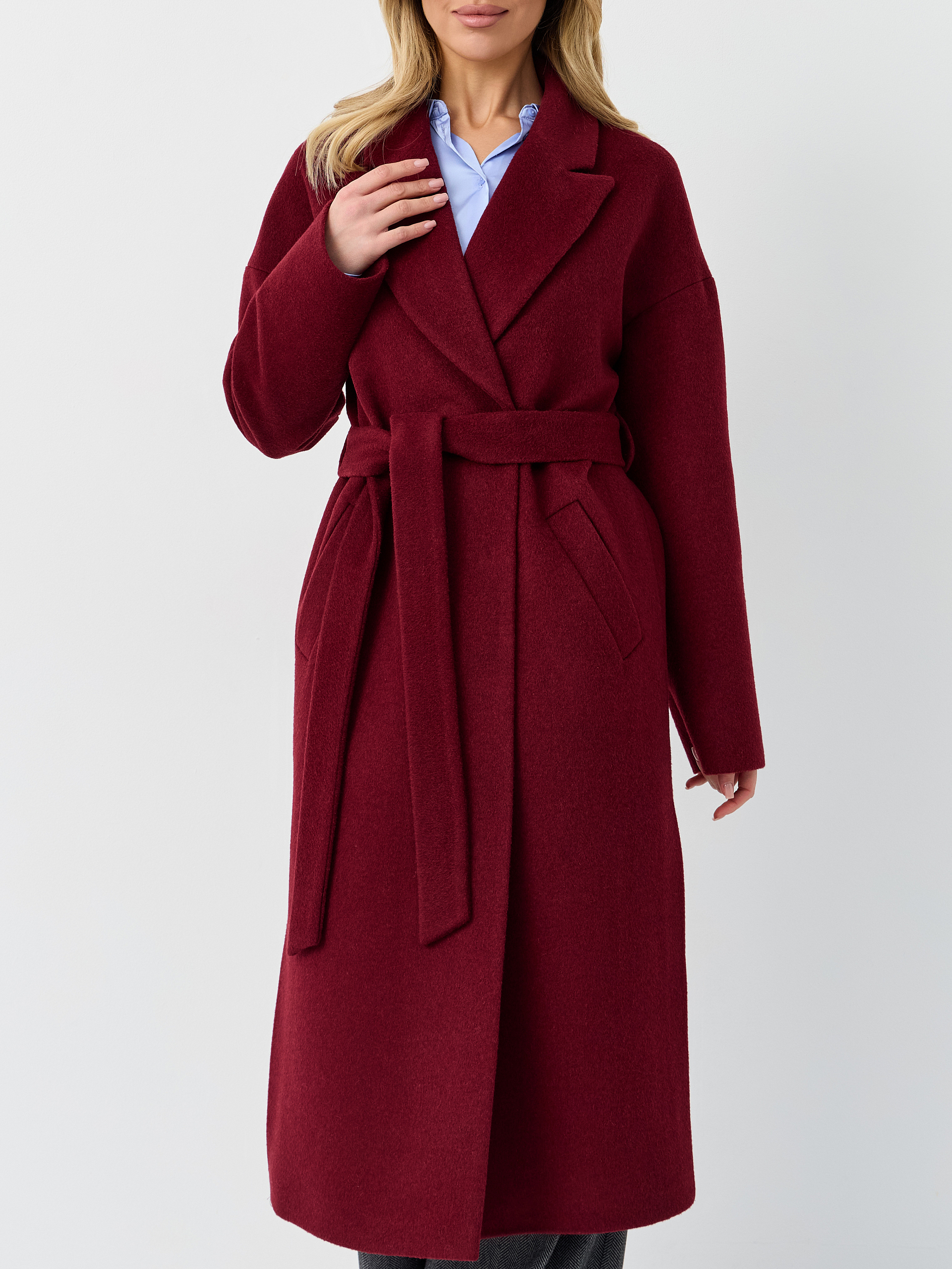 Пальто женское демисезонное 26820 (вино ворсовый)