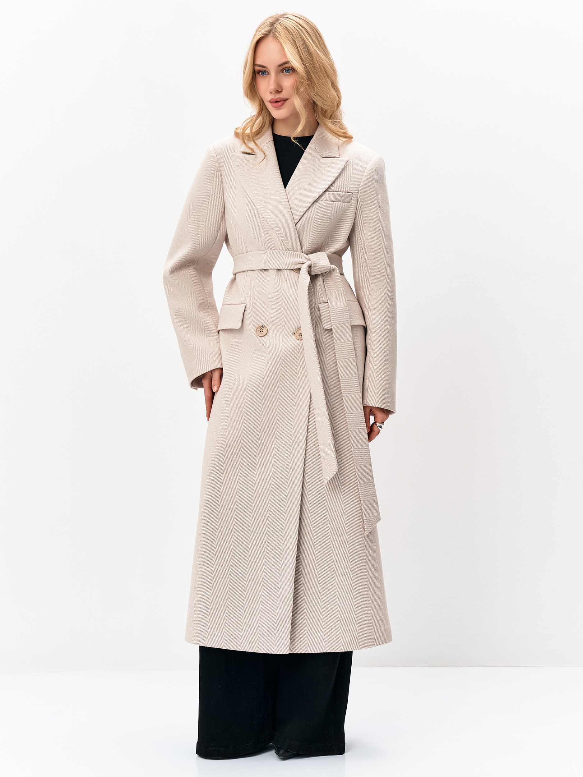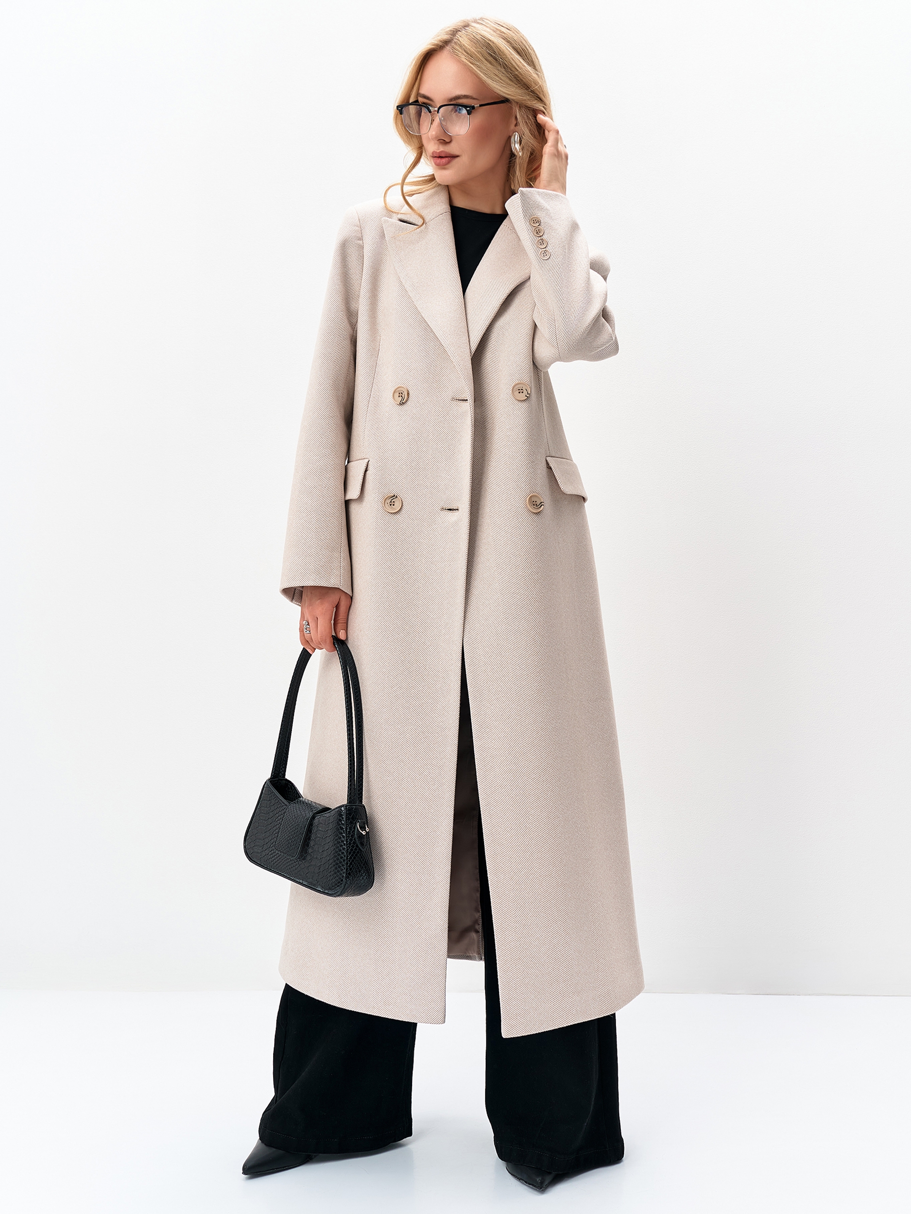 Пальто женское демисезонное 26895 (бежевый/ёлочка)
