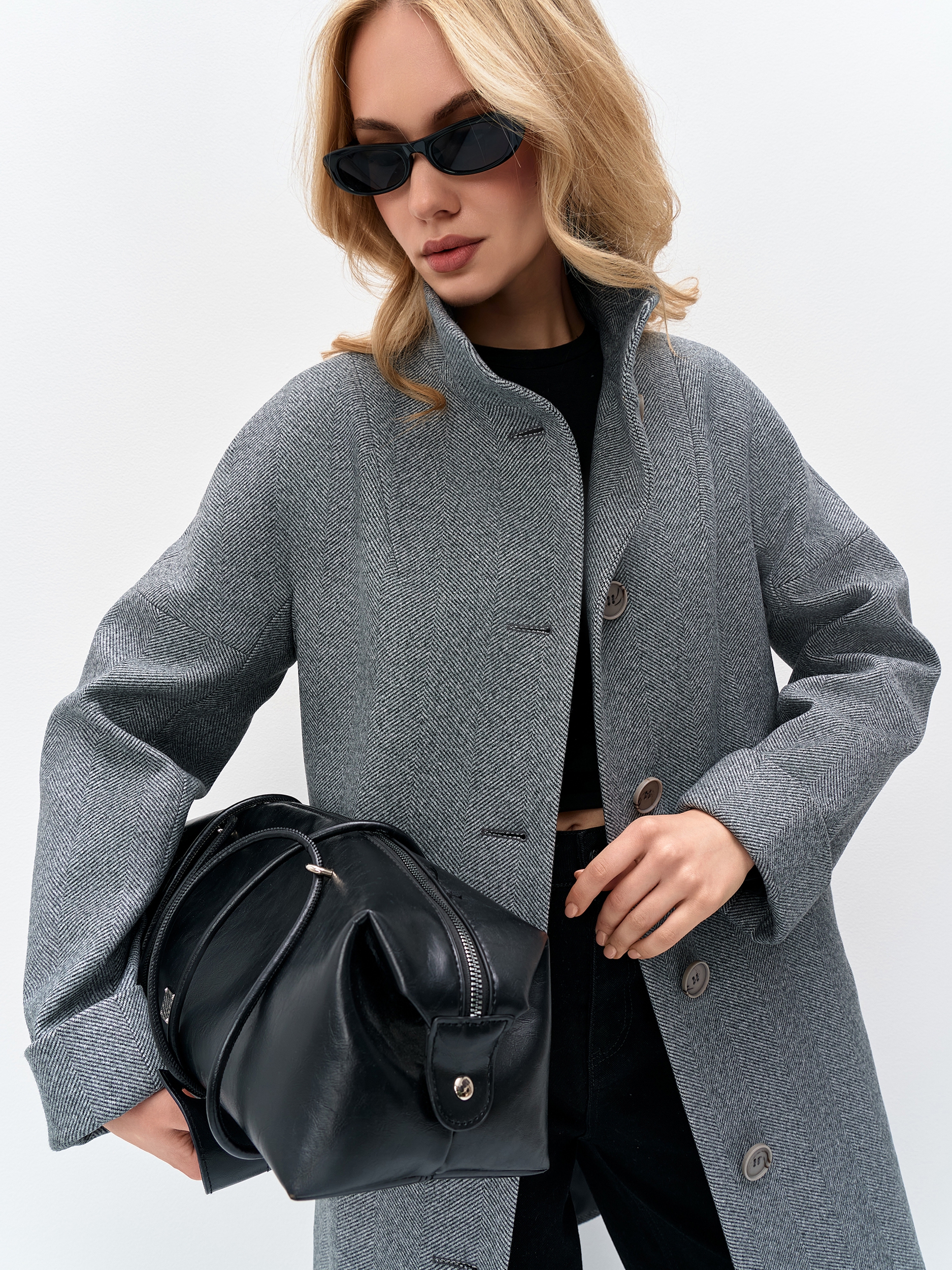 Пальто женское демисезонное 27101 (пепельный/ёлочка)