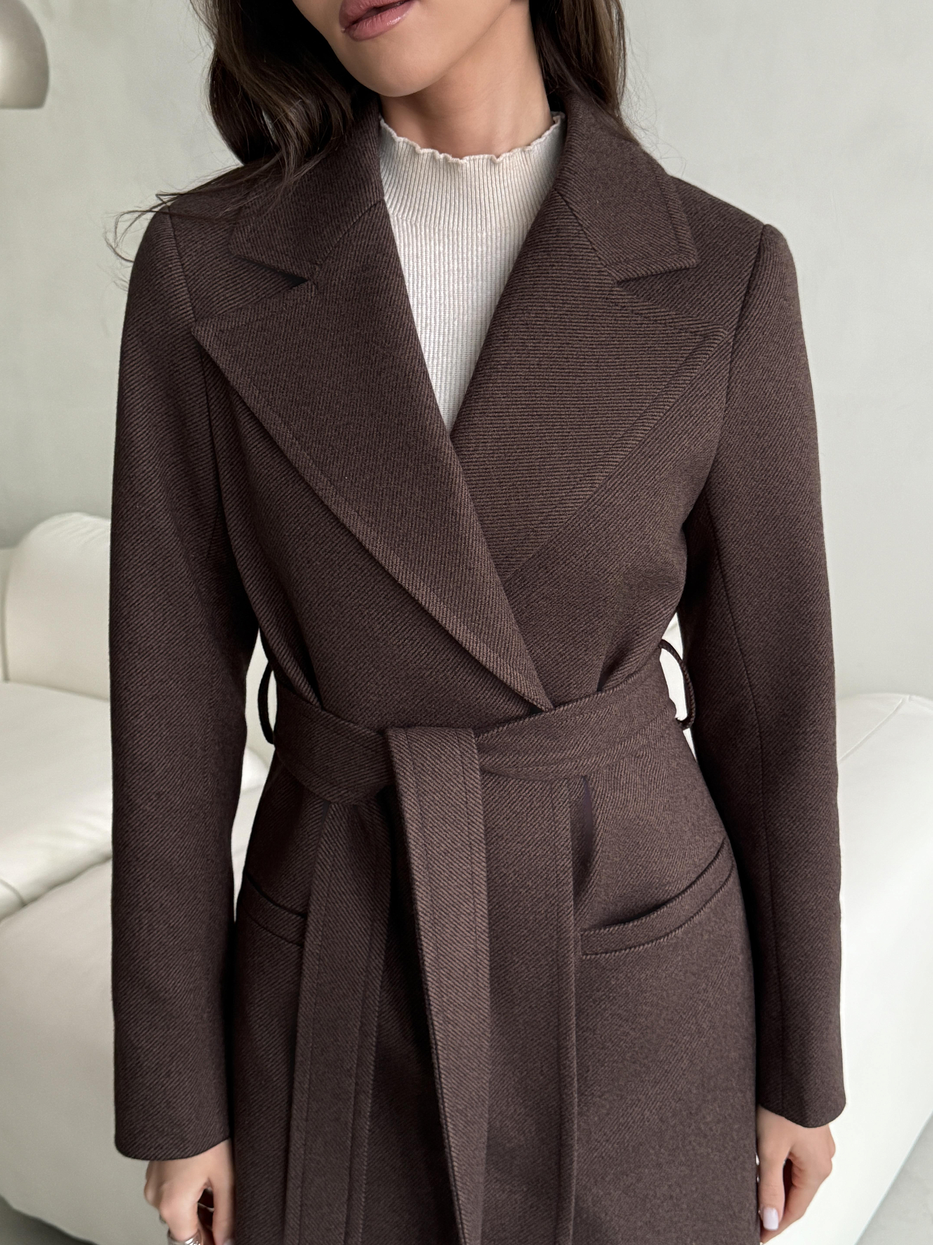 Пальто женское демисезонное 26770 (шоколад/рубчик)