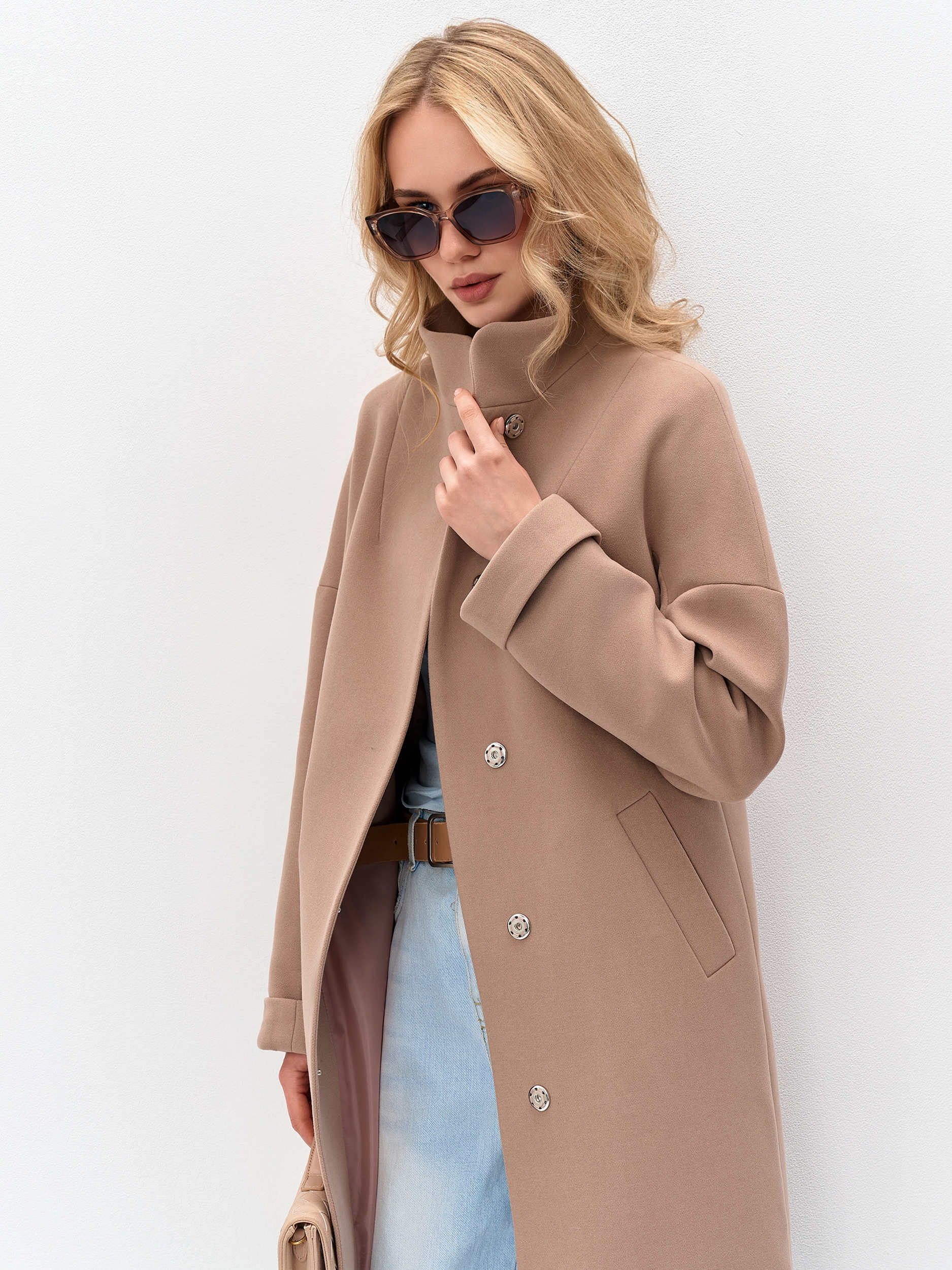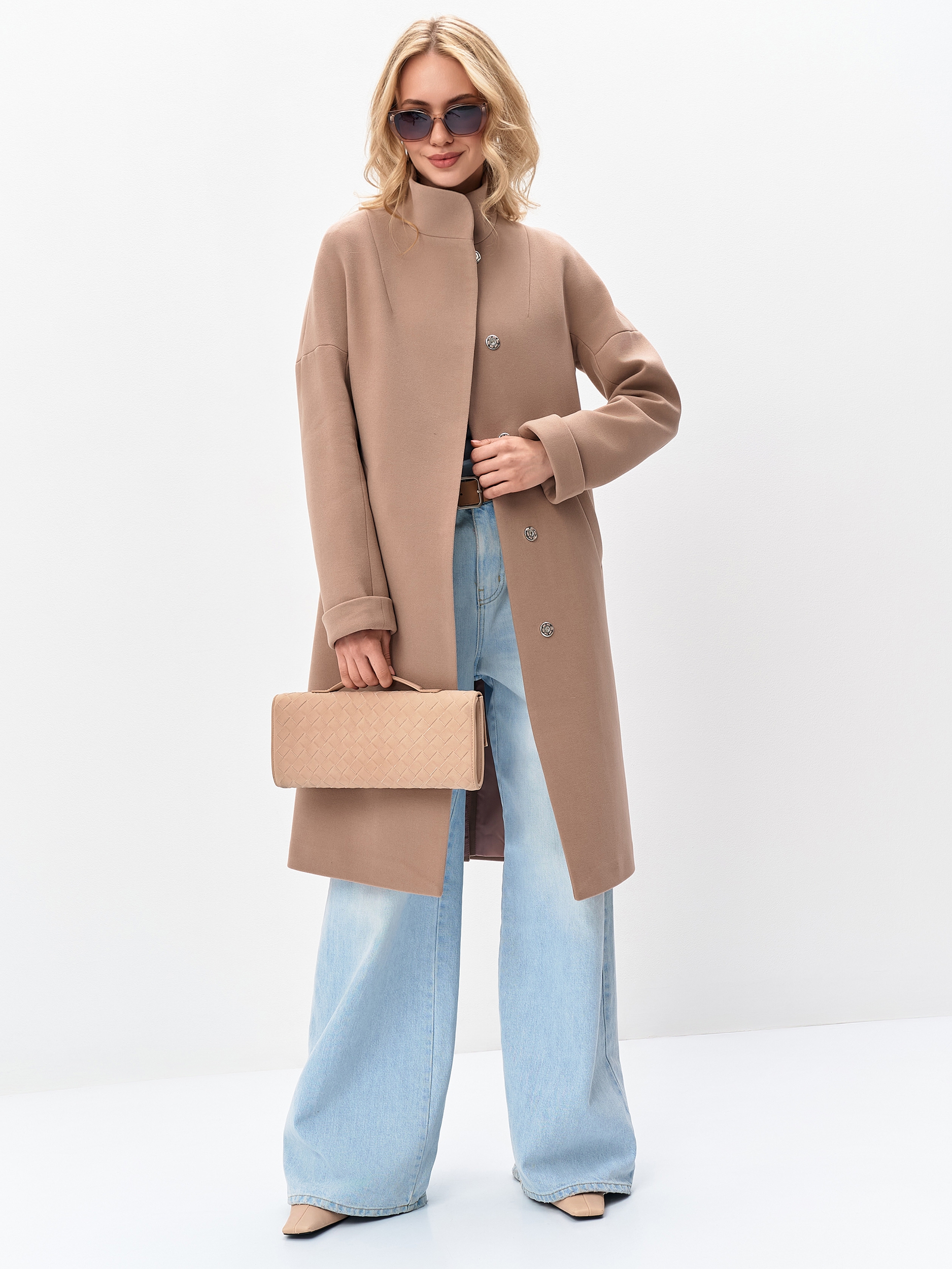 Пальто демисезонное с воротником стойка.