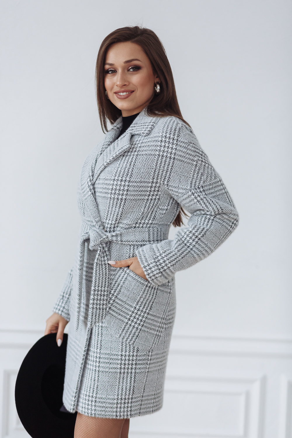 Пальто женское демисезонное 22400  (серый/клетка)