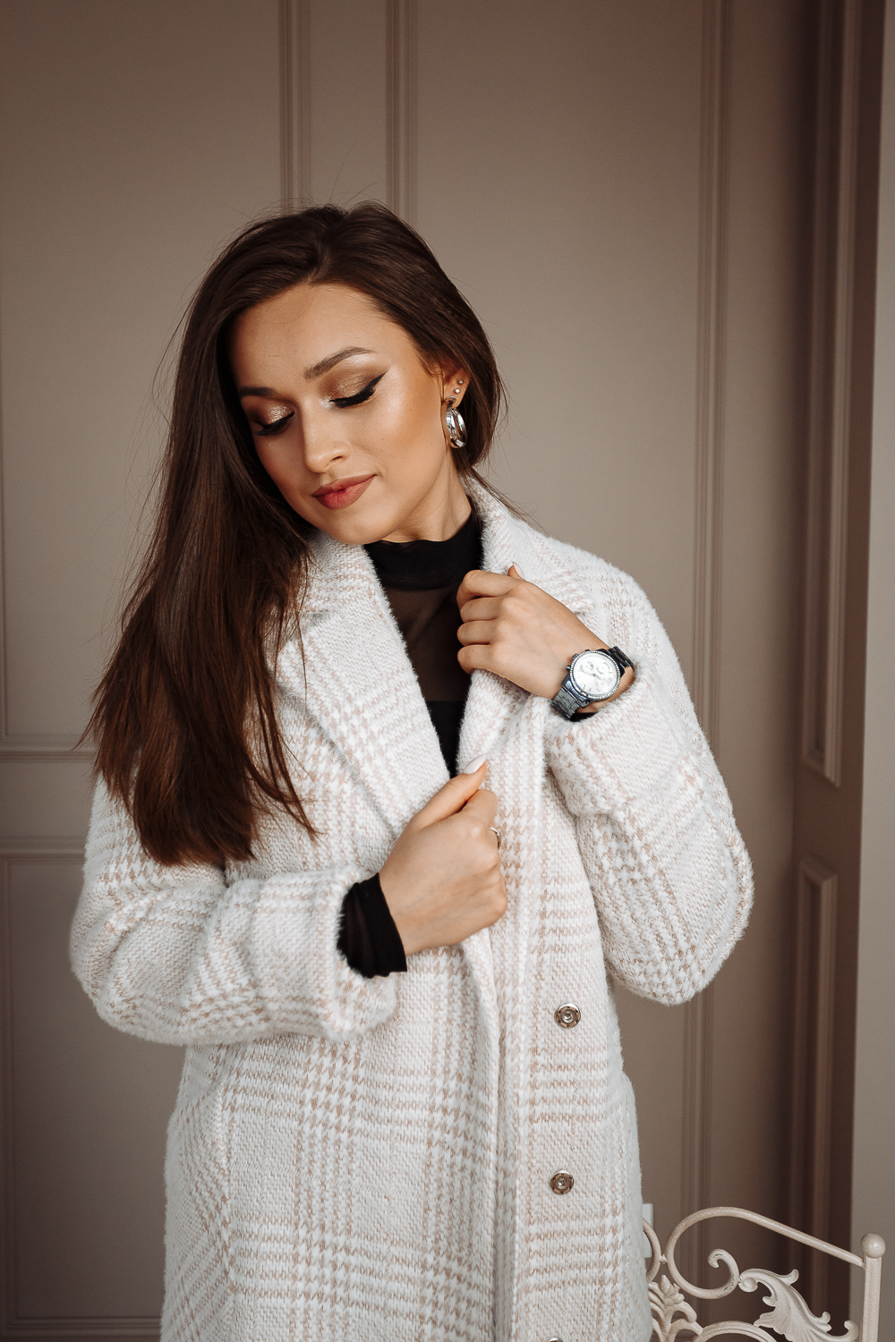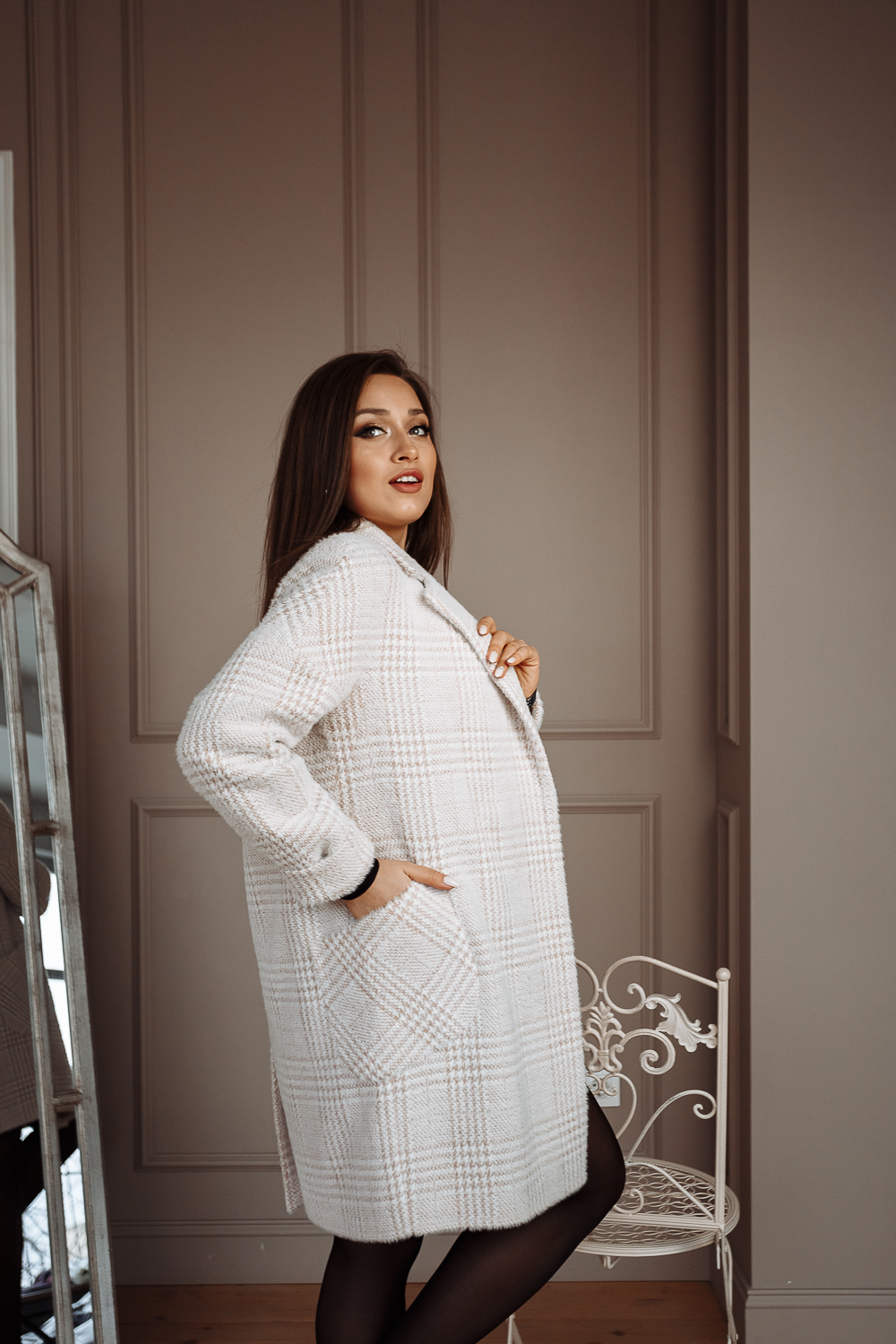 Пальто женское демисезонное 22400 (беж./клетка)