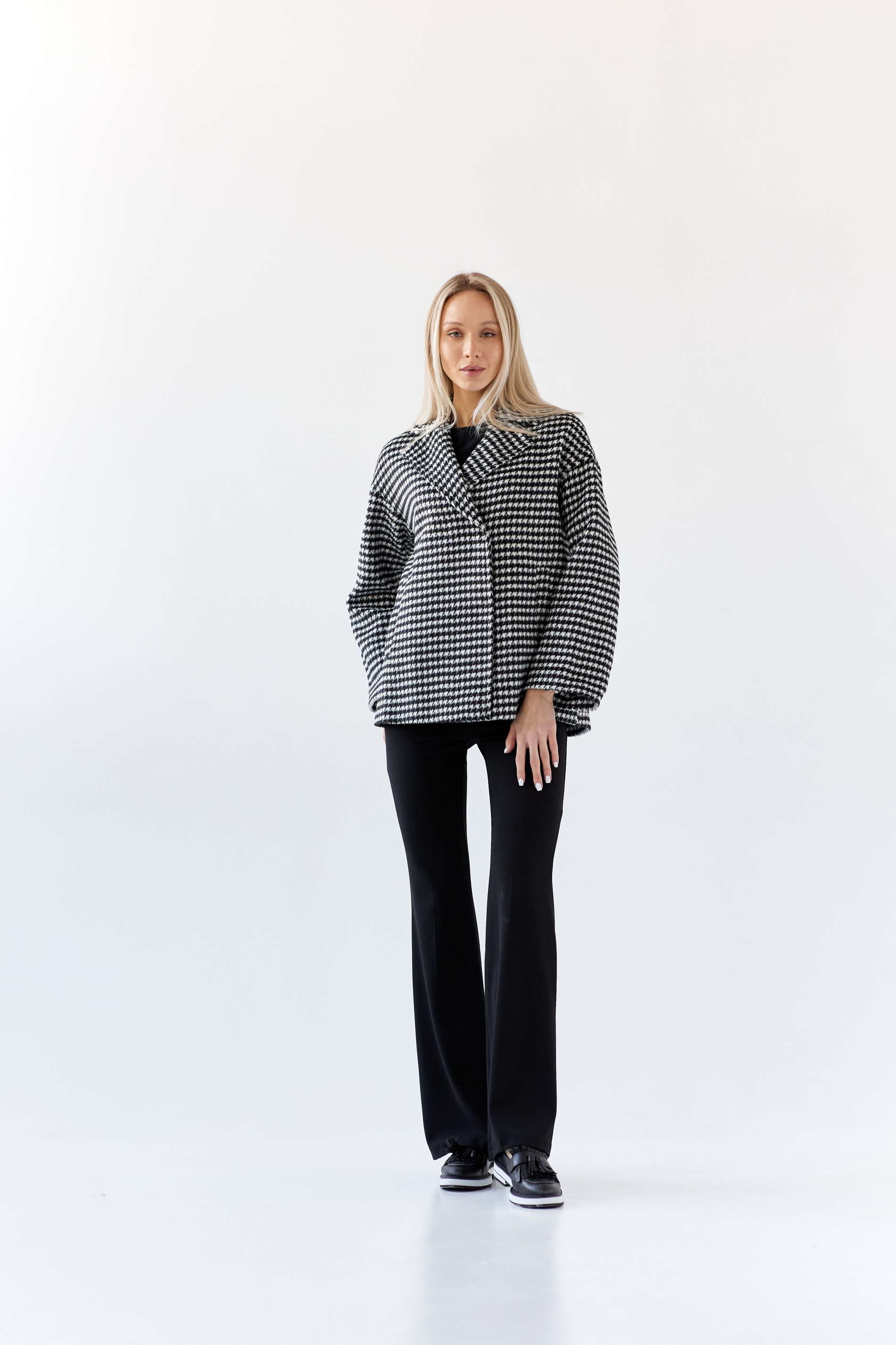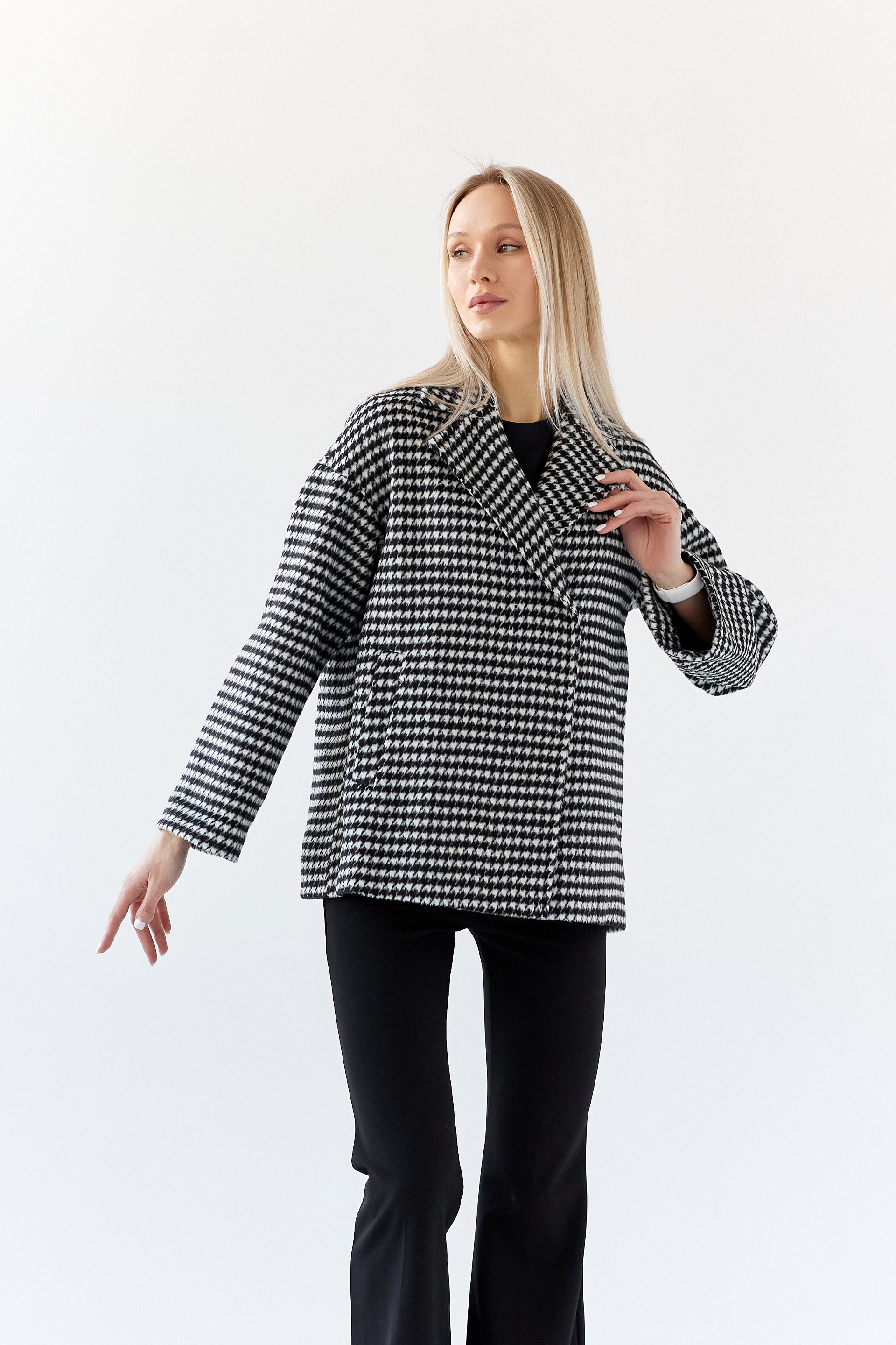 Пальто женское демисезонное 24332 (черно-белый)