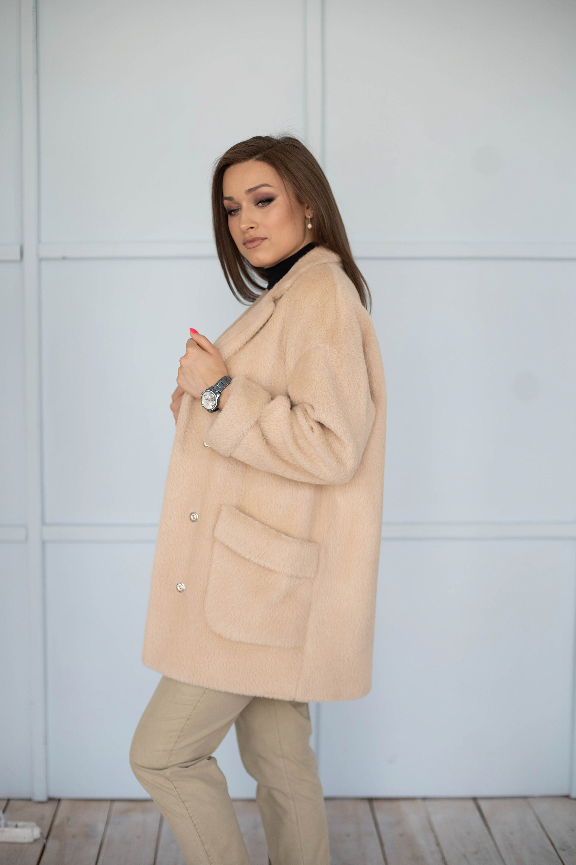 Пальто прямого силуэта, мягкая свободная форма.Оверсайз.
