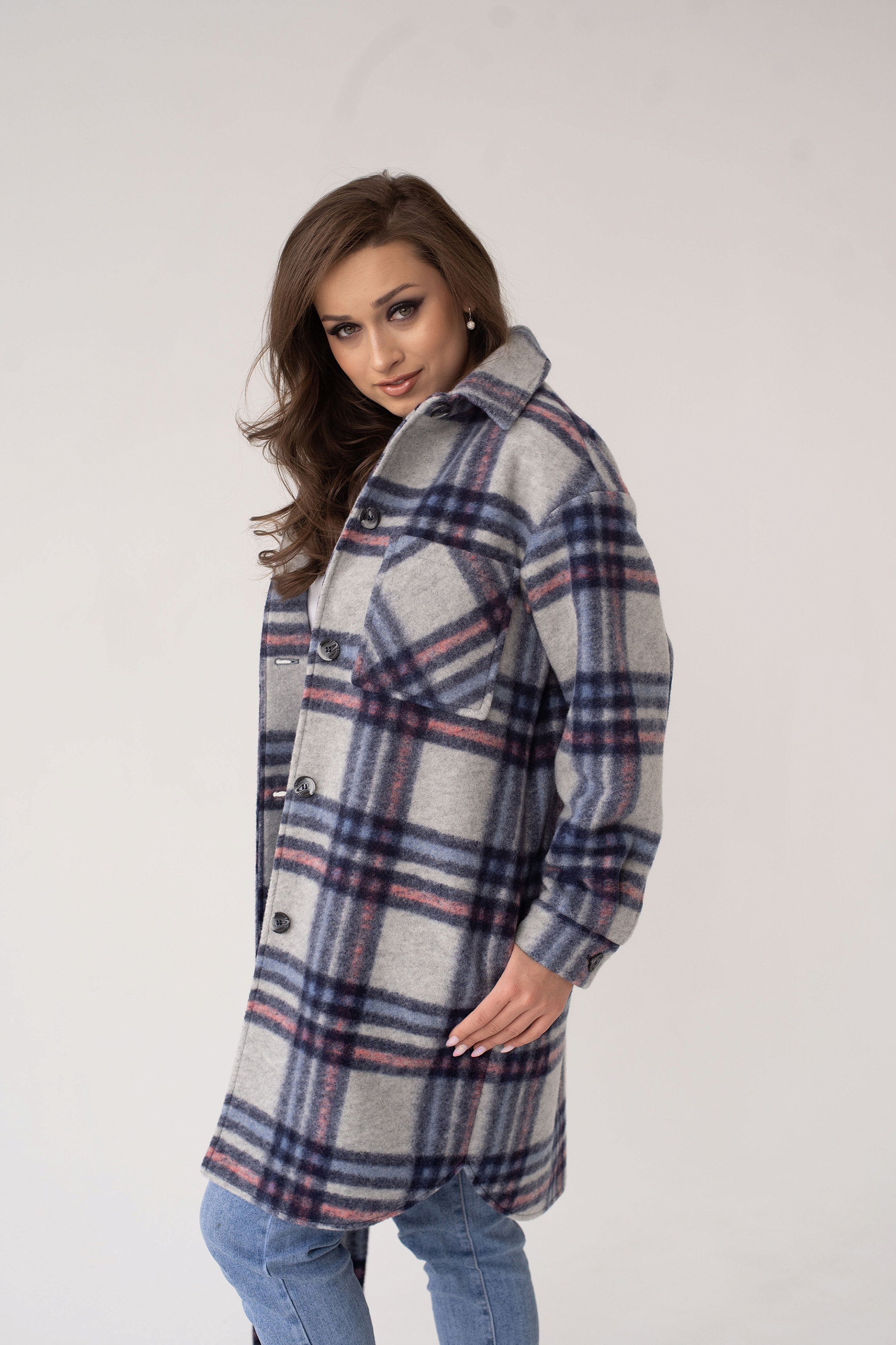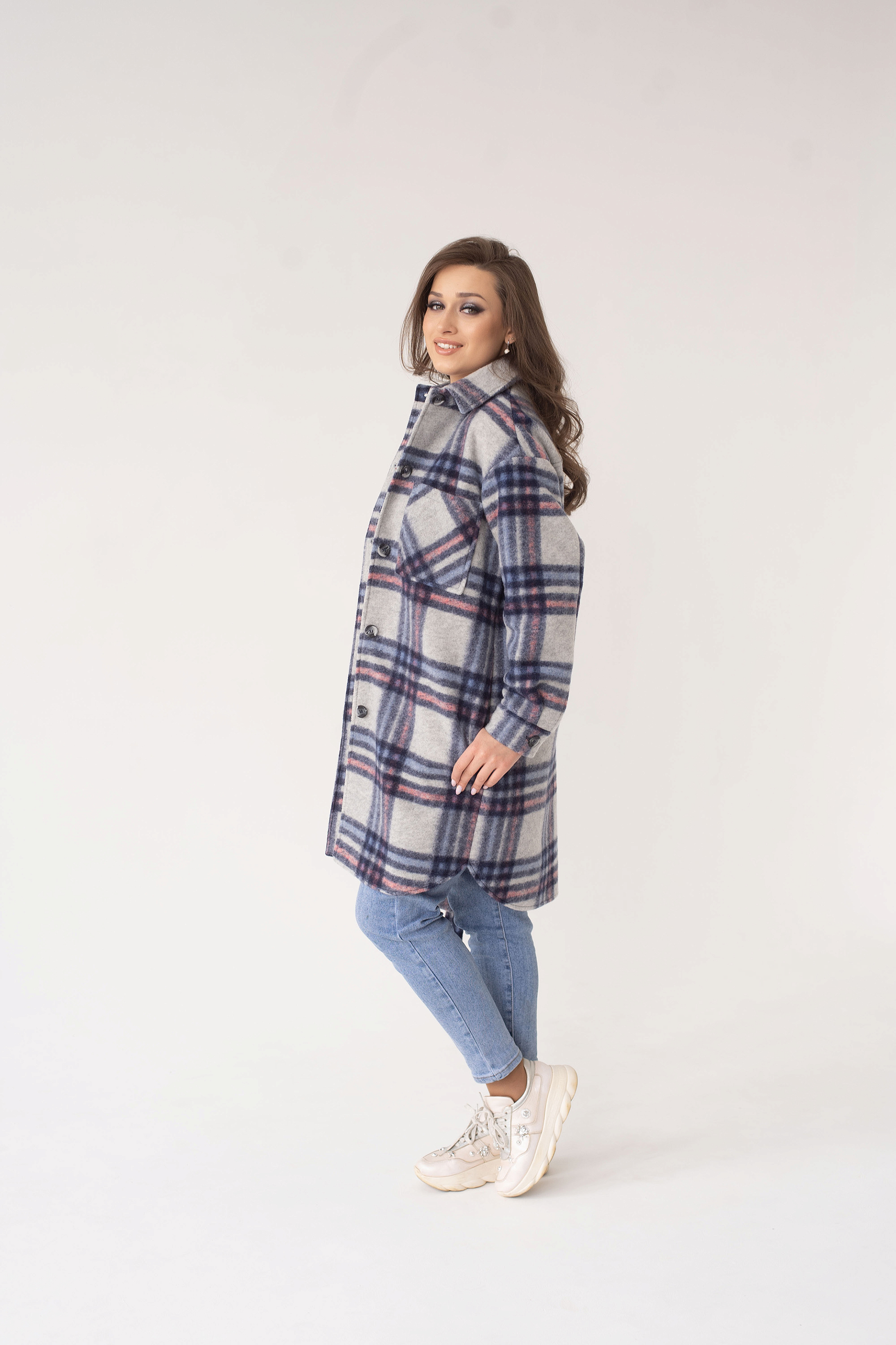 Рубашка женская демисезонная 23200 (синий/клетка)