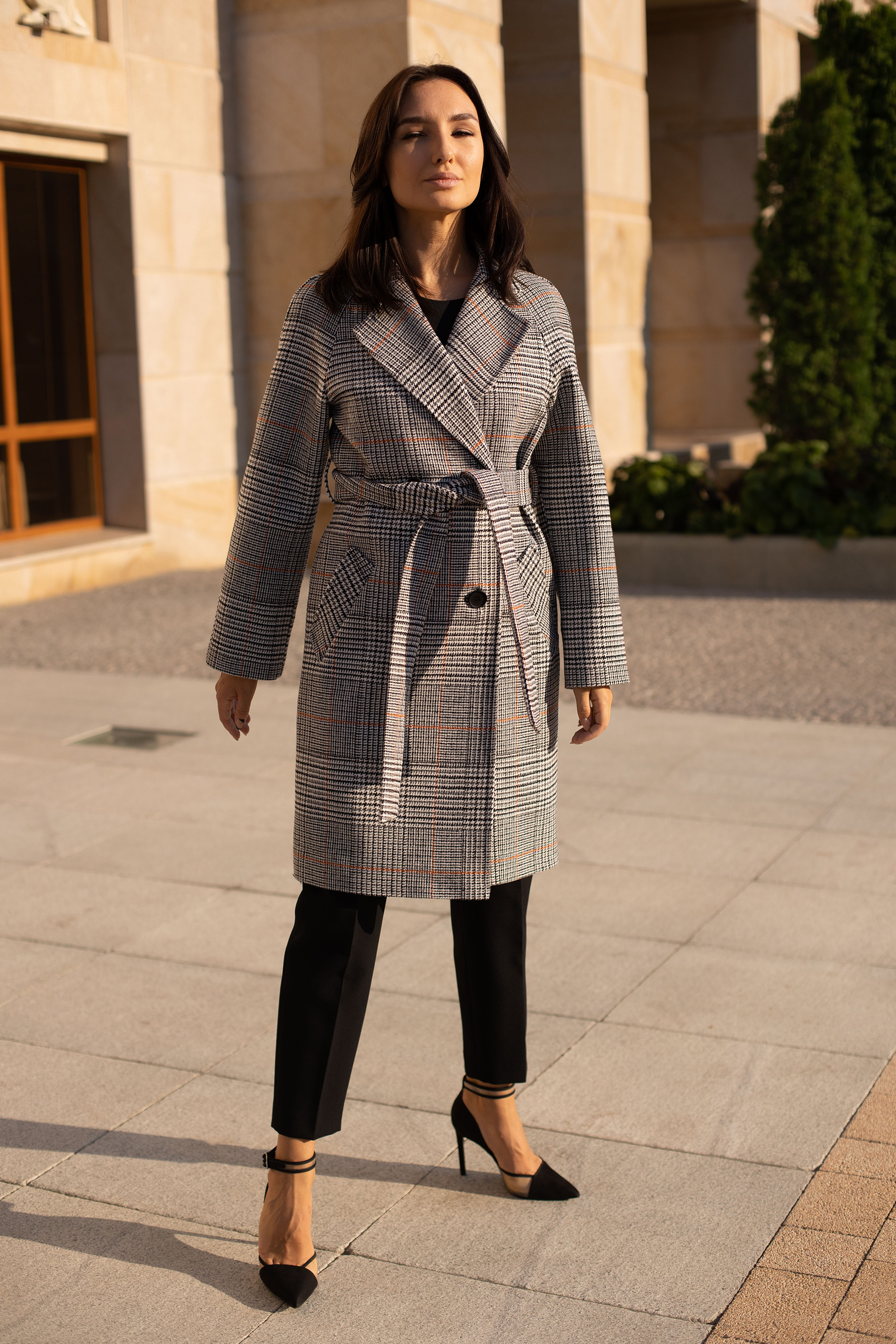 Пальто женское демисезонное 23220 (клетка michel)