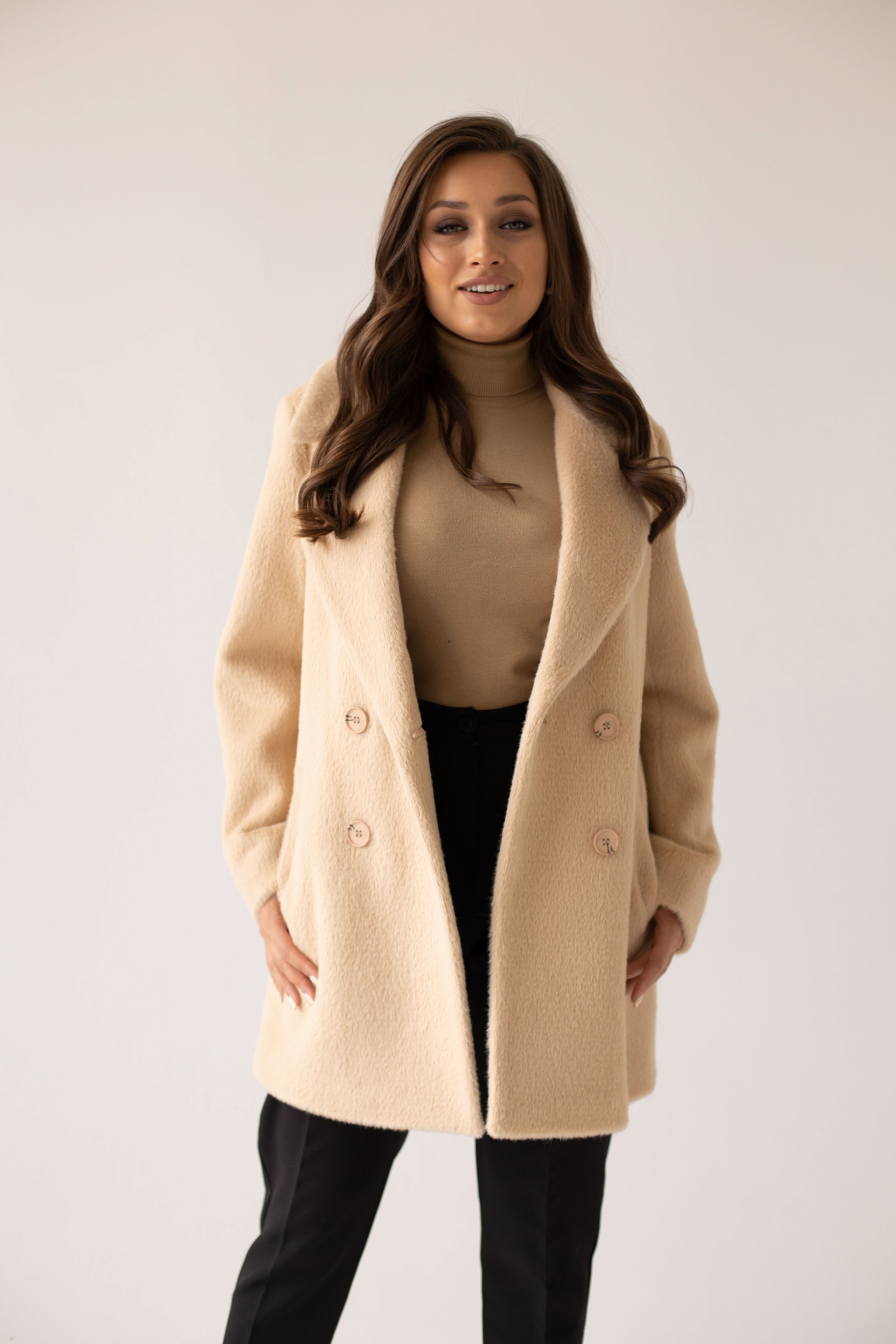 Пальто женское демисезонное 23720 (беж/тедди)