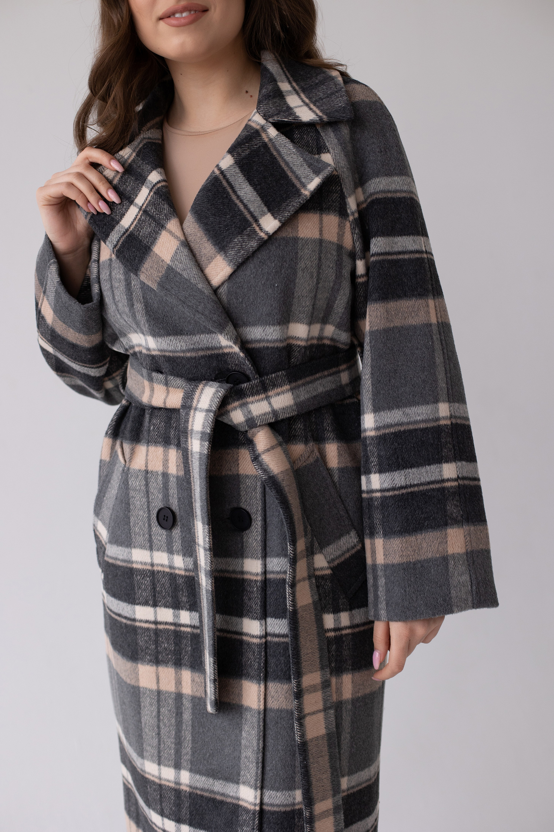 Пальто женское демисезонное 23110 (клетка серый+беж)