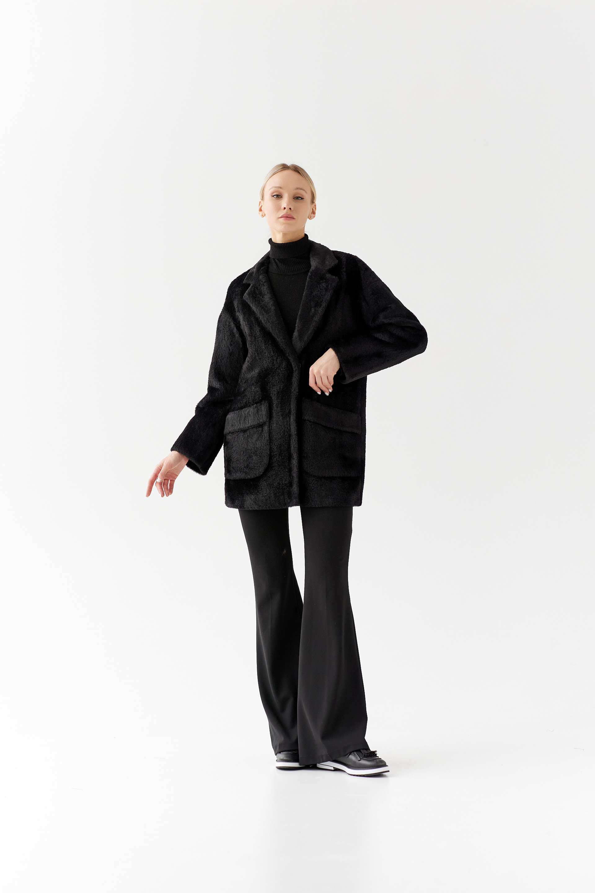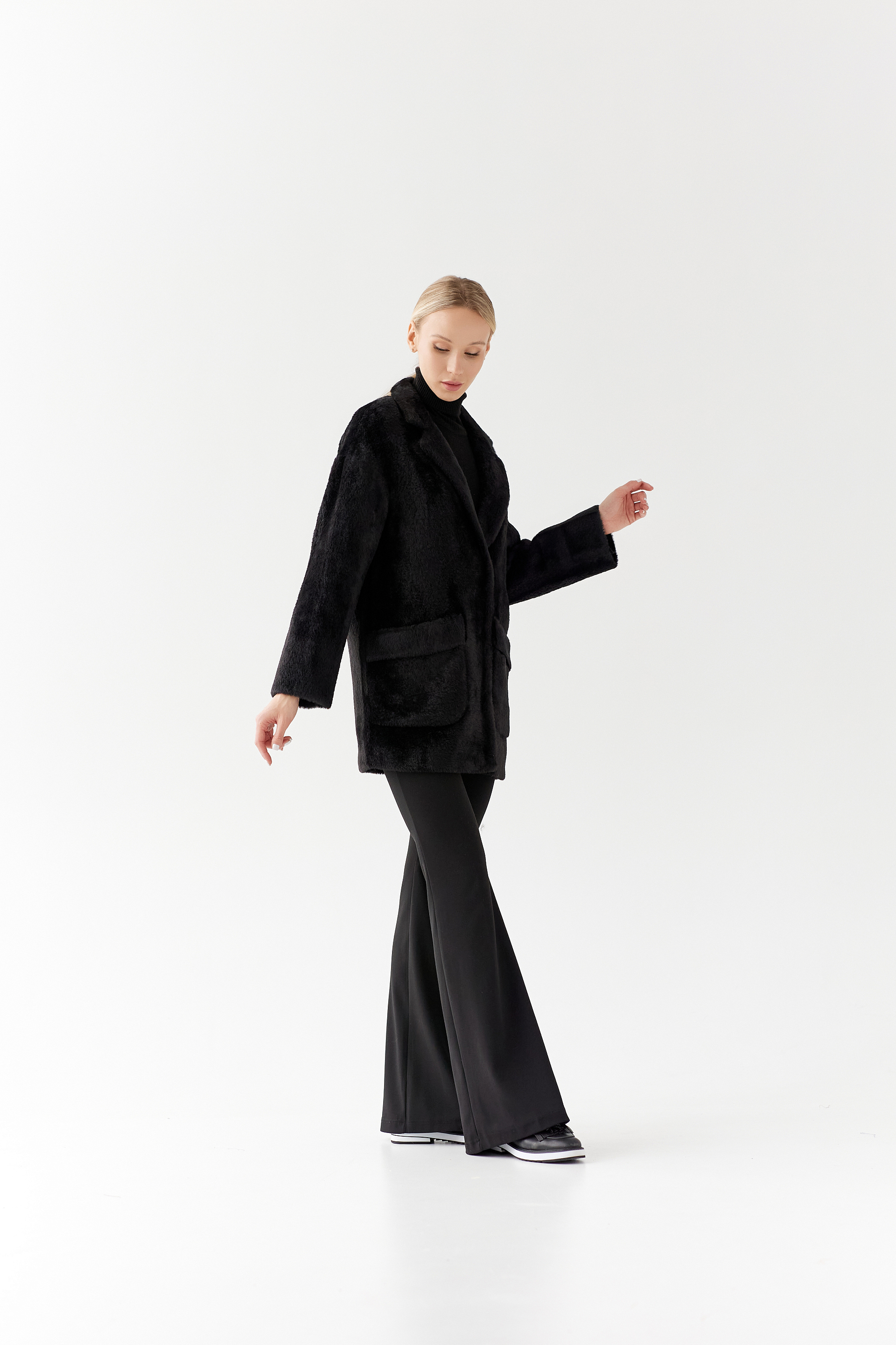 Пальто женское демисезонное 25520 (черный/тедди)
