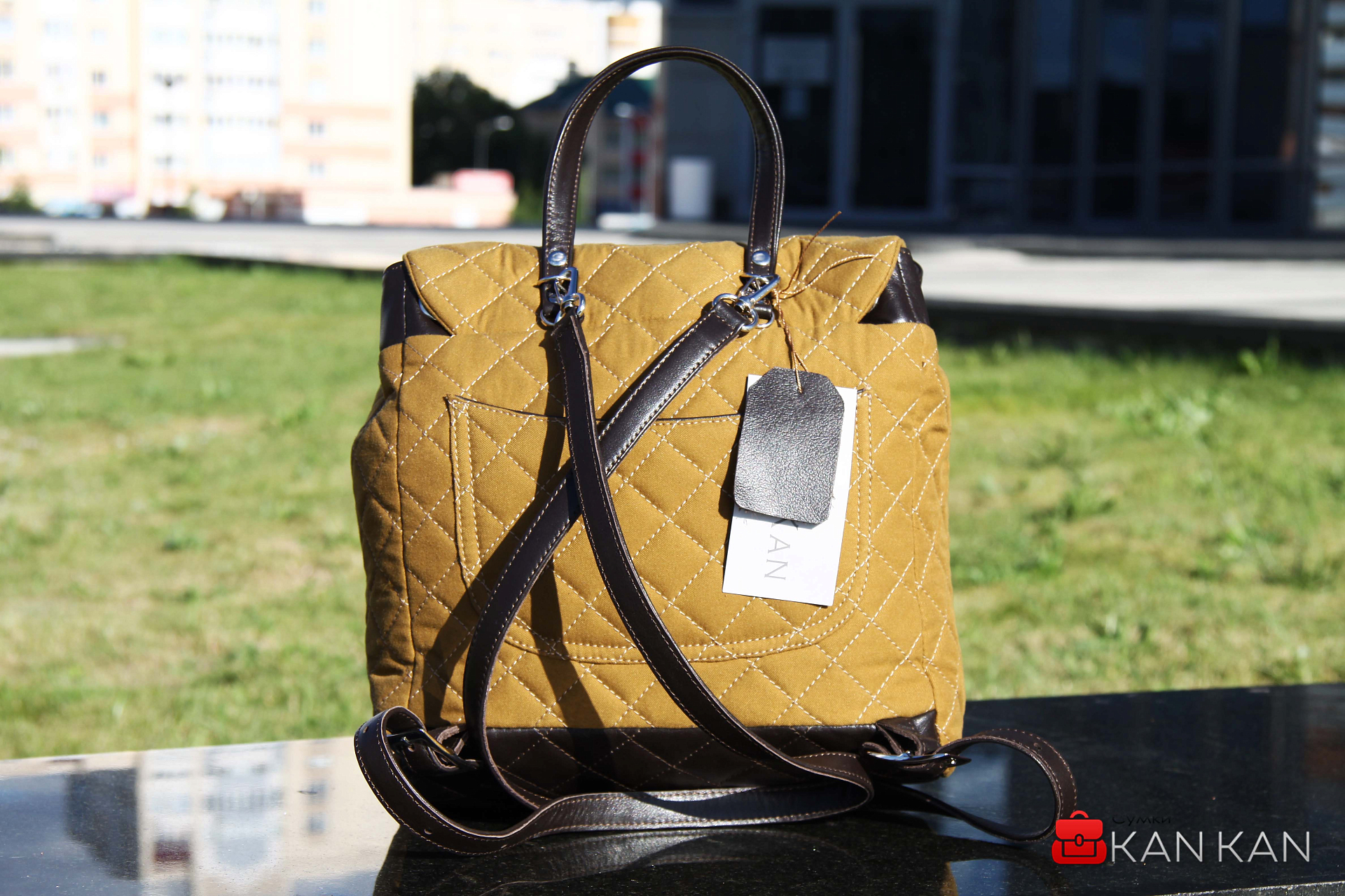 Цвет: Горчица + Коричневая отделка кожей