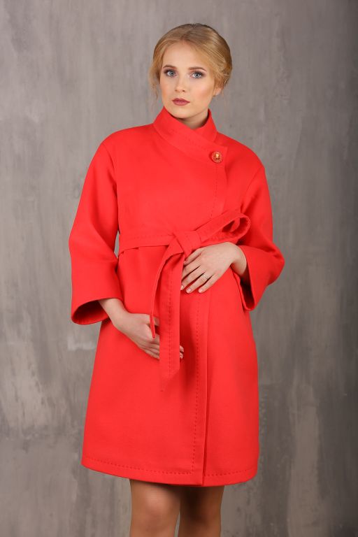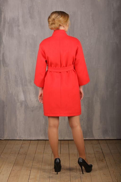 Изделие с большой линией заноса. Застёгивается на три пришивные кнопки.