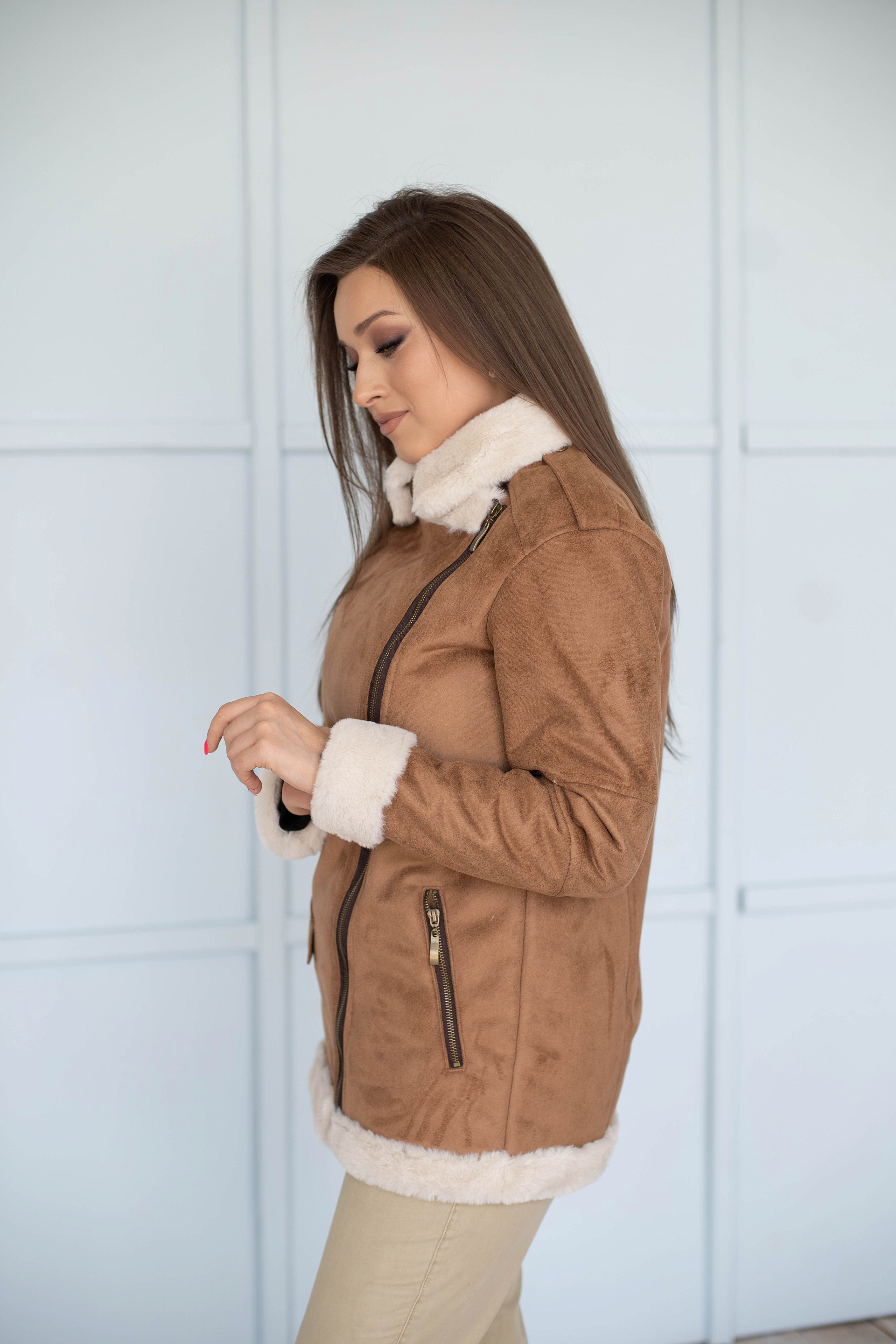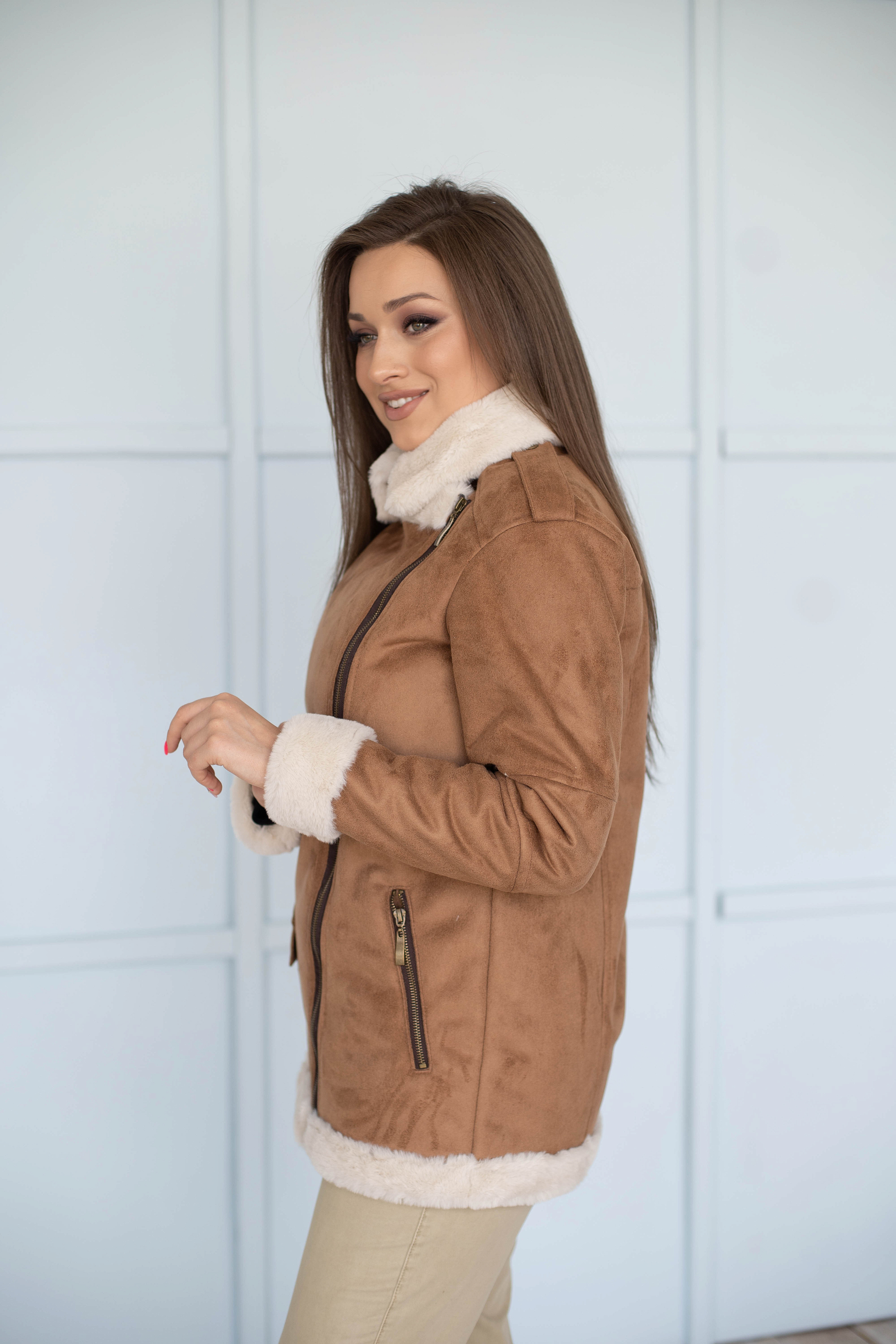 Дублёнка женская демисезонная из искусственной замши с мехом
