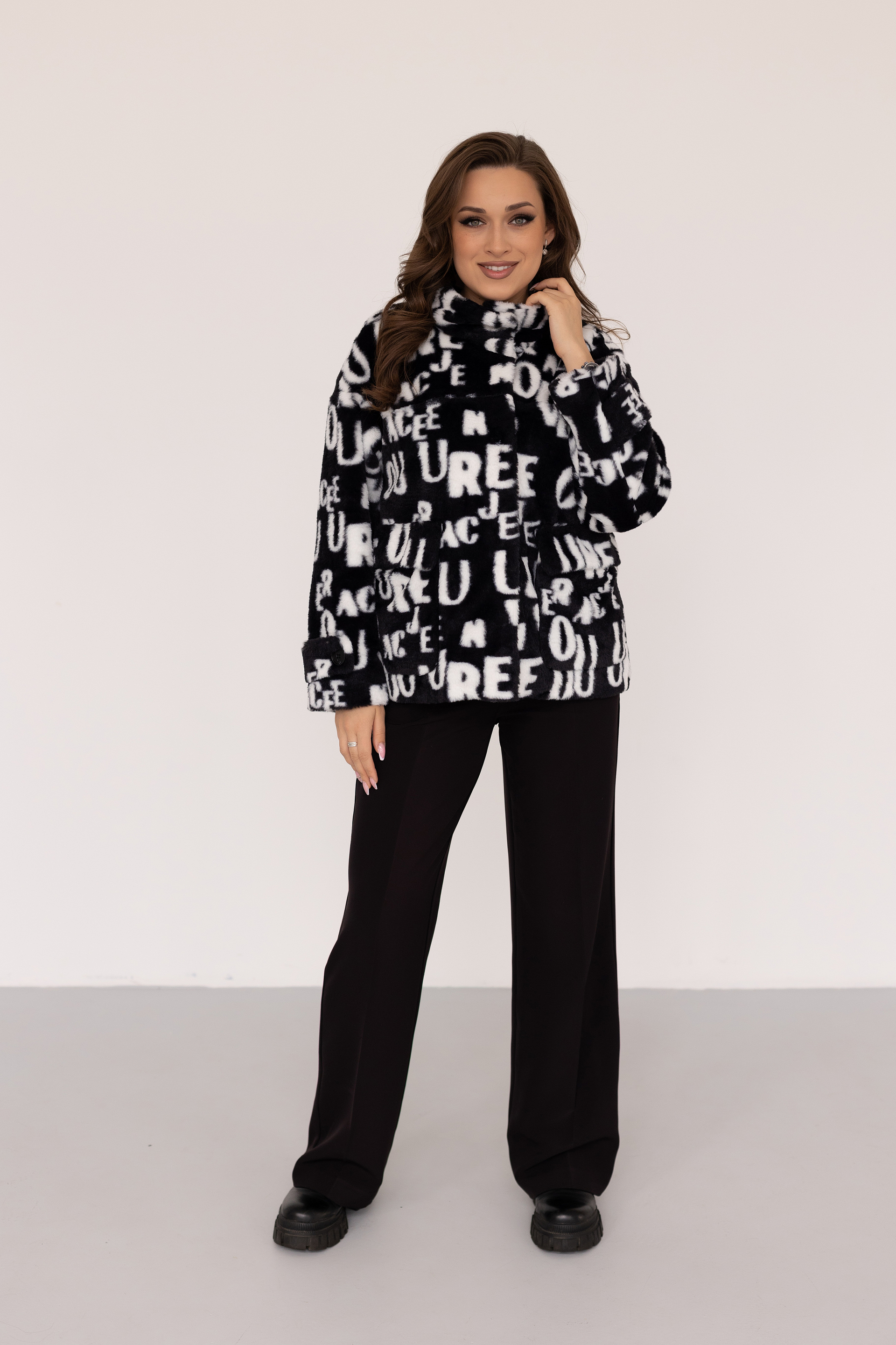 Шубка женская еврозима 24350 (черно-белый/буквы)
