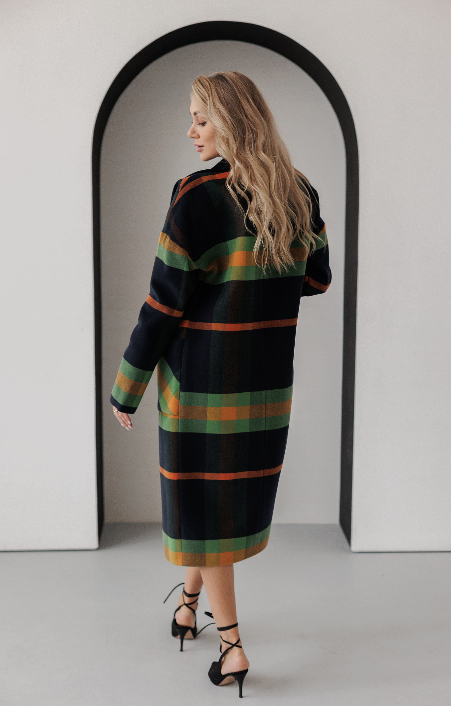 Пальто женское демисезонное 20550Р (клетка зеленый+желтый)