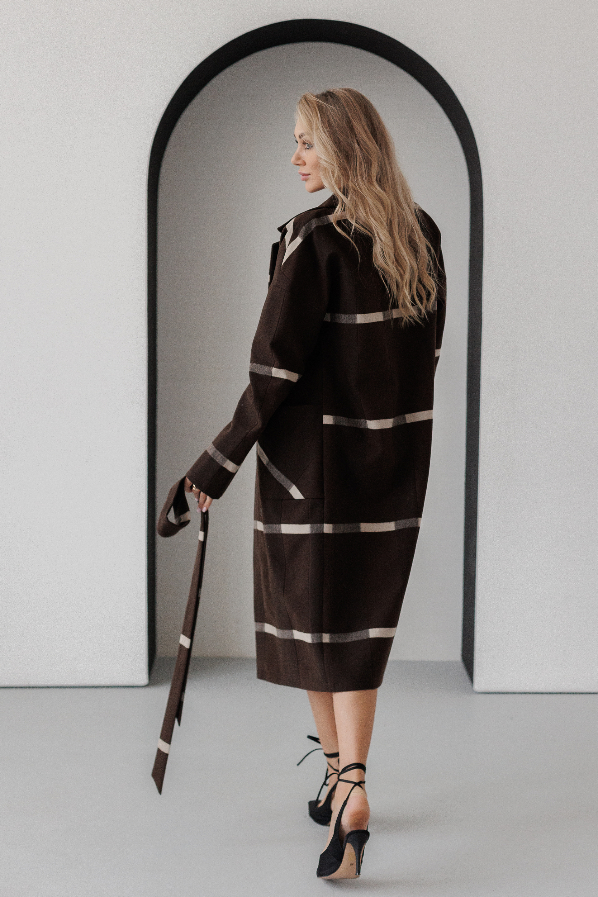 Пальто женское демисезонное 20550Р (клетка шоколад)