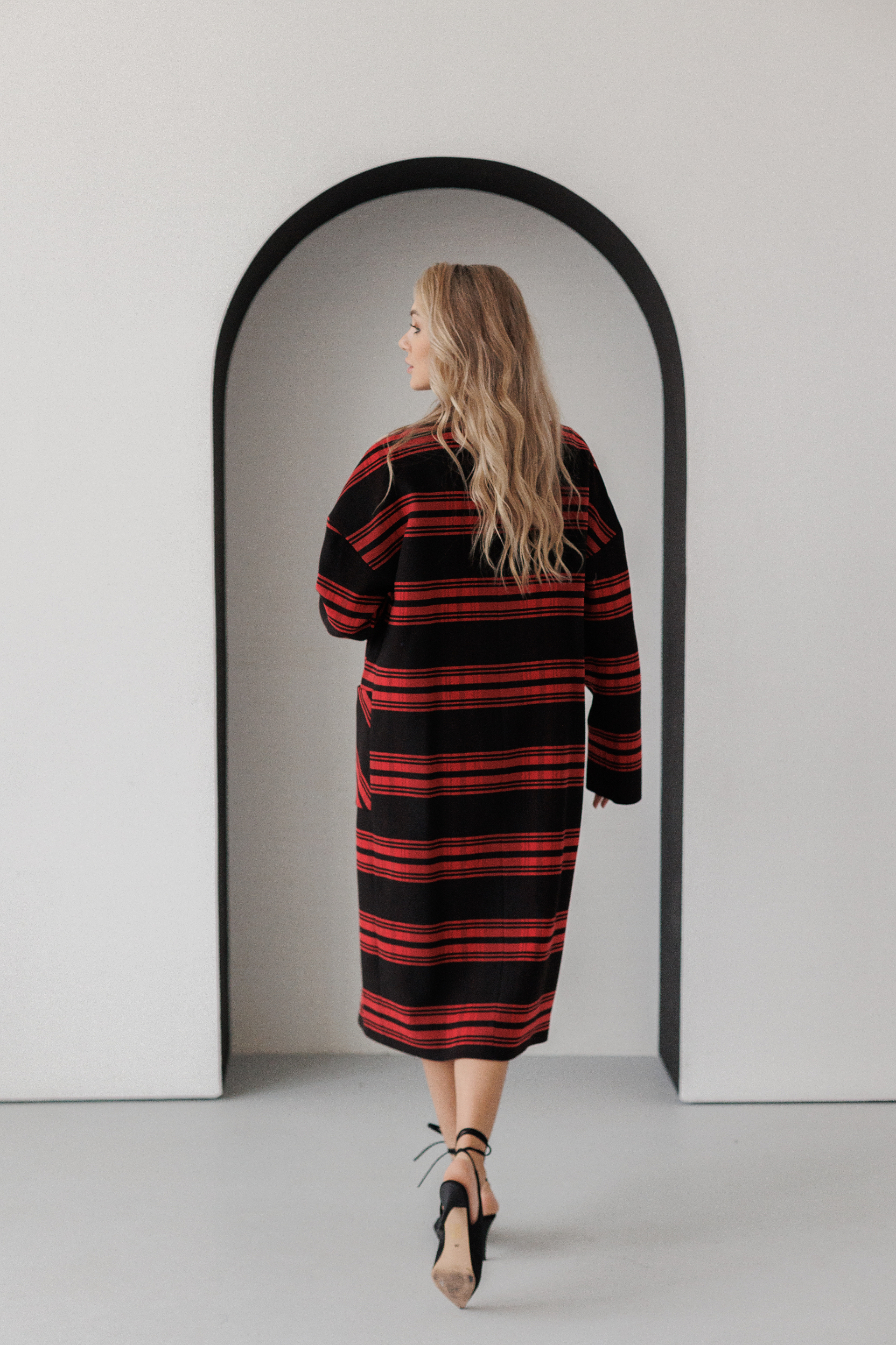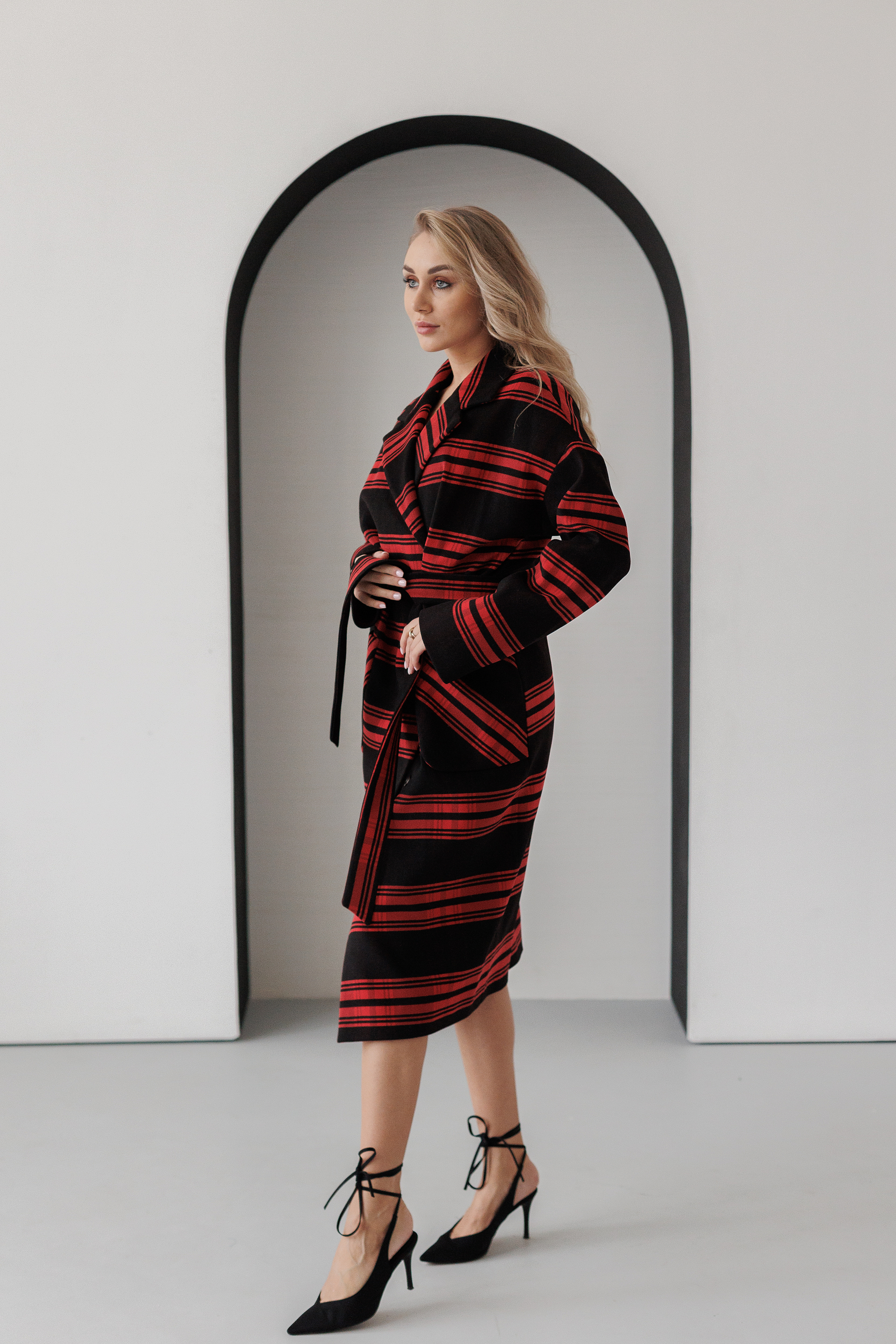 Пальто женское демисезонное 20550Р (клетка красно-черная)