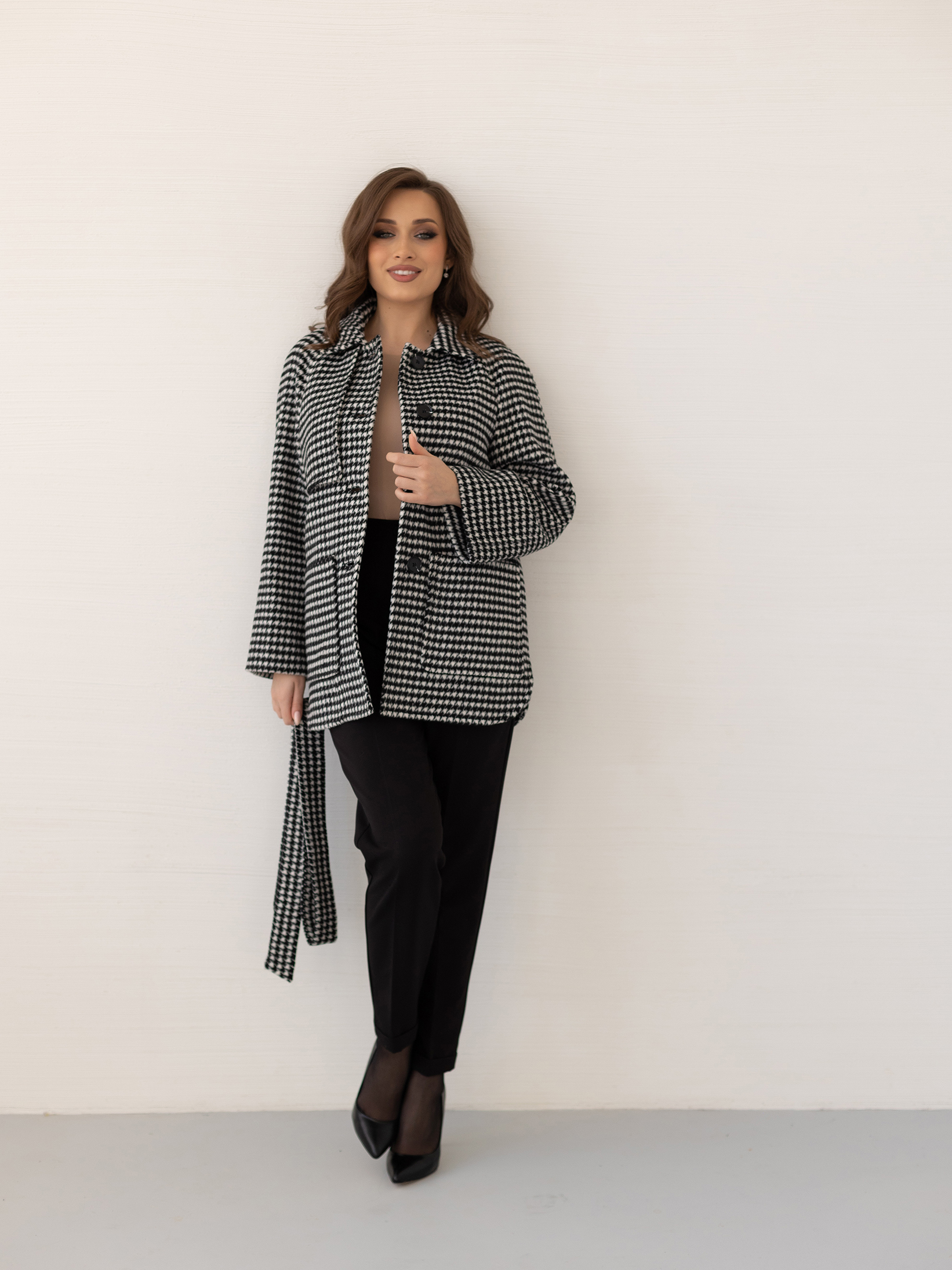 Пальто женское демисезонное 25010 (черно-белый)