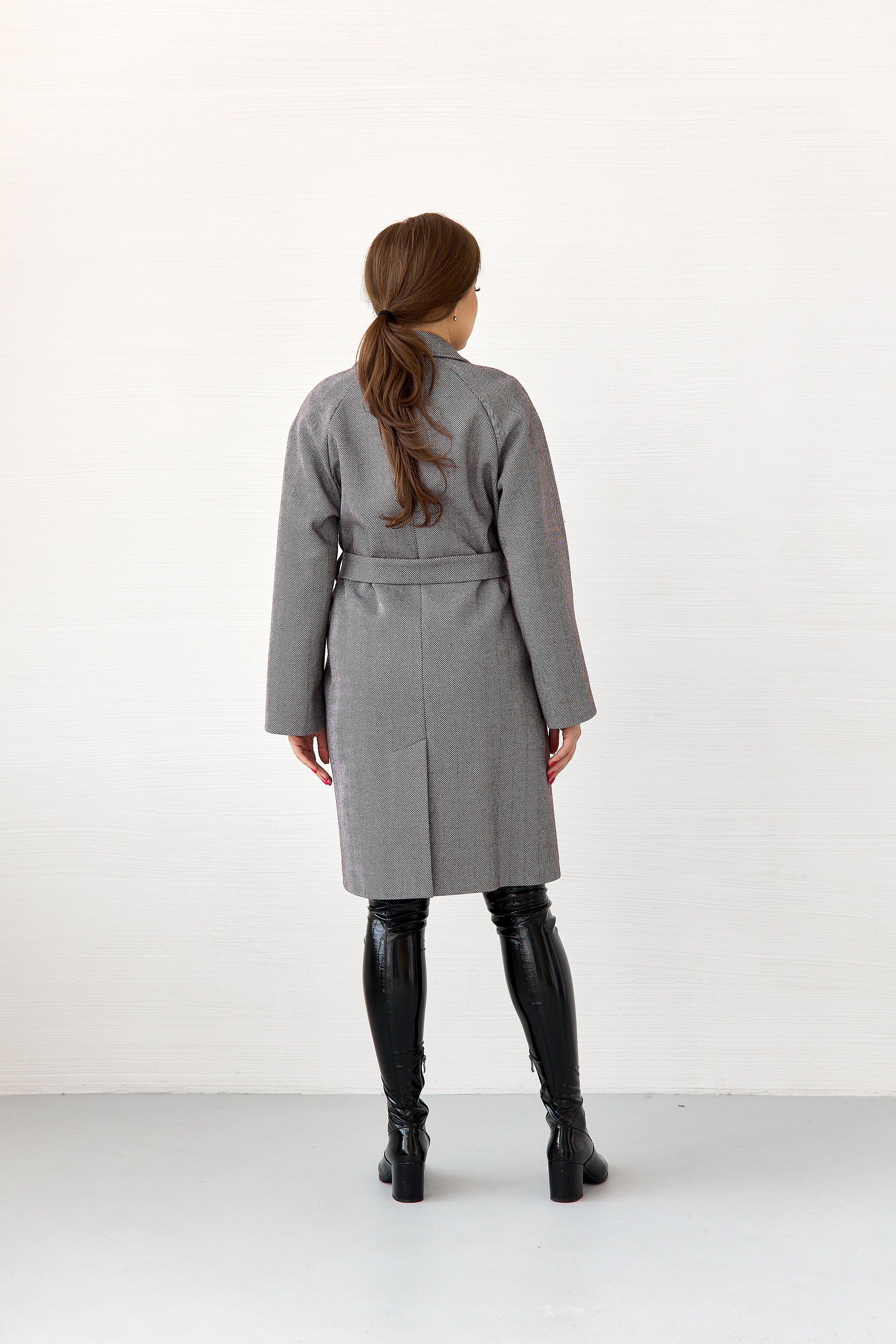 Пальто женское демисезонное 23220 (ёлочка/серый)