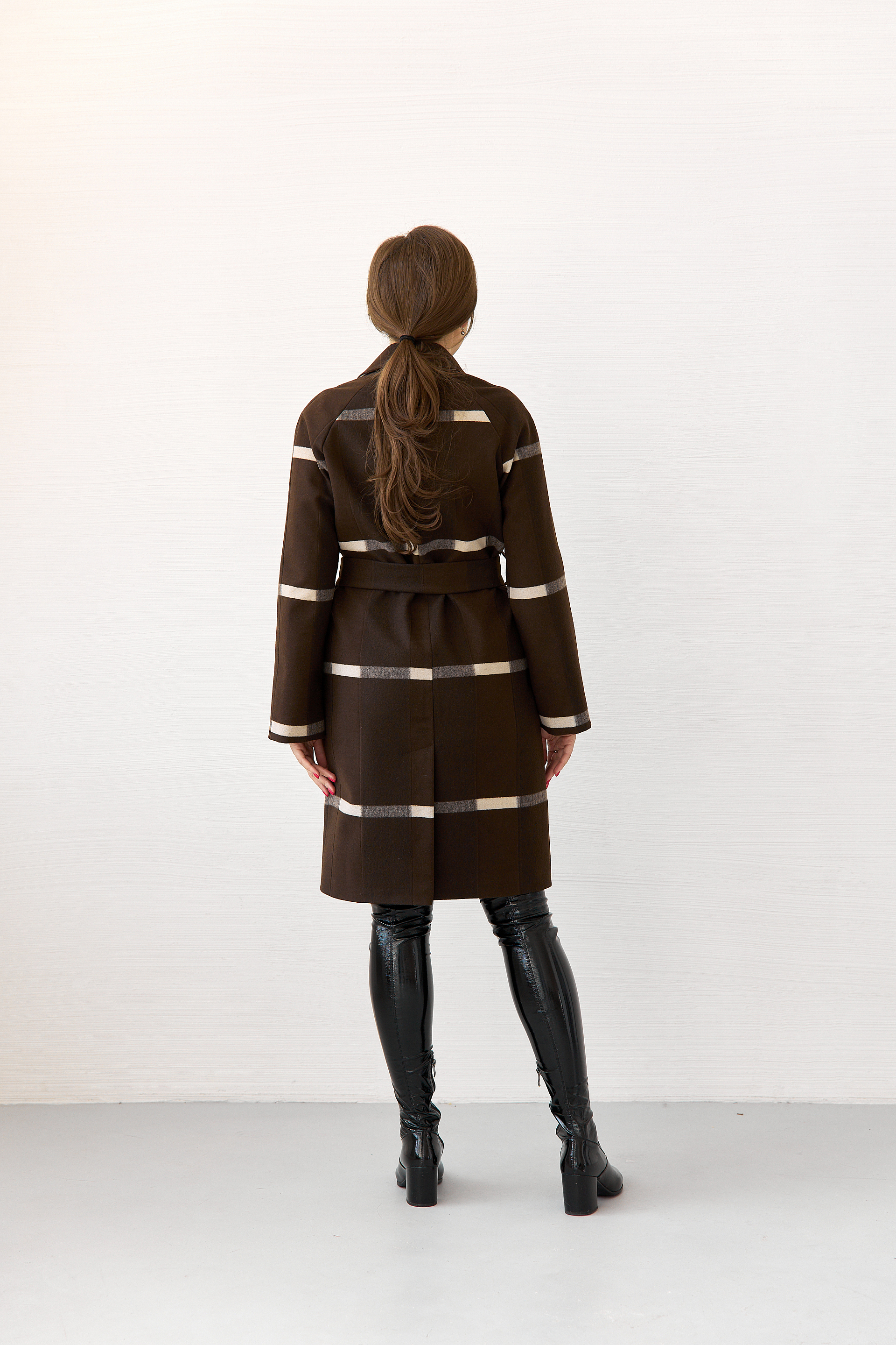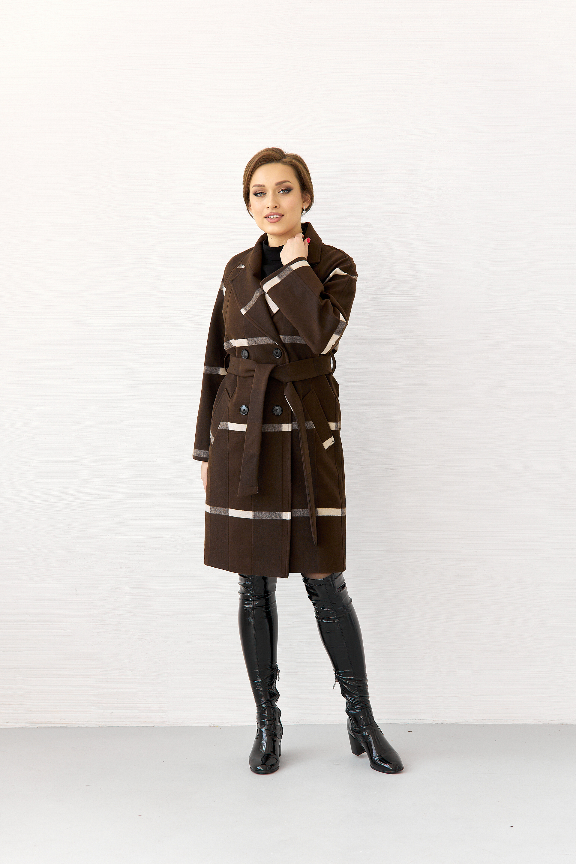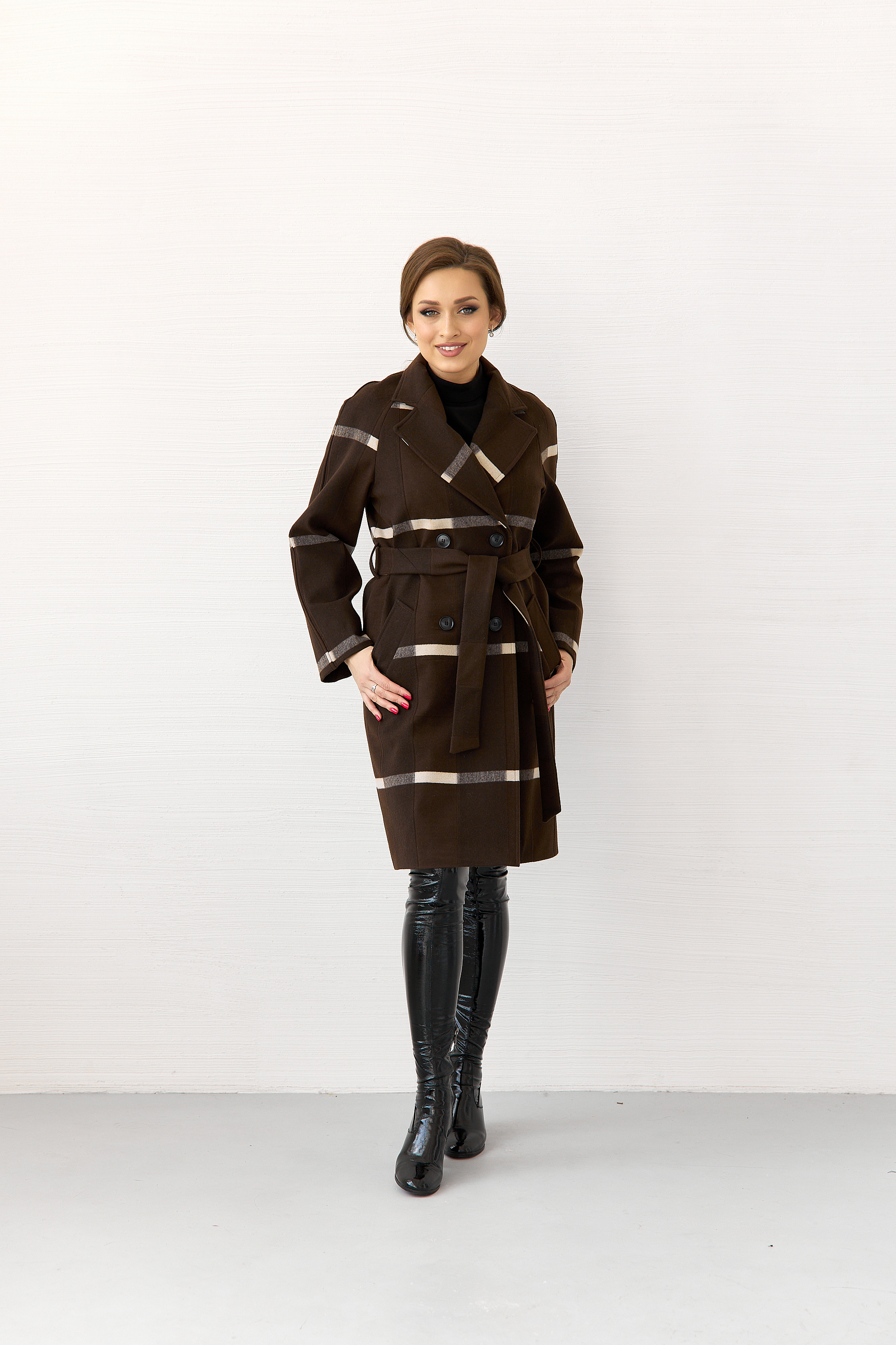 Пальто женское демисезонное 23220 (клетка (корич/бел))