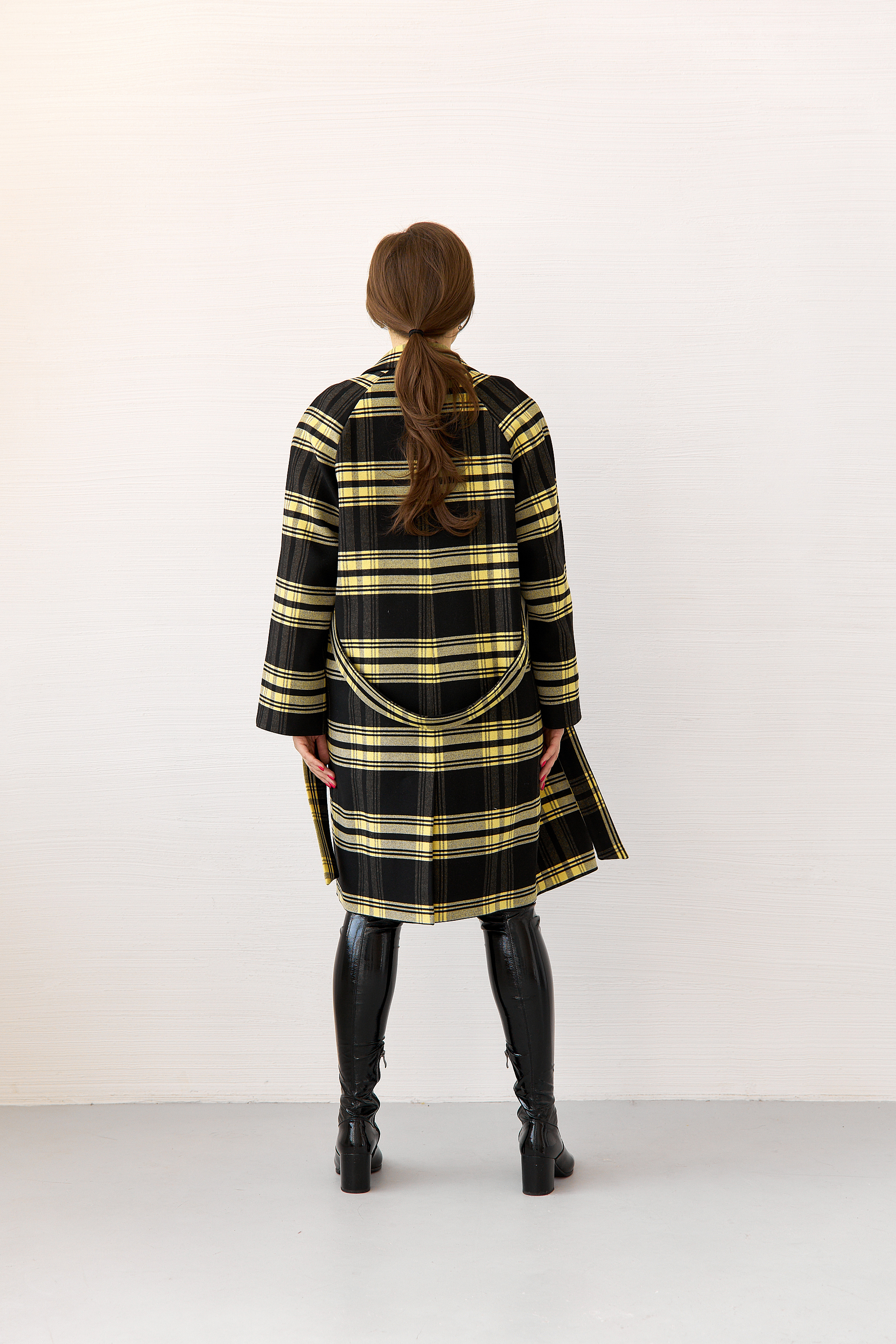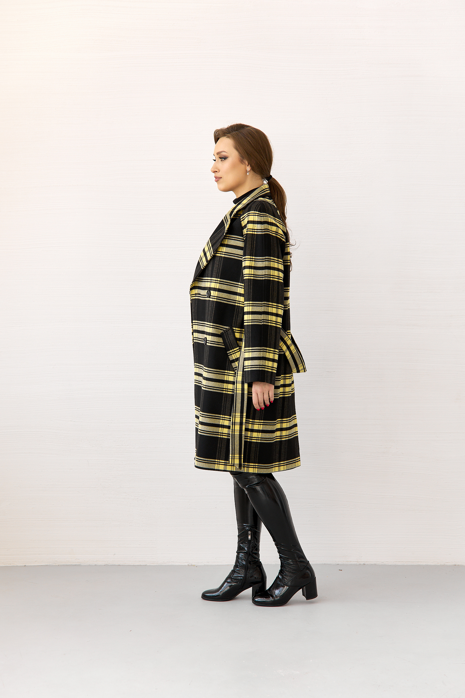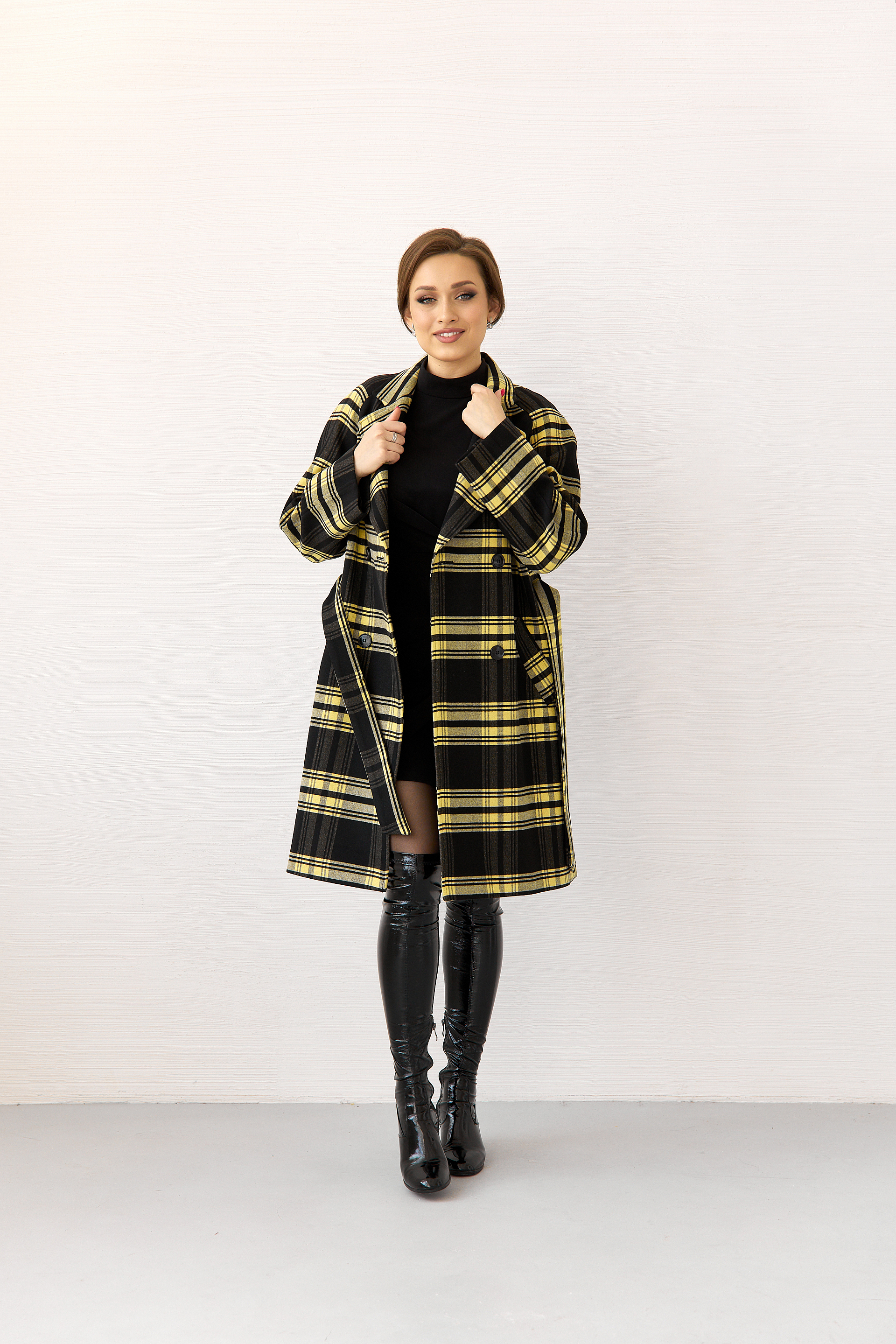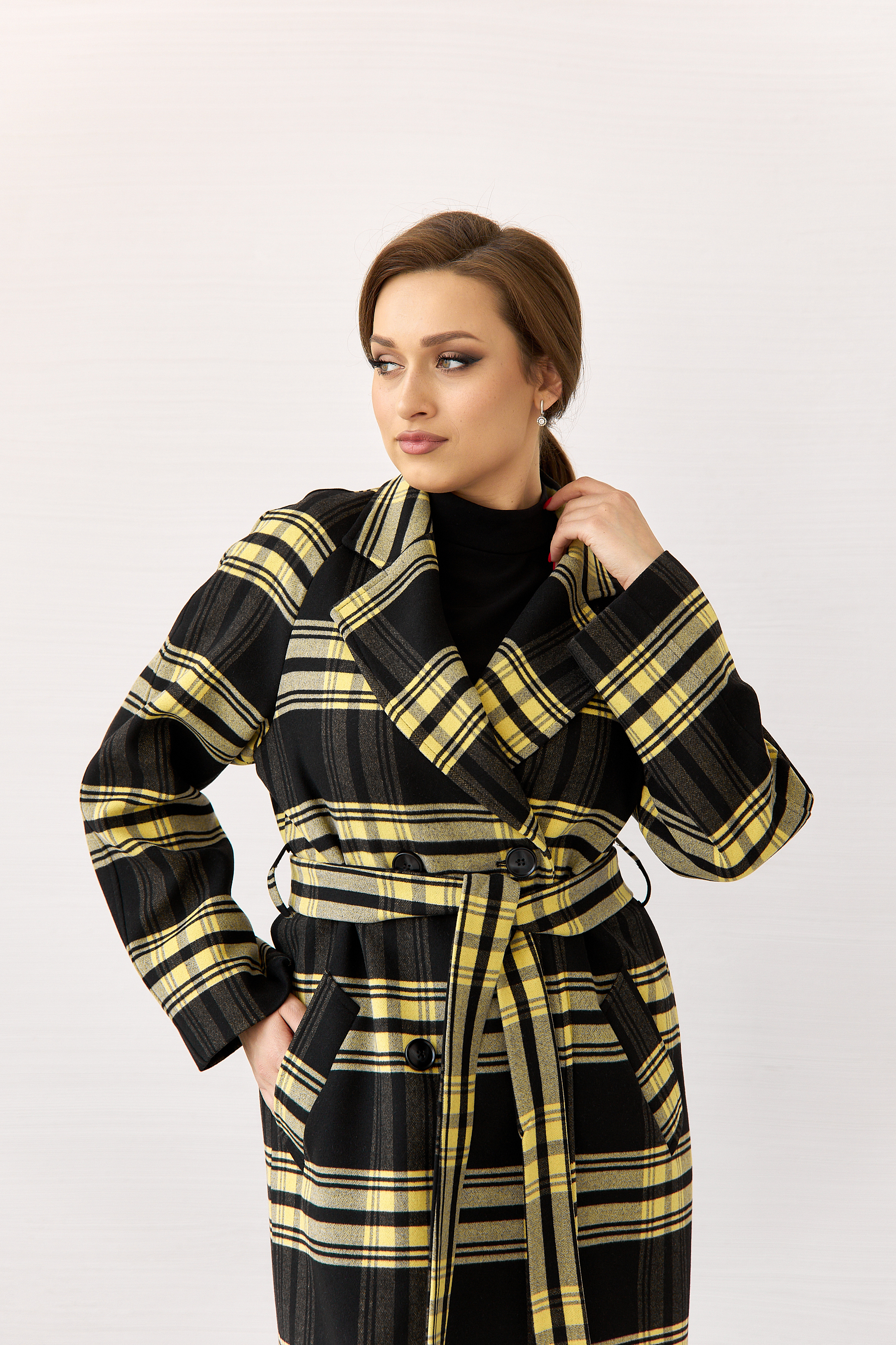 Пальто женское демисезонное 23220 (клетка черно-желтая)