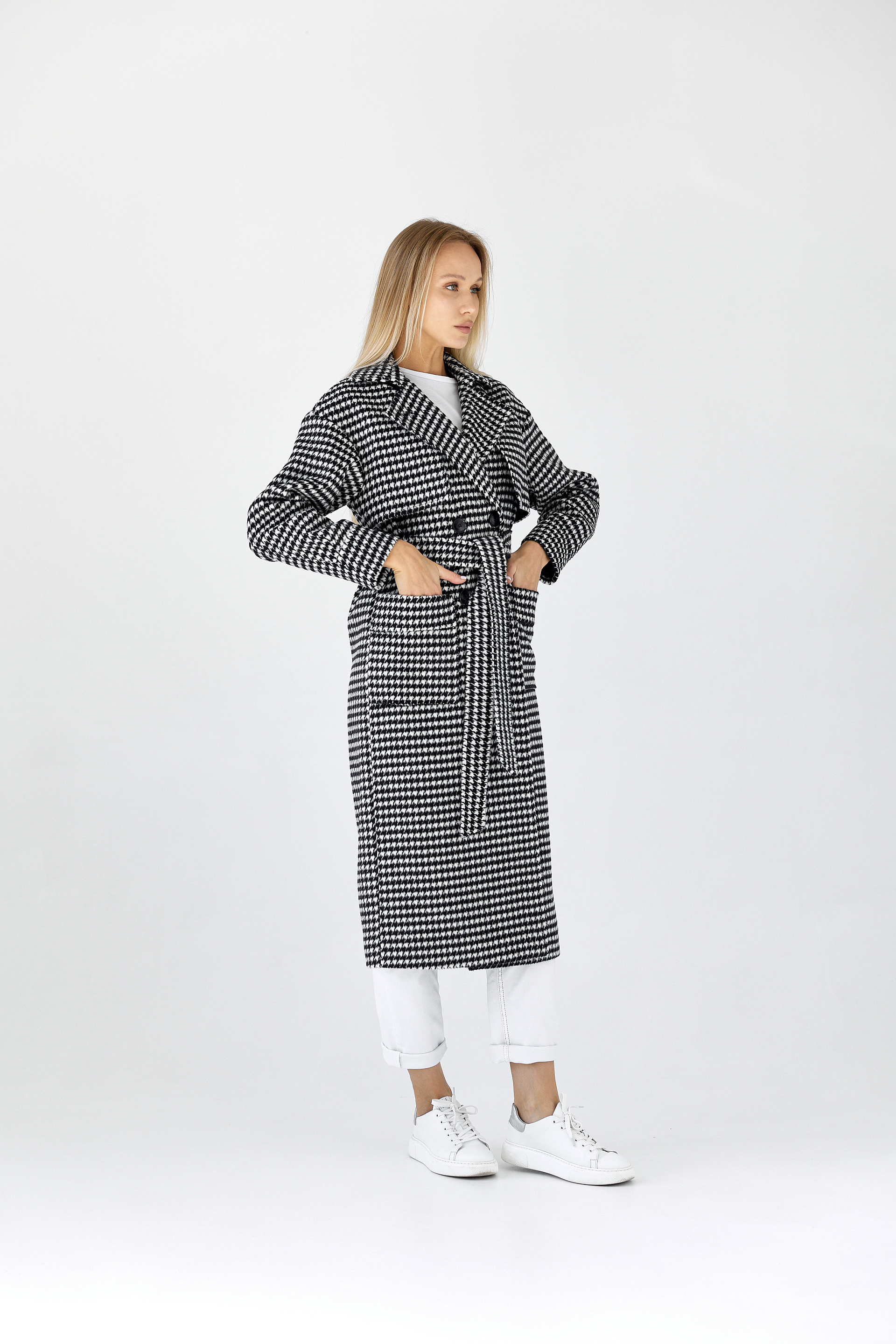 Пальто женское демисезонное 25417 (черно-белый)