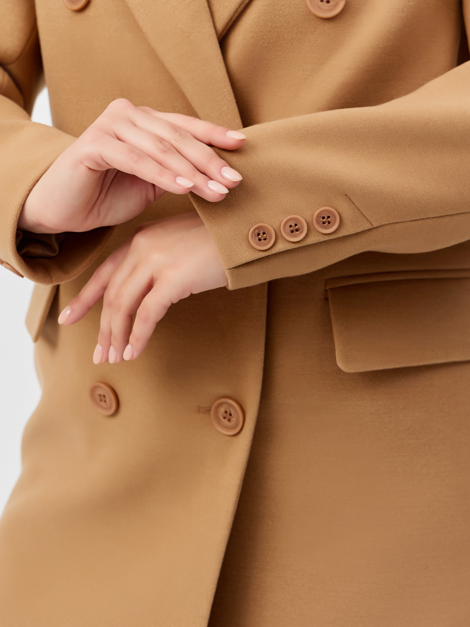 Рукав -втачной со шлицей(складкой) по локтевому шву. На шлице 3 пуговицы.