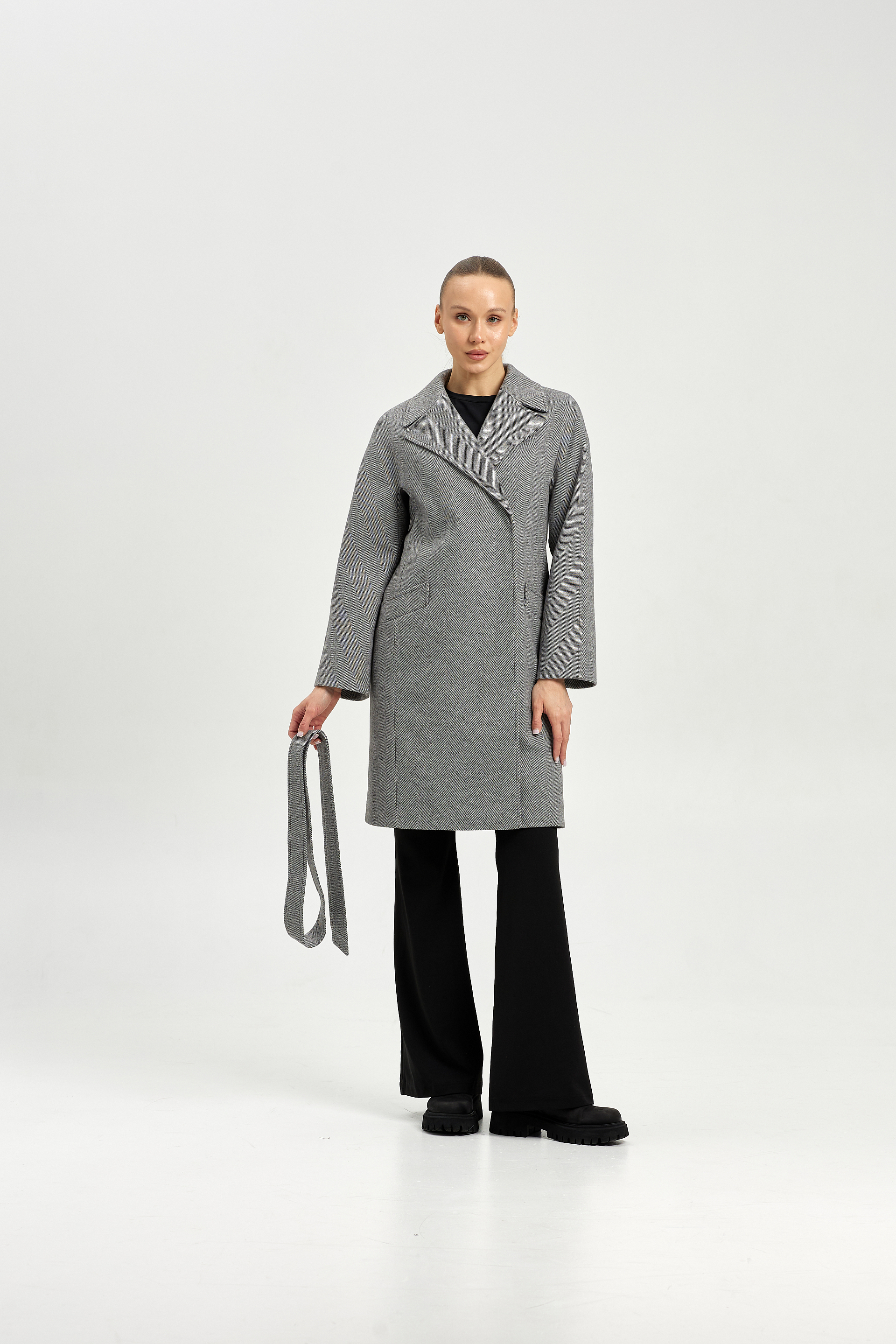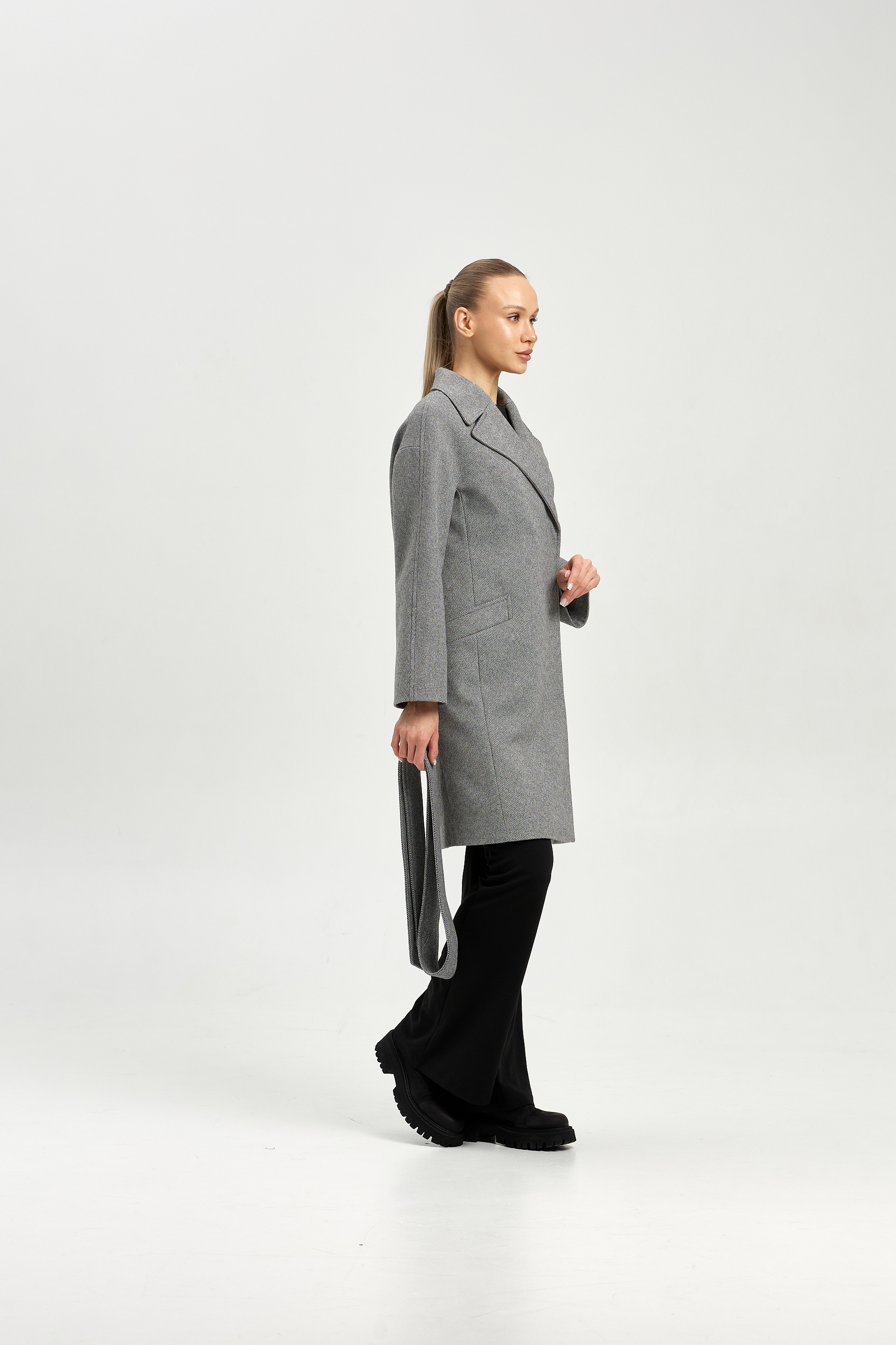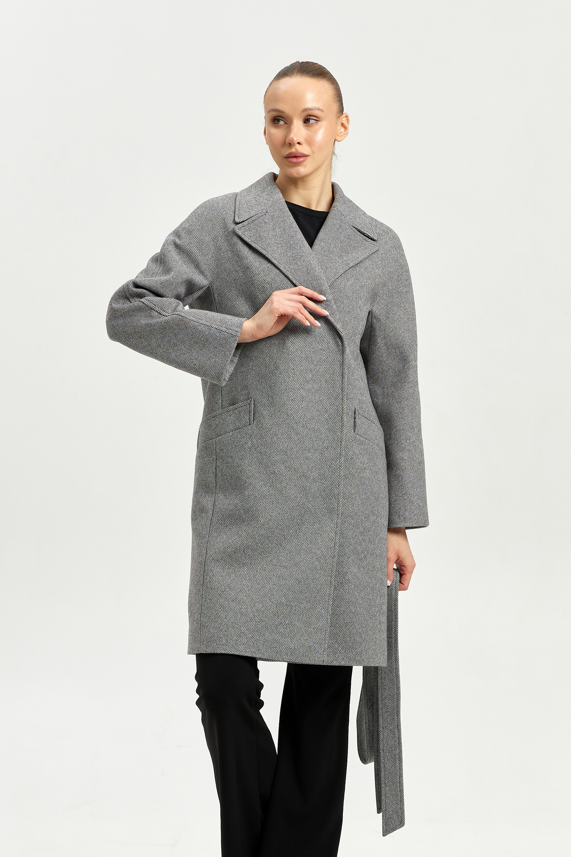 Пальто женское демисезонное 25885 (серый ёлочка)