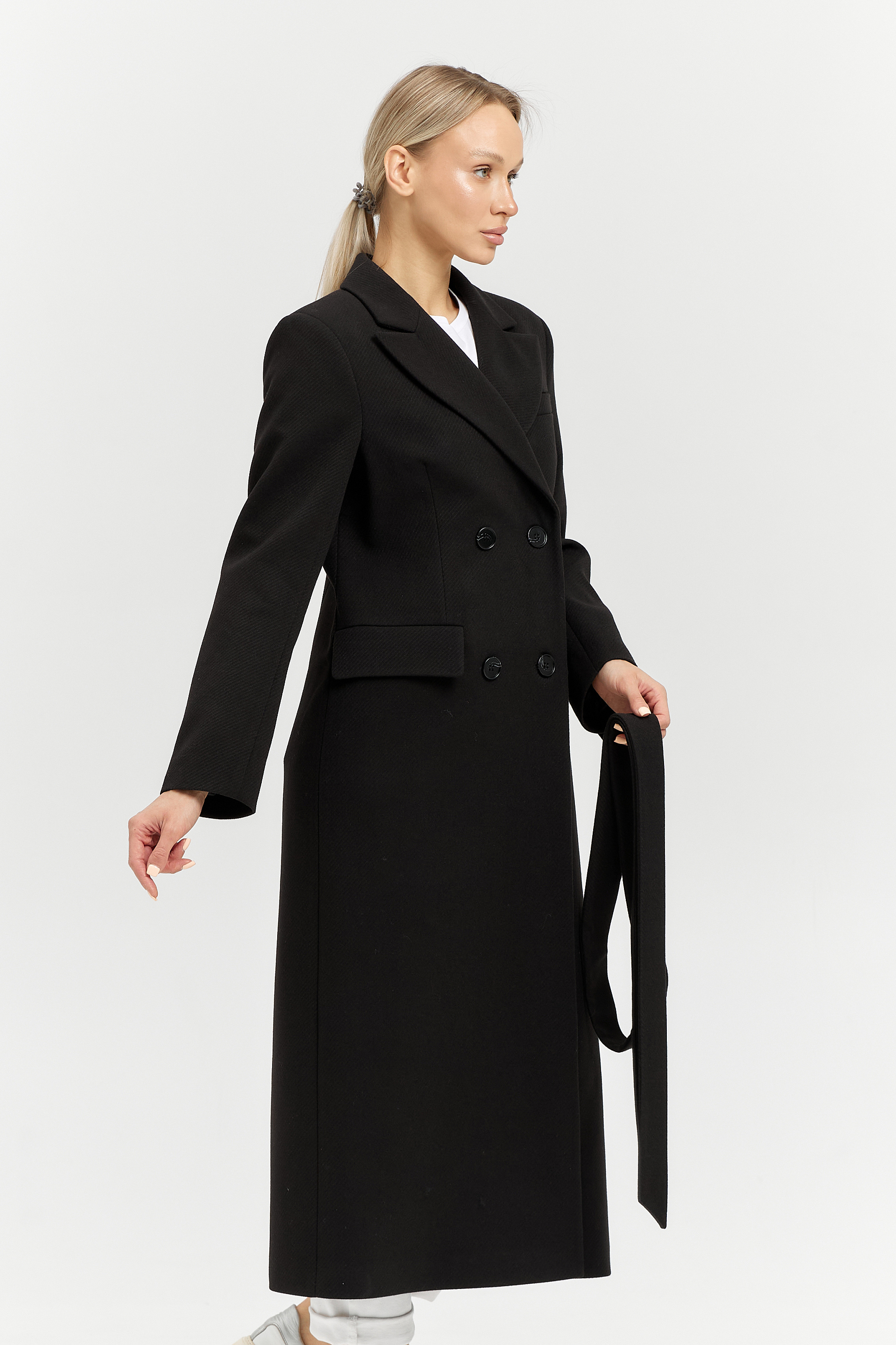 Пальто приталенного силуэта с втачным рукавом.