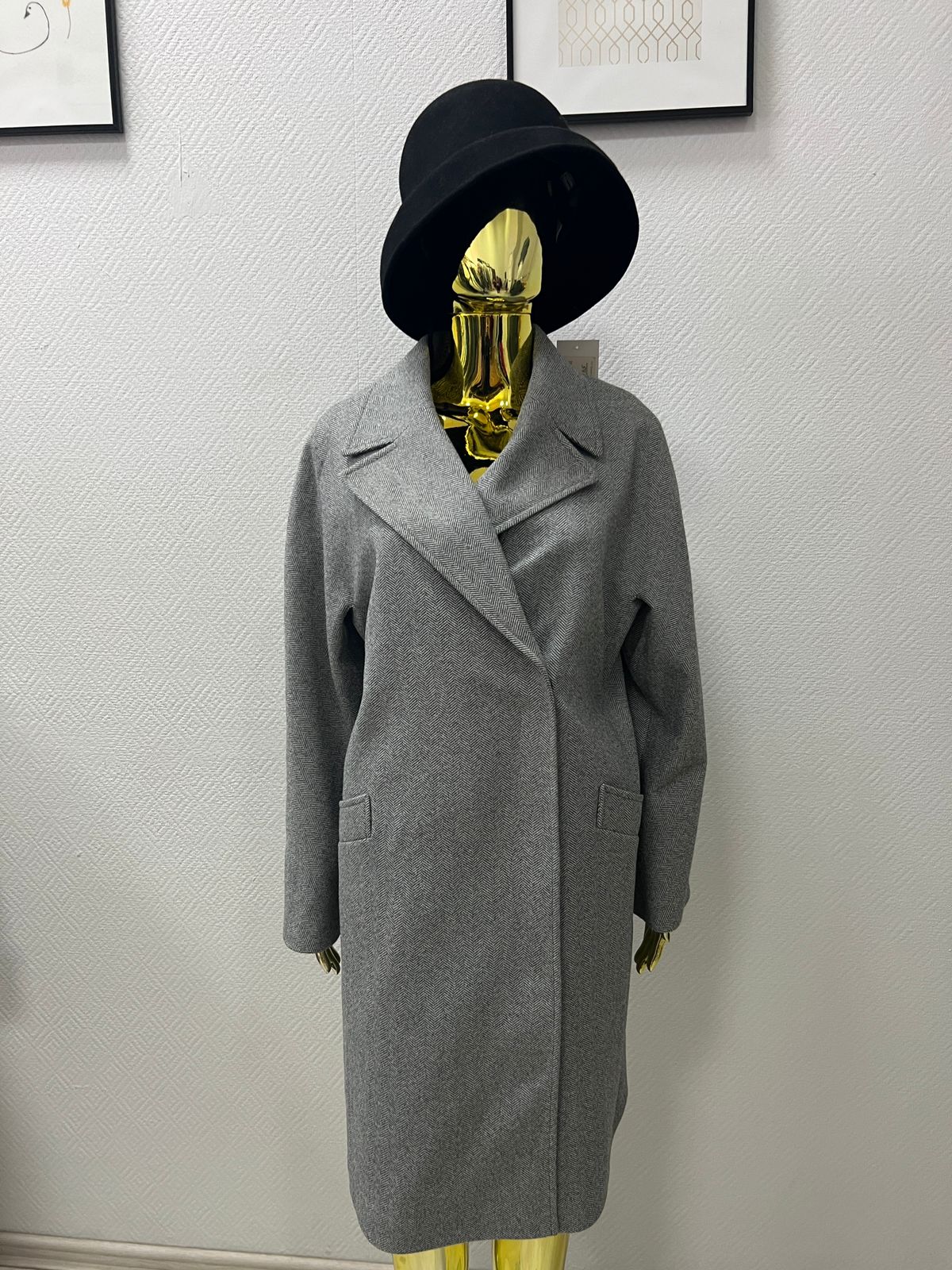 Пальто женское демисезонное 25885/о (серый ёлочка)
